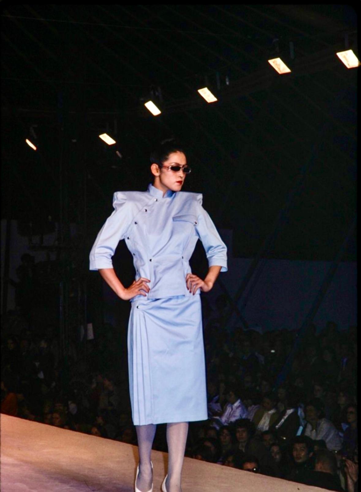 From the Spring/Summer 1979 collection, the clear version of these Thierry Mugler sunglasses debuted on the season's runway. These faux tortioise shell sunglasses feature a rectangular lens with a wide arched frame shape. Versions of these well documented sunglasses were also highlighed on Yvonne Sporre in a 1979 editorial in Dépêche Mode, captured by Yvonne Sporre. This style of sunglasses was highlighted in another Dépêche Mode editorical that same year. An identical clear version were also included in an image for the May 1979 Issue of Vogue Paris, modeled by Linda Hutton and captured by Albert Watson. An iconic Mugler sunglass style, these sunnies are the perfect was to amp up any ensemble.