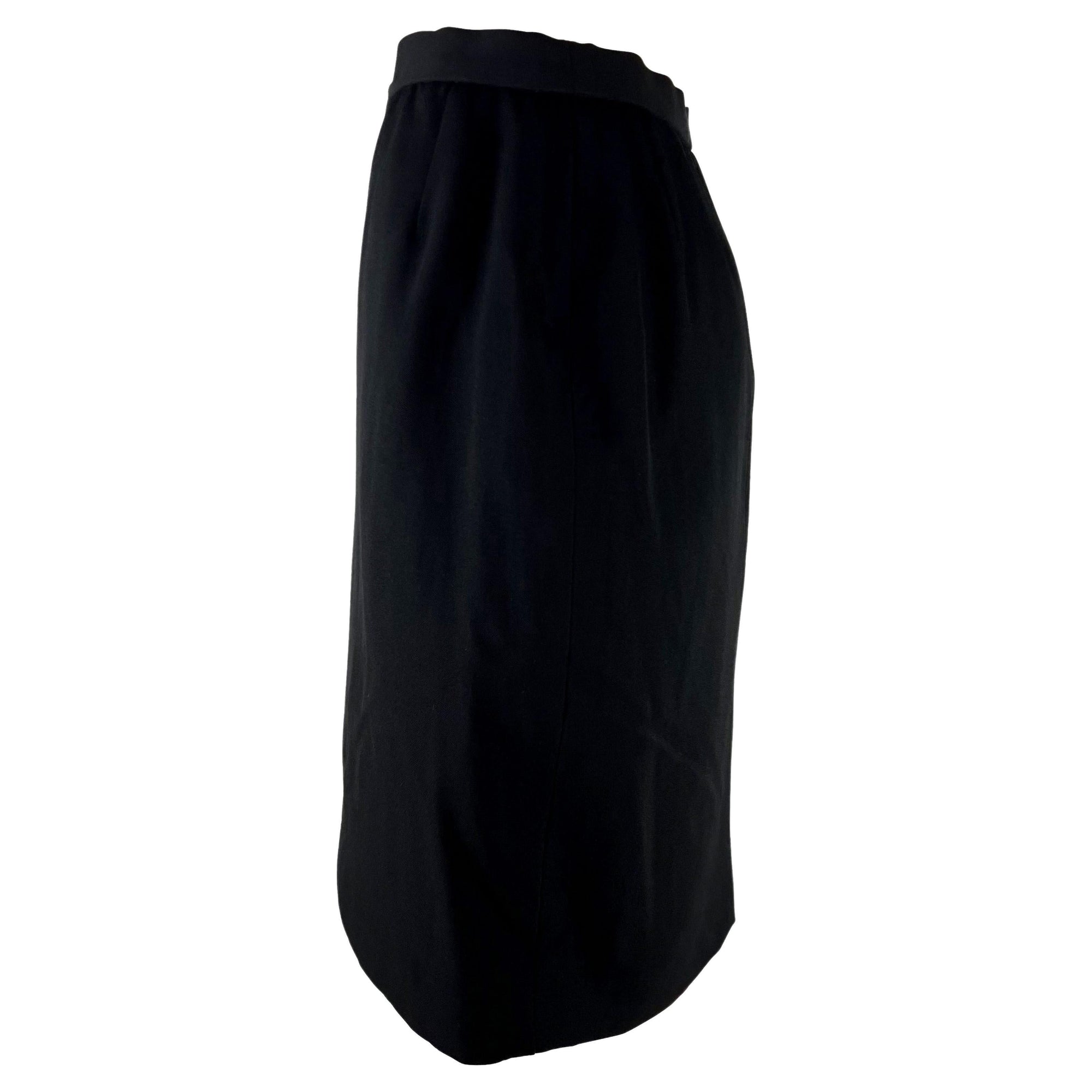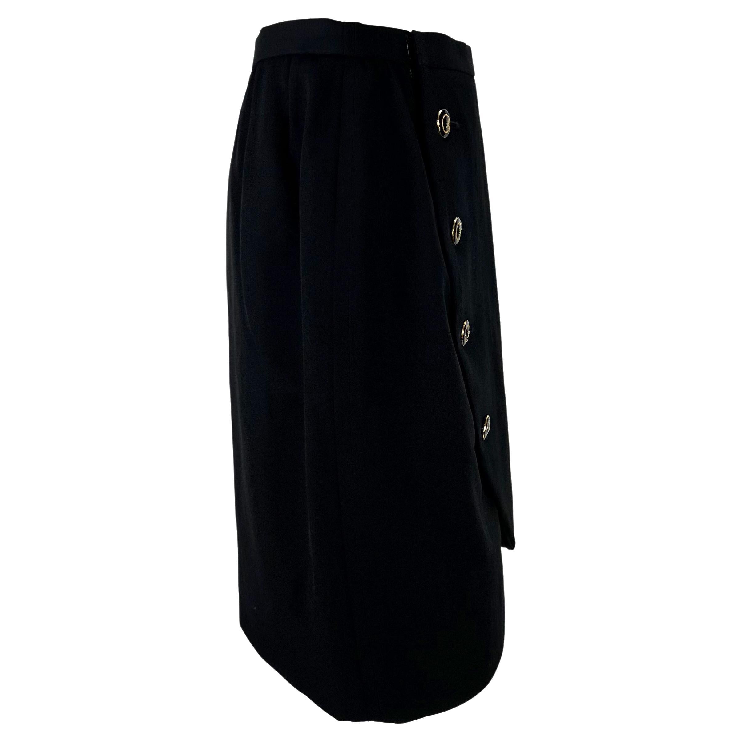 S/S 1989 Yves Saint Laurent Rive Gauche Black Wool Wrap Button Skirt