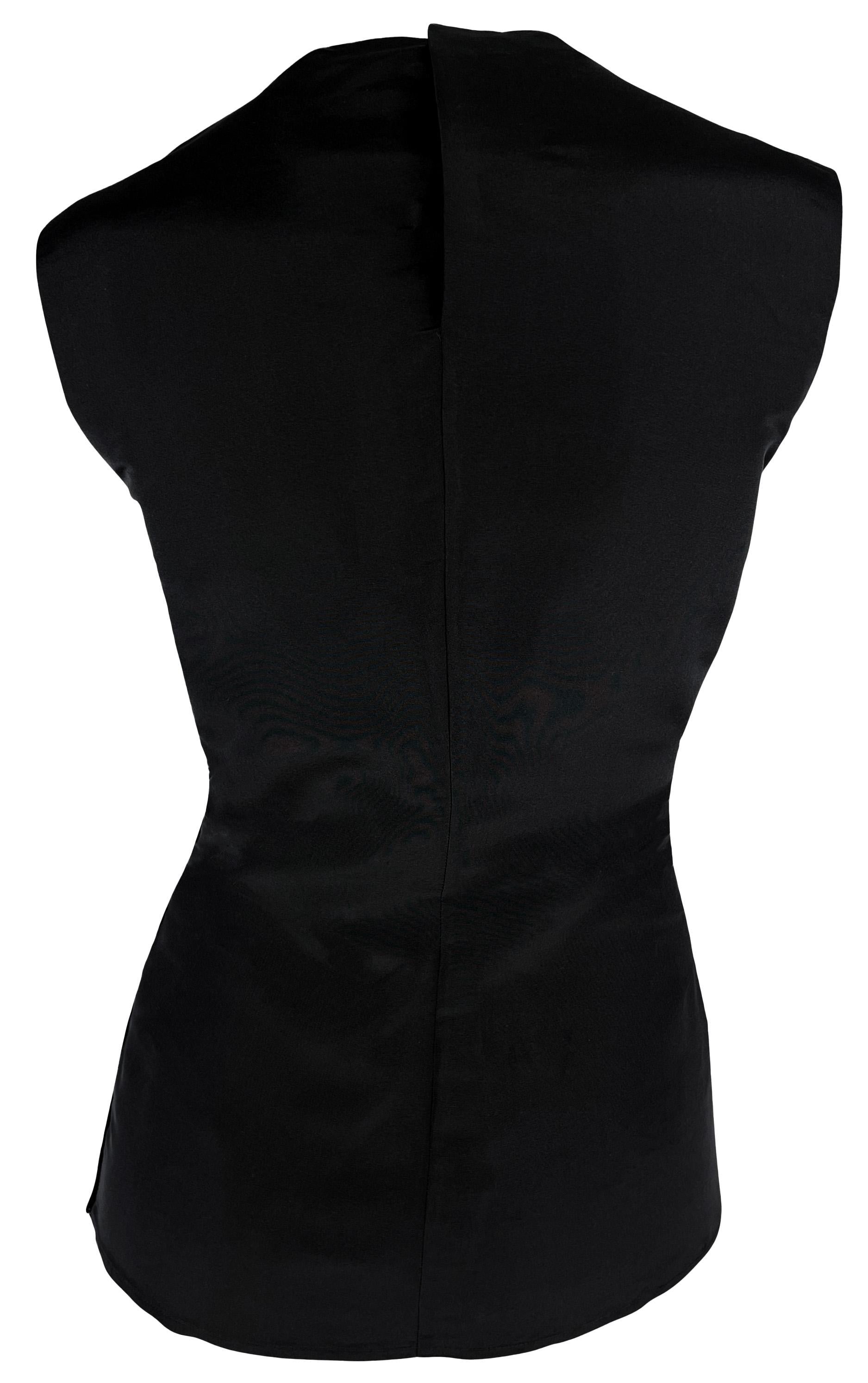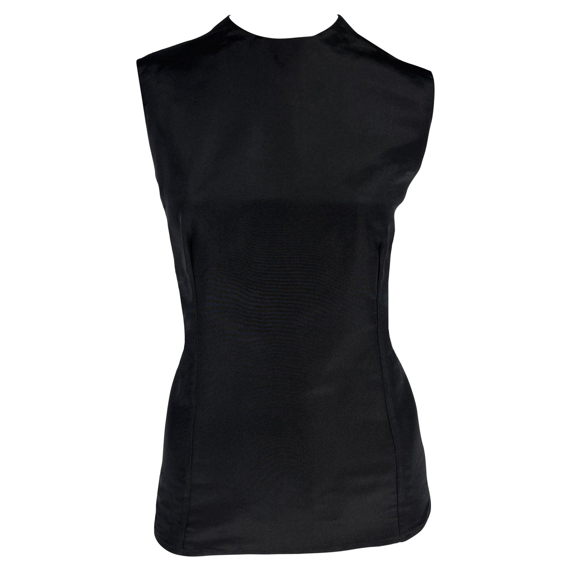 S/S 1990 Gianni Versace Black Silk Taffeta Tailored Fit Sleeveless Top