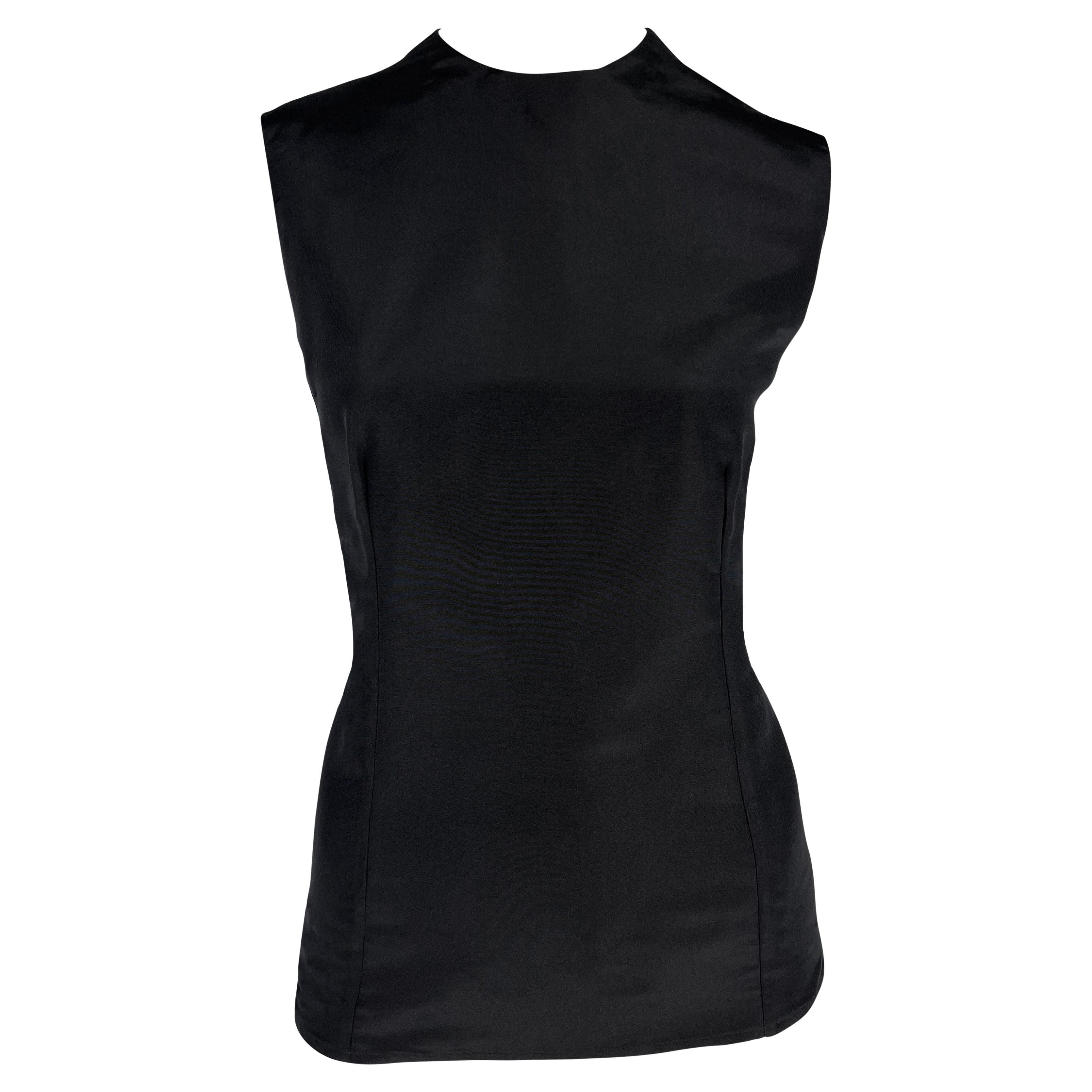 From the Spring/Summer 1990 collection, this Gianni Versace black silk sleeveless top is the perfect elevated essential.