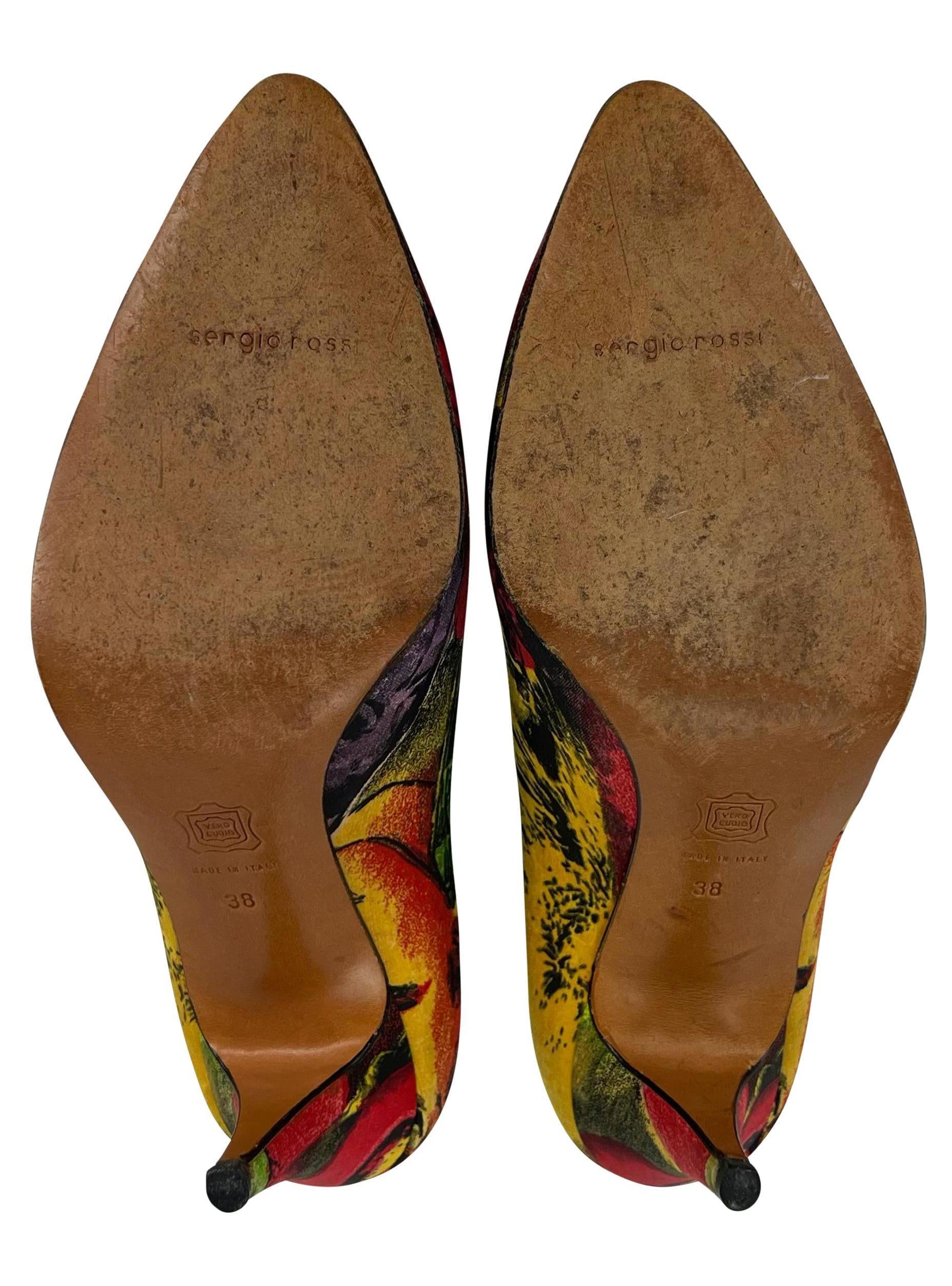 These multicolor heels, covered in one of Versace's most iconic prints, are a must-have for any Versace lover. From the Spring/Summer 1991 collection, the design draws heavy inspiration from Warhol's use of American pop culture iconography. Reportedly inspired by one of Gianni Versace's trips to New York City, these fabulous pumps prominently feature a pop art image of Marilyn Monroe on the toe box.