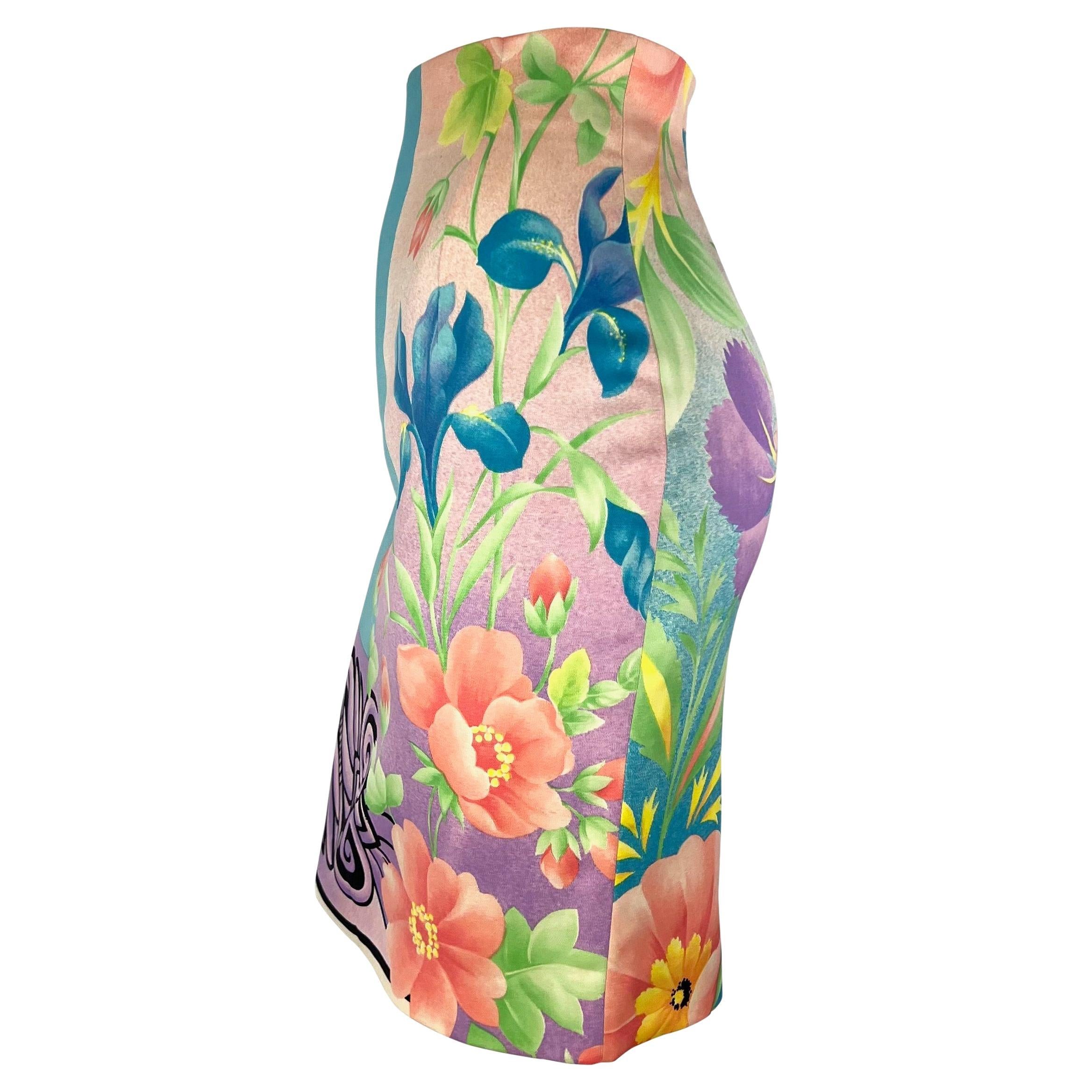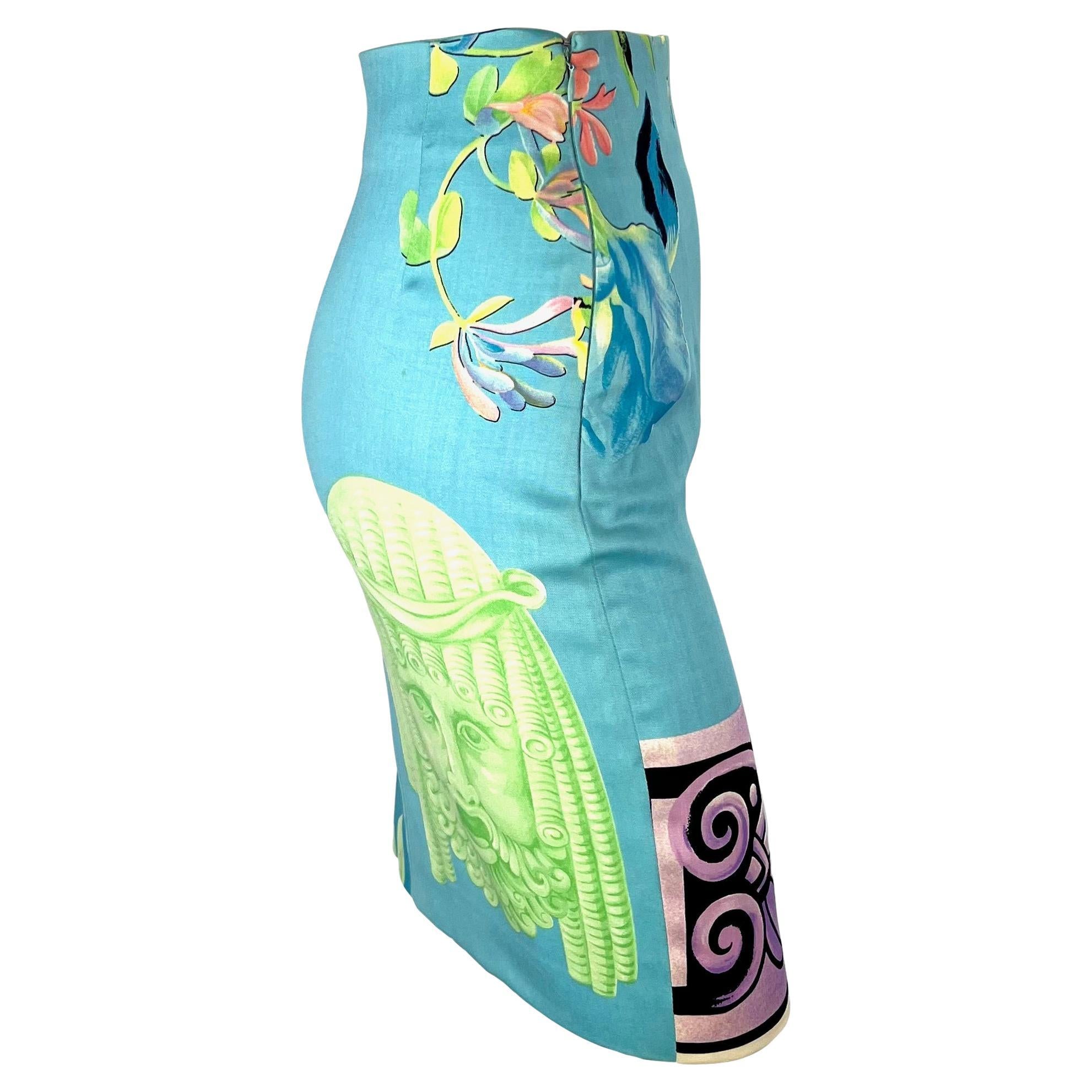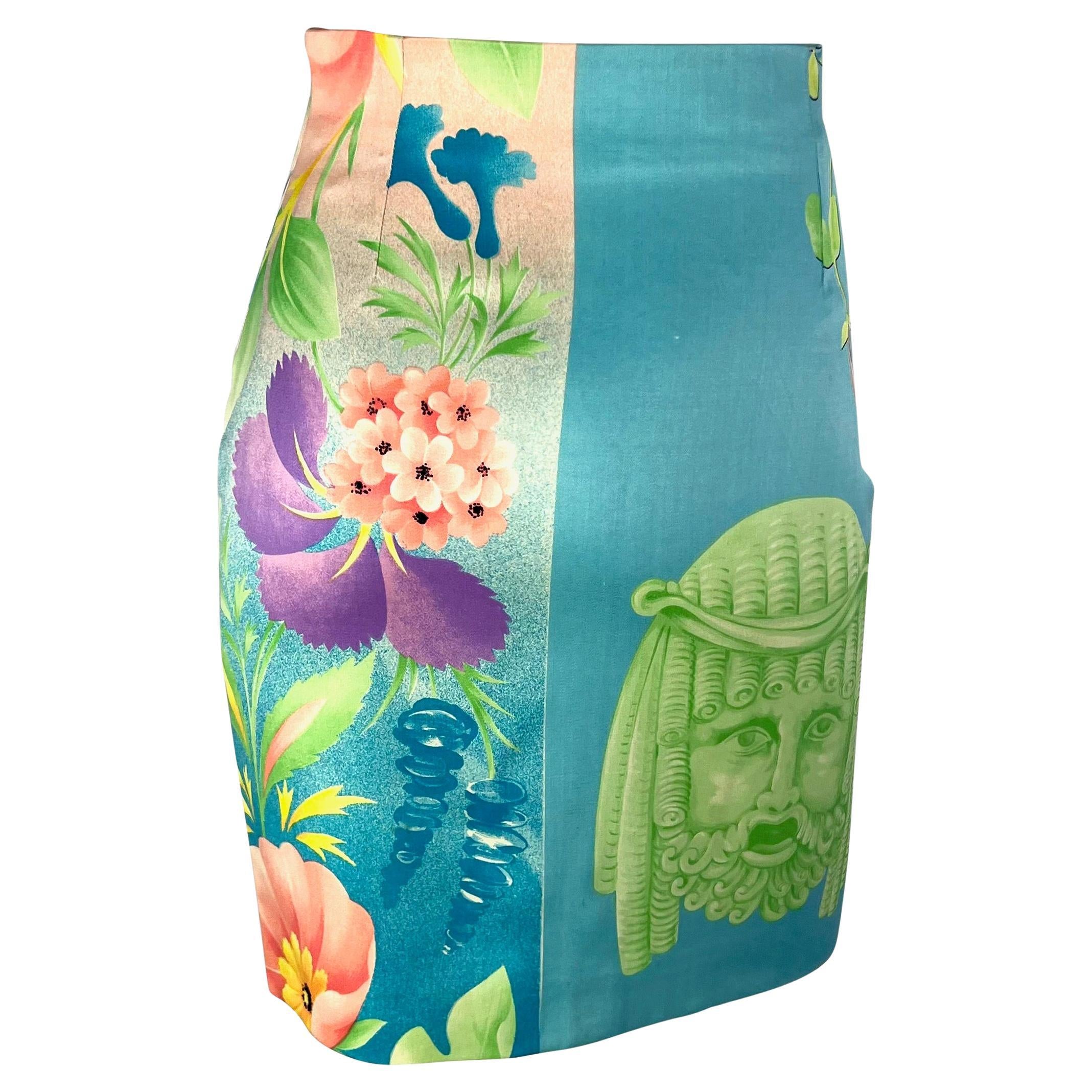 Presenting a fabulous pastel Gianni Versace pencil skirt, designed by Gianni Versace. From the Spring/Summer 1992 collection, this skirt features an enchanting combination of floral and Roman motifs, a testament to the brand's unique vision. The pastel hues and bold patterns make it the perfect statement piece to infuse your wardrobe with a pop of color. With its quintessential Versace charm, this skirt captures the essence of the brand's legendary design aesthetic and is a must-have for fashion enthusiasts seeking to embrace the spirit of the iconic Italian fashion house.