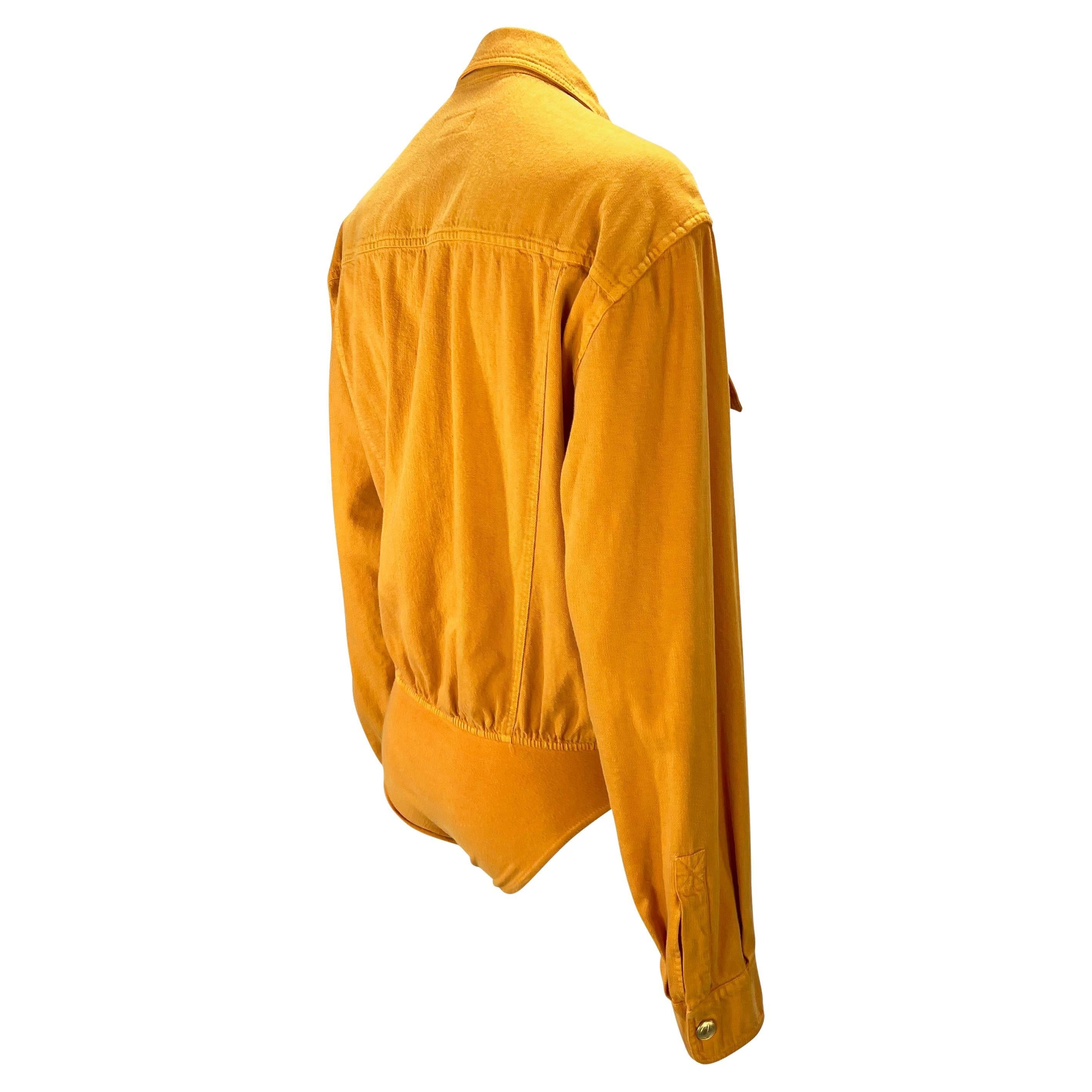 S/S 1993 Gucci Gold GG Snap Pocket Orange Cotton Twill Leotard Shirt