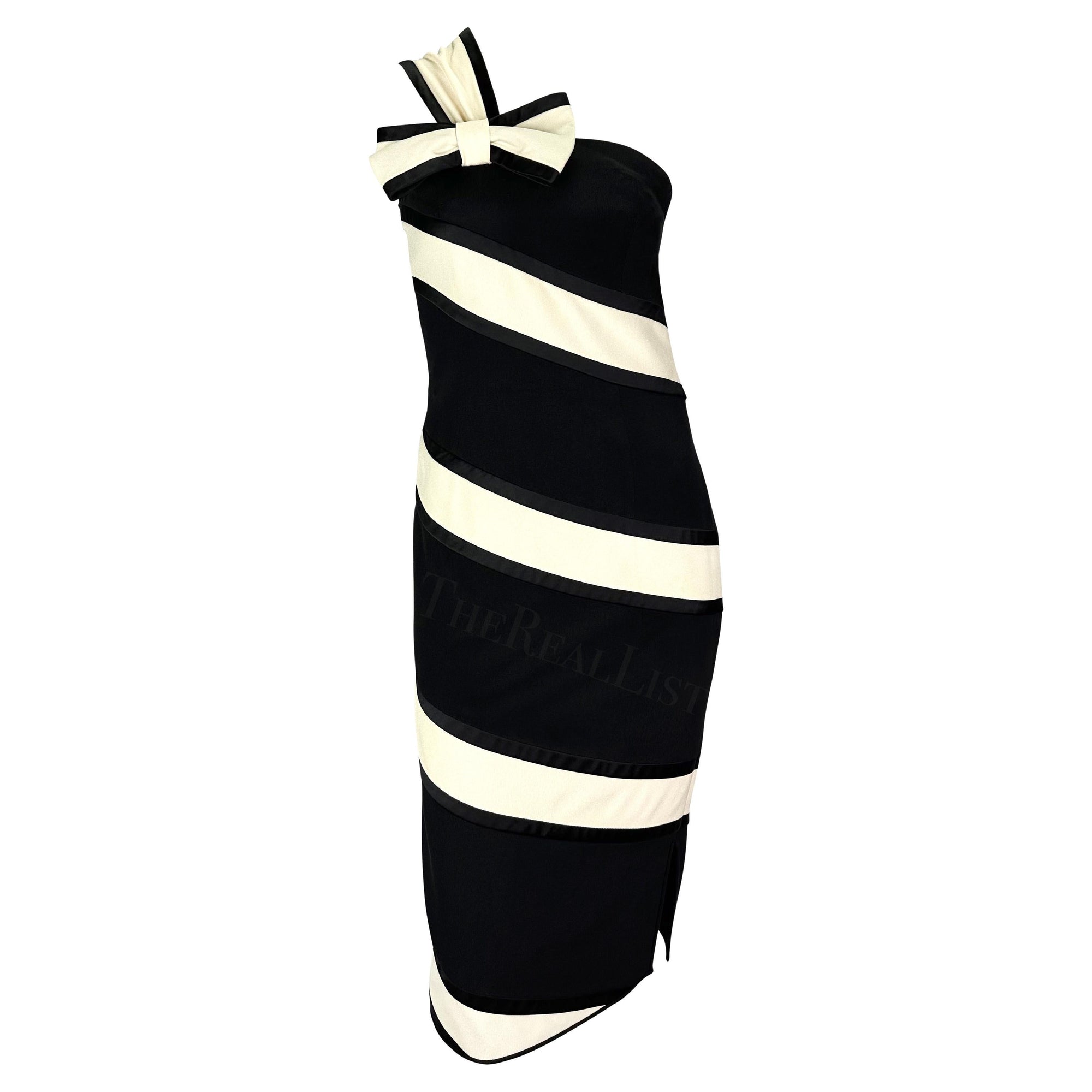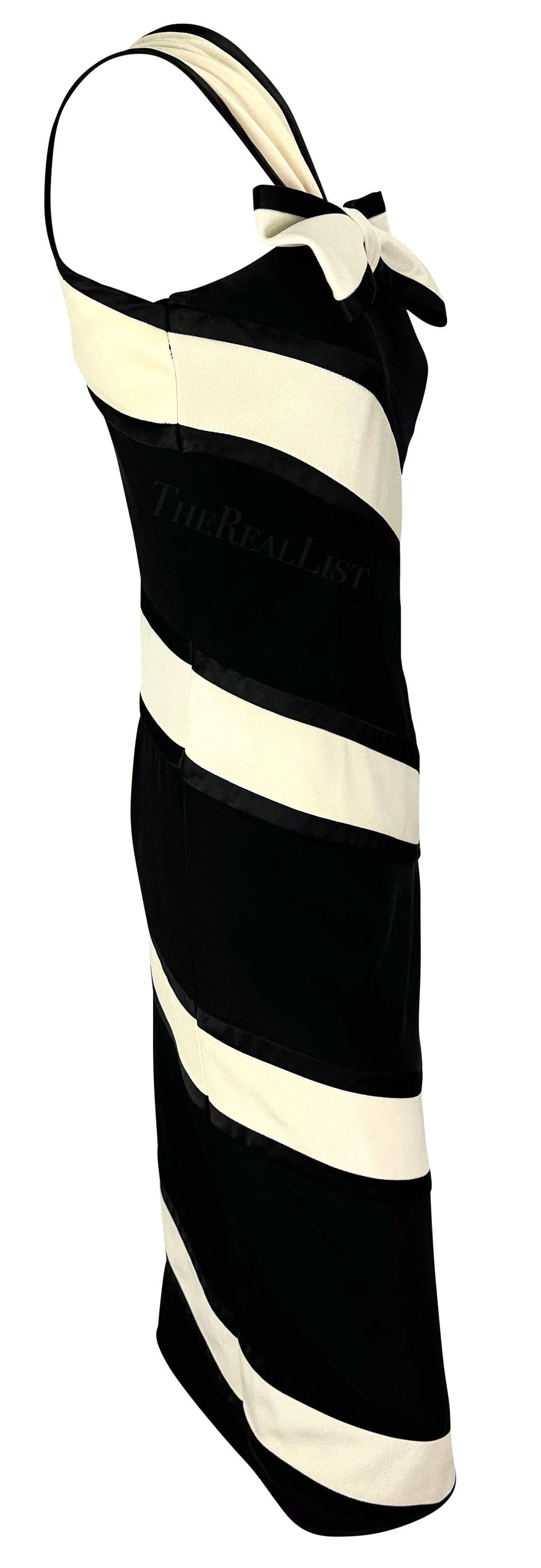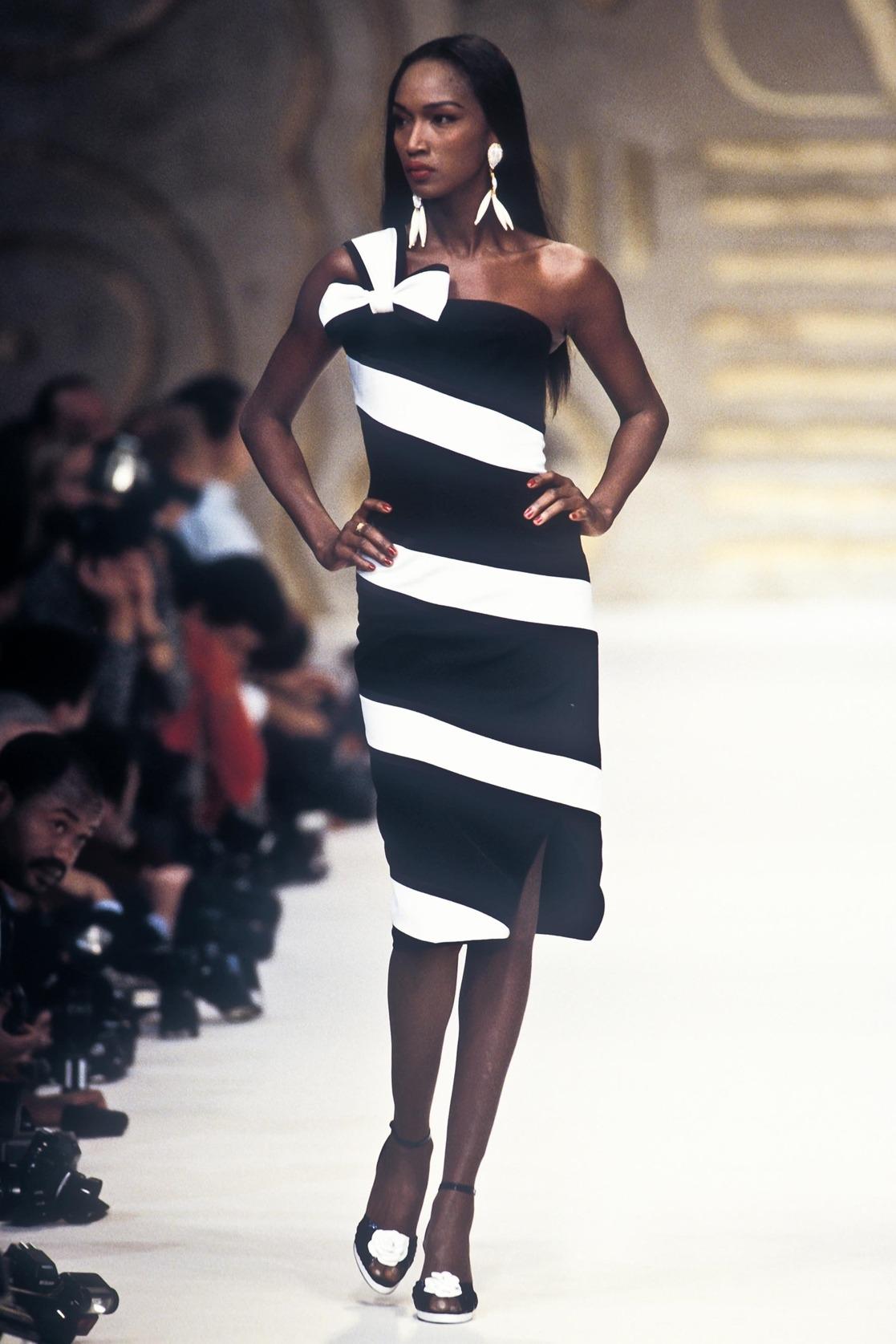 S/S 1993 Valentino Garavani Runway Black White Stripe Bow Dress
