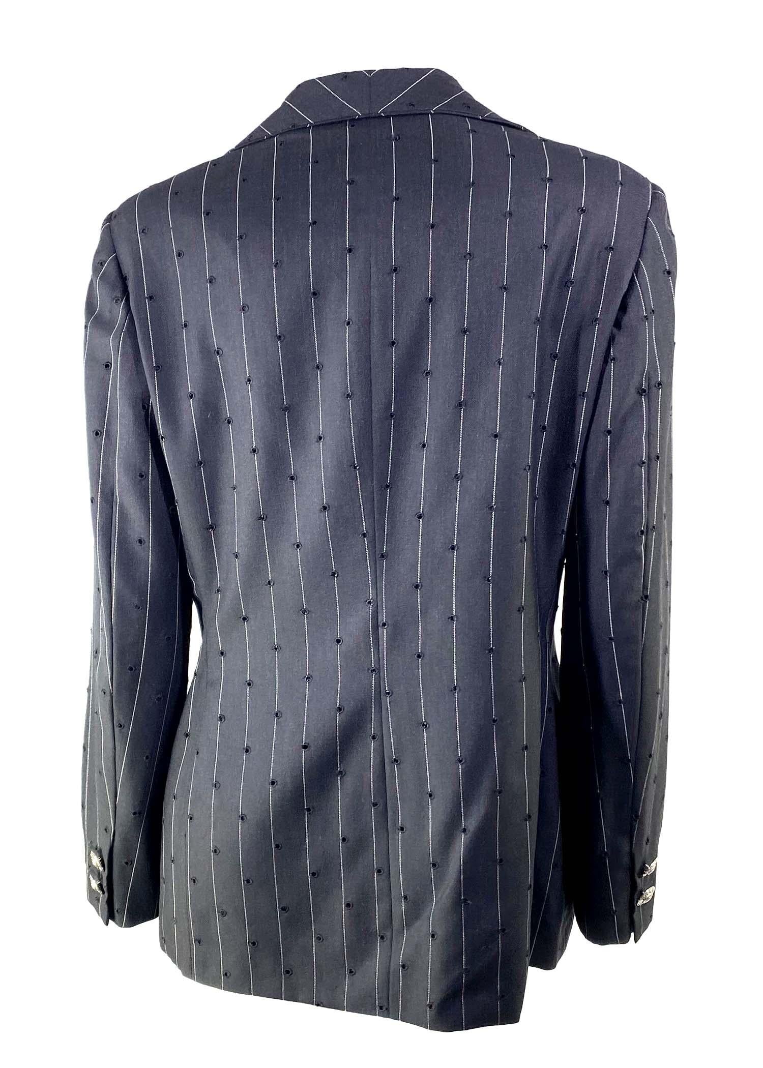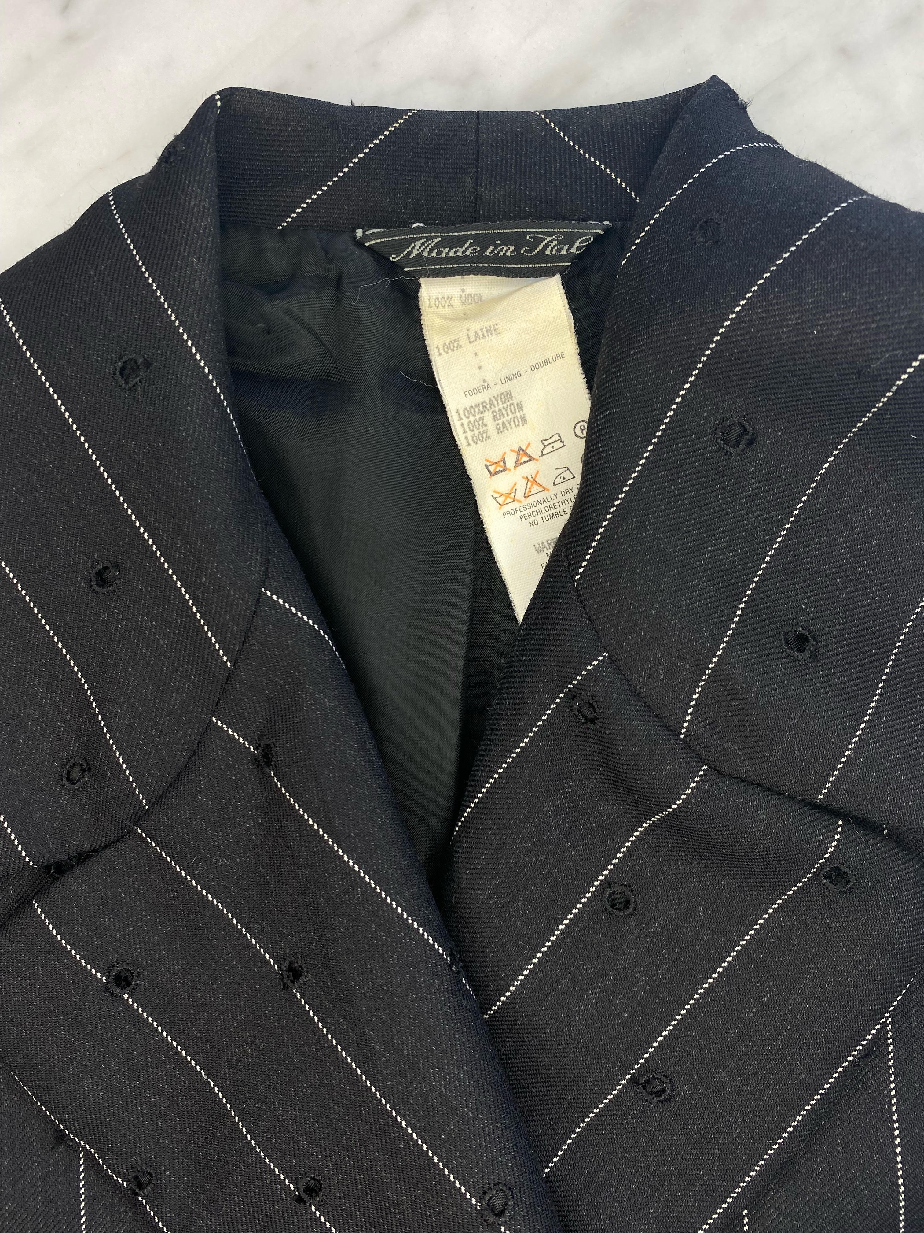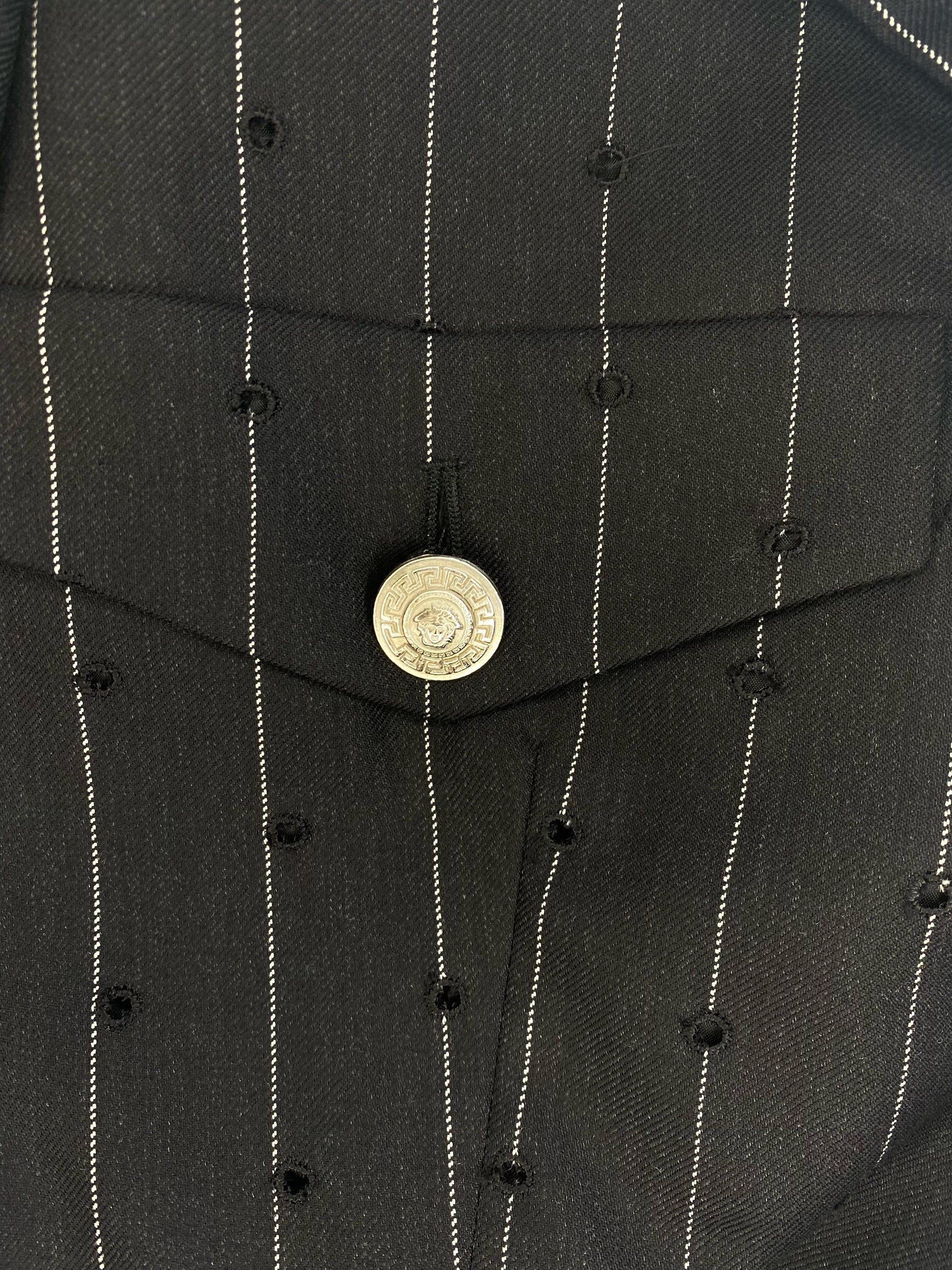S/S 1994 Gianni Versace Couture Perforated Punk Pinstripe Medusa Wool Blazer