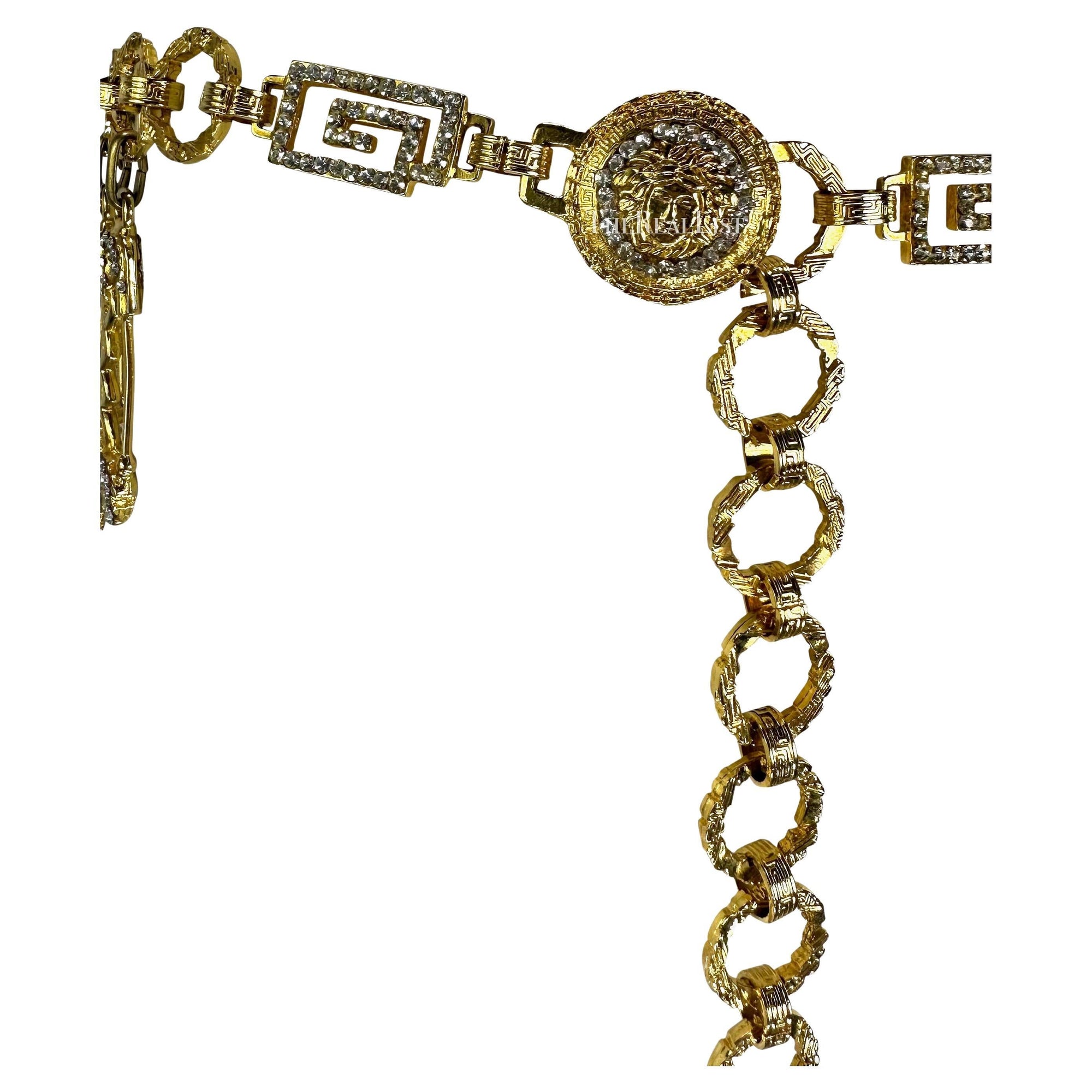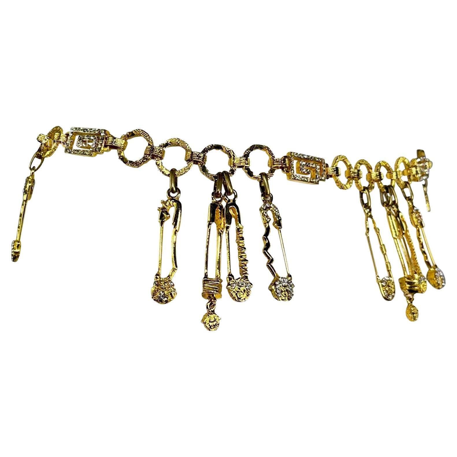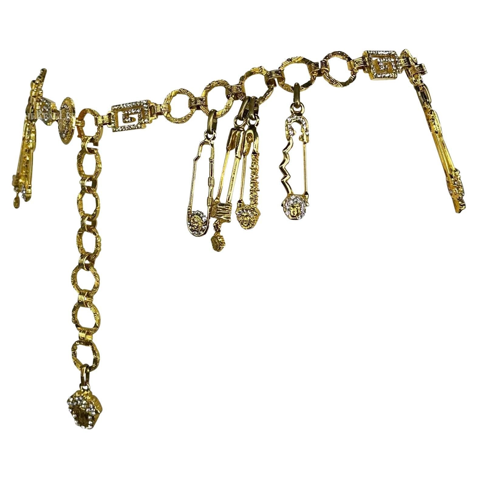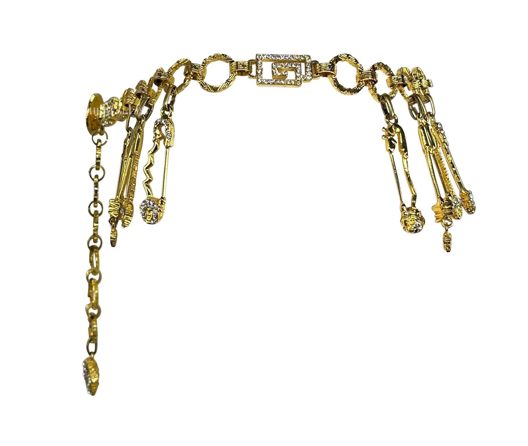 S/S 1994 Gianni Versace Gold Tone Rhinestone Safety Pin Medusa Chain Belt