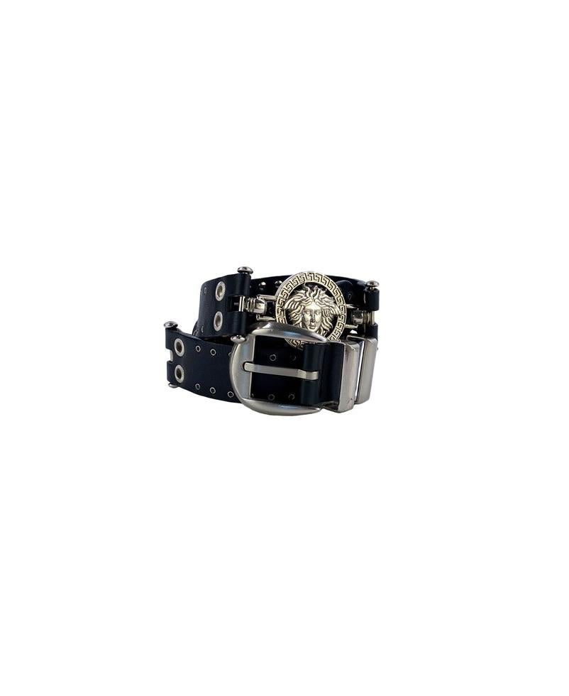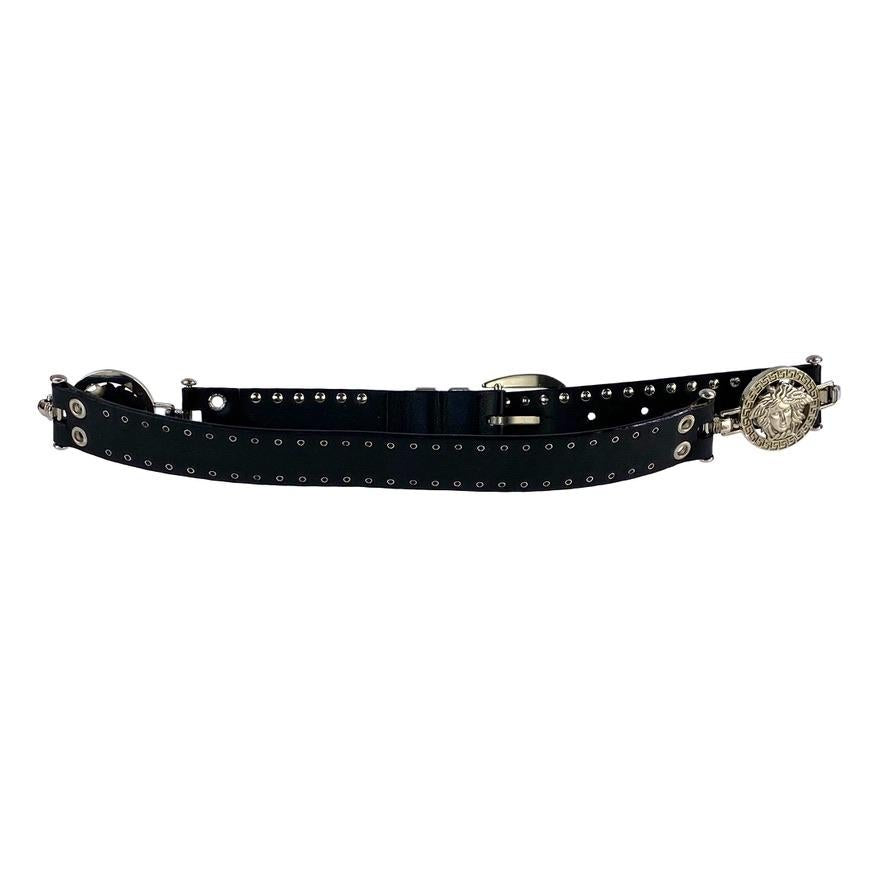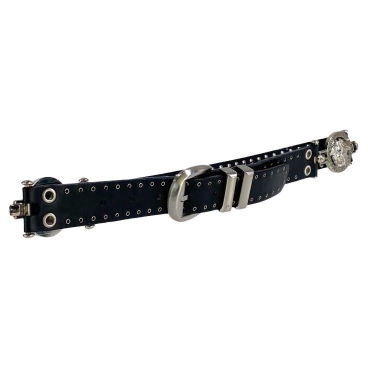 S/S 1994 Gianni Versace Medusa Medallion Black Leather Grommet Belt