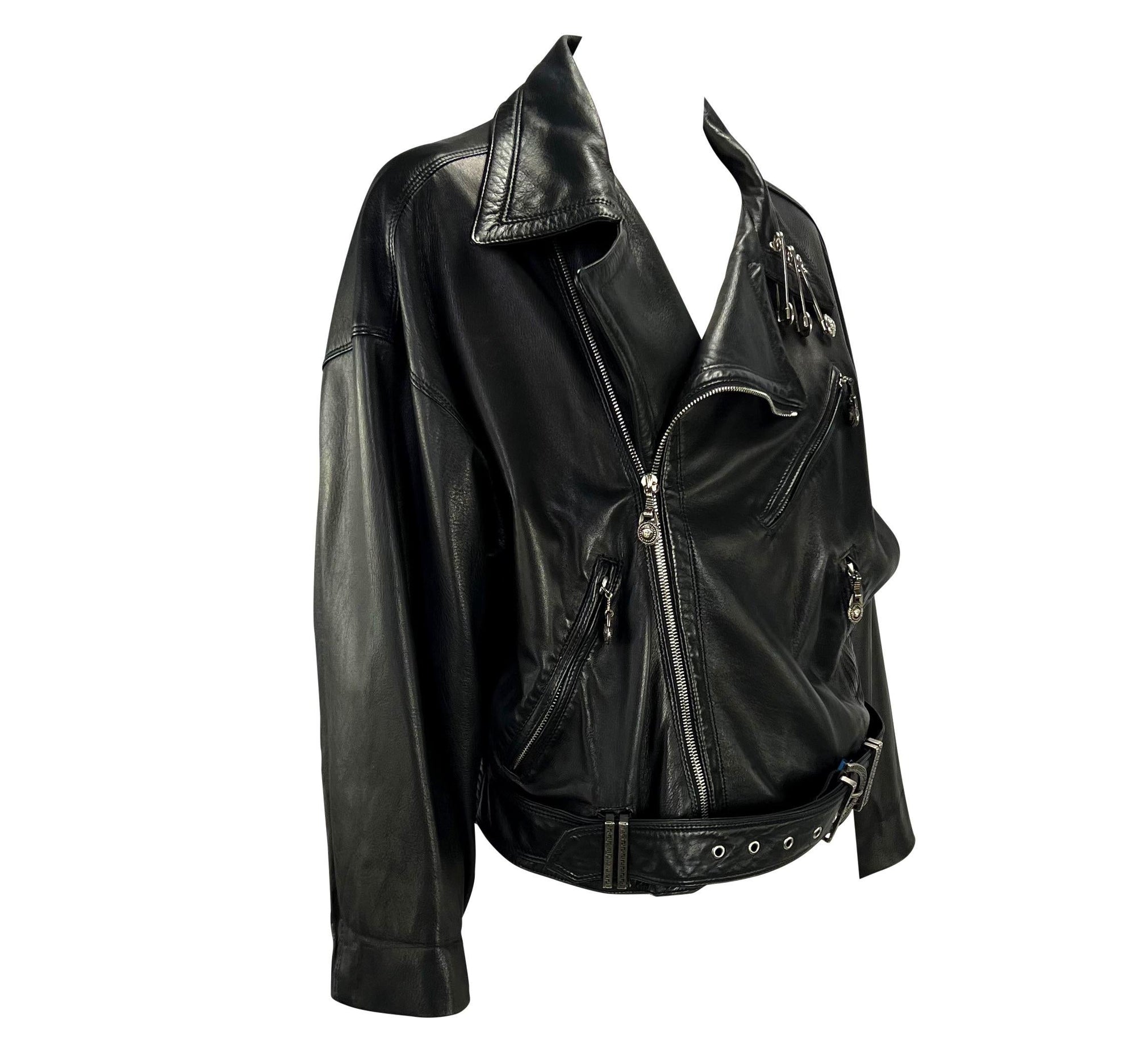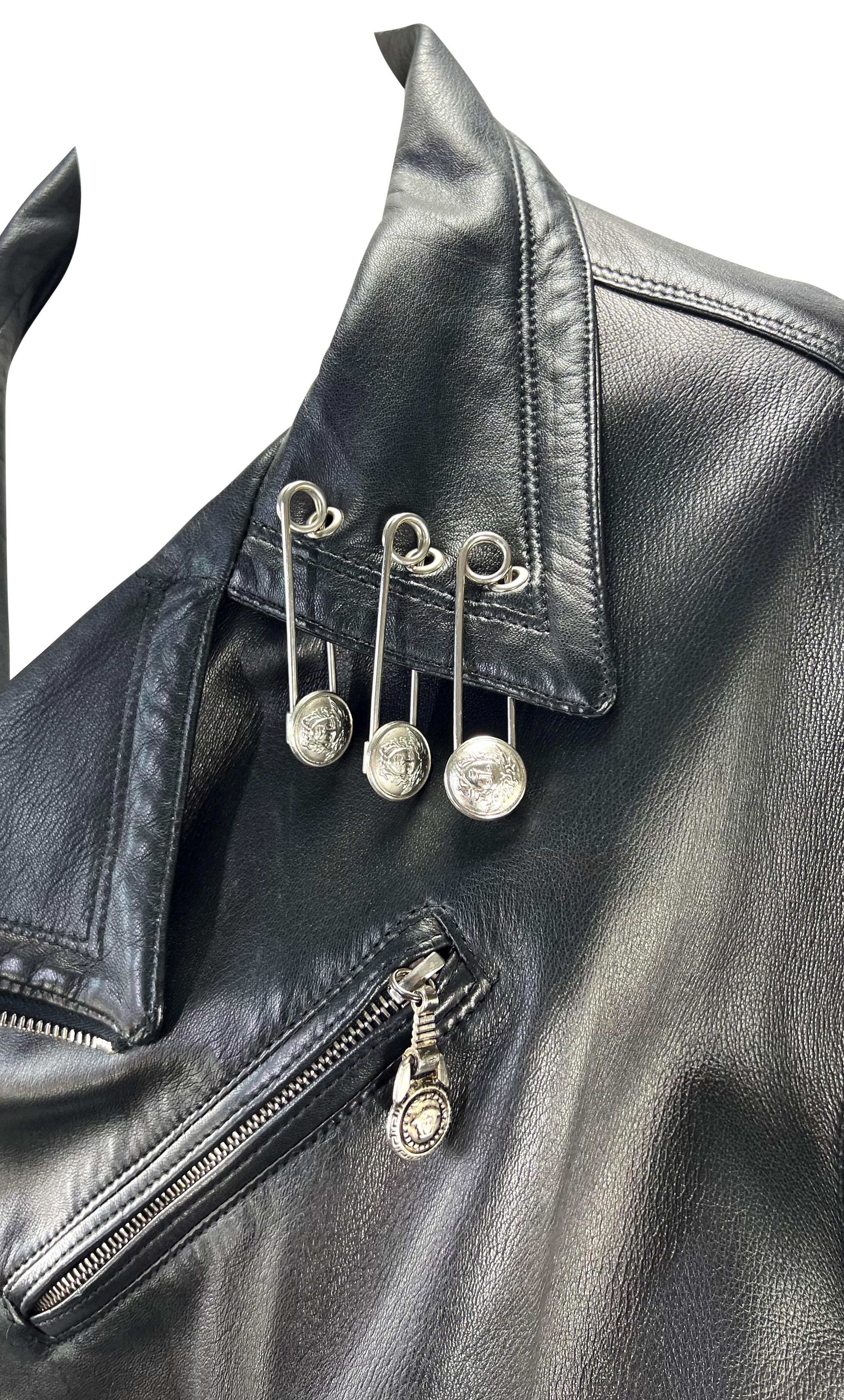 S/S 1994 Gianni Versace Medusa Safety Pin Leather Belted Moto Jacket