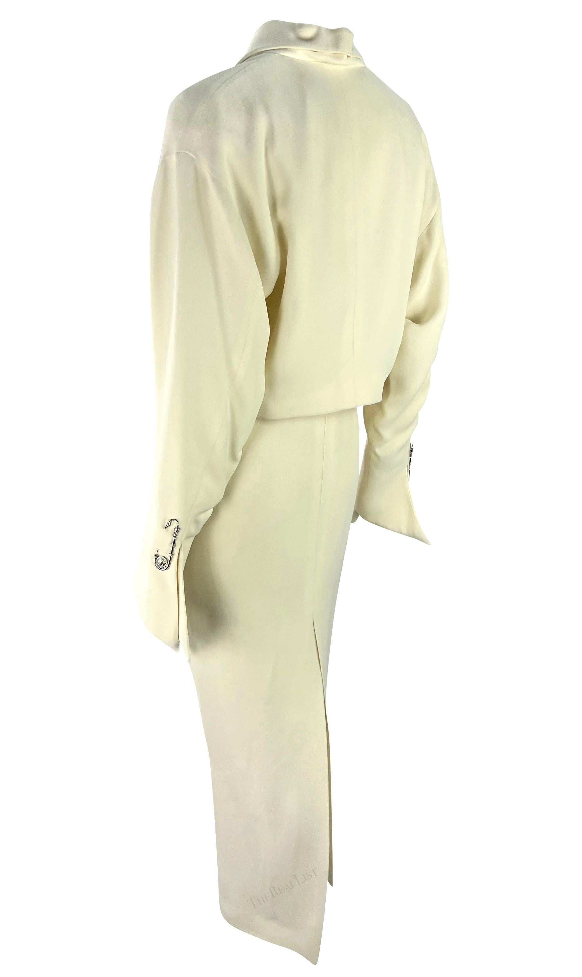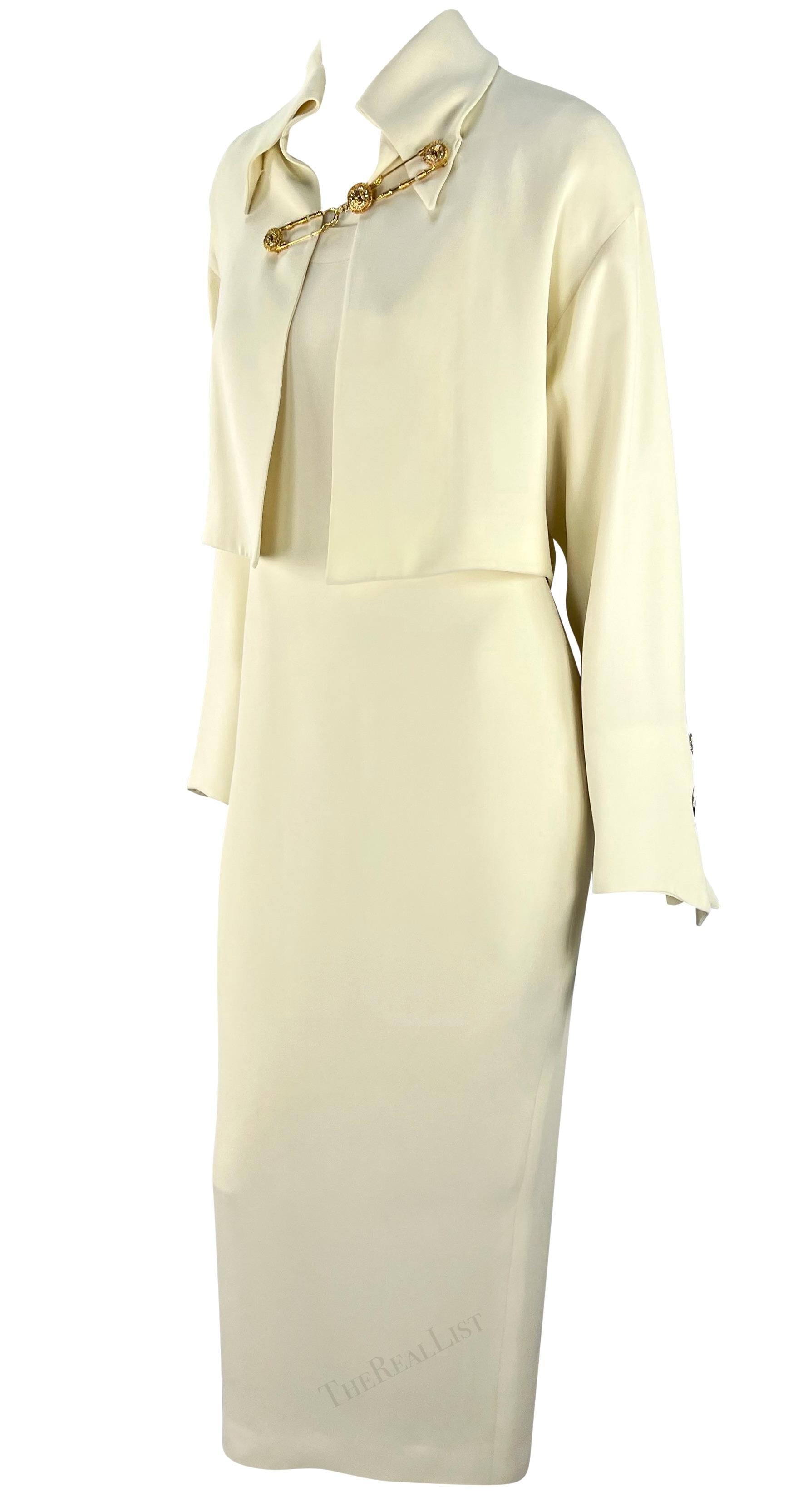 S/S 1994 Gianni Versace Off-White Medusa Safety Pin Cropped Jacket Dress Set