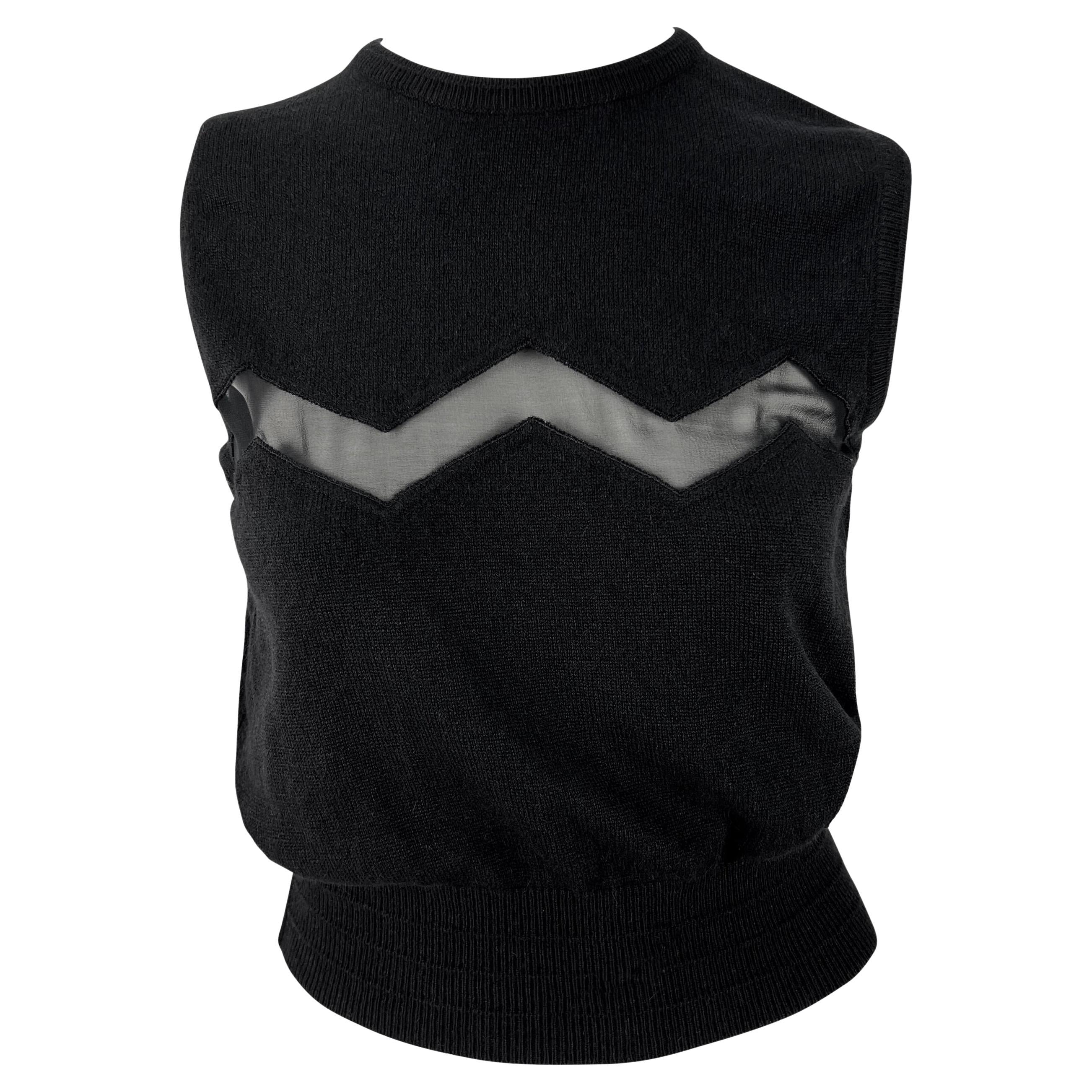 S/S 1994 Gianni Versace Sheer Zig-Zag Panel Black Knit Sweater Vest