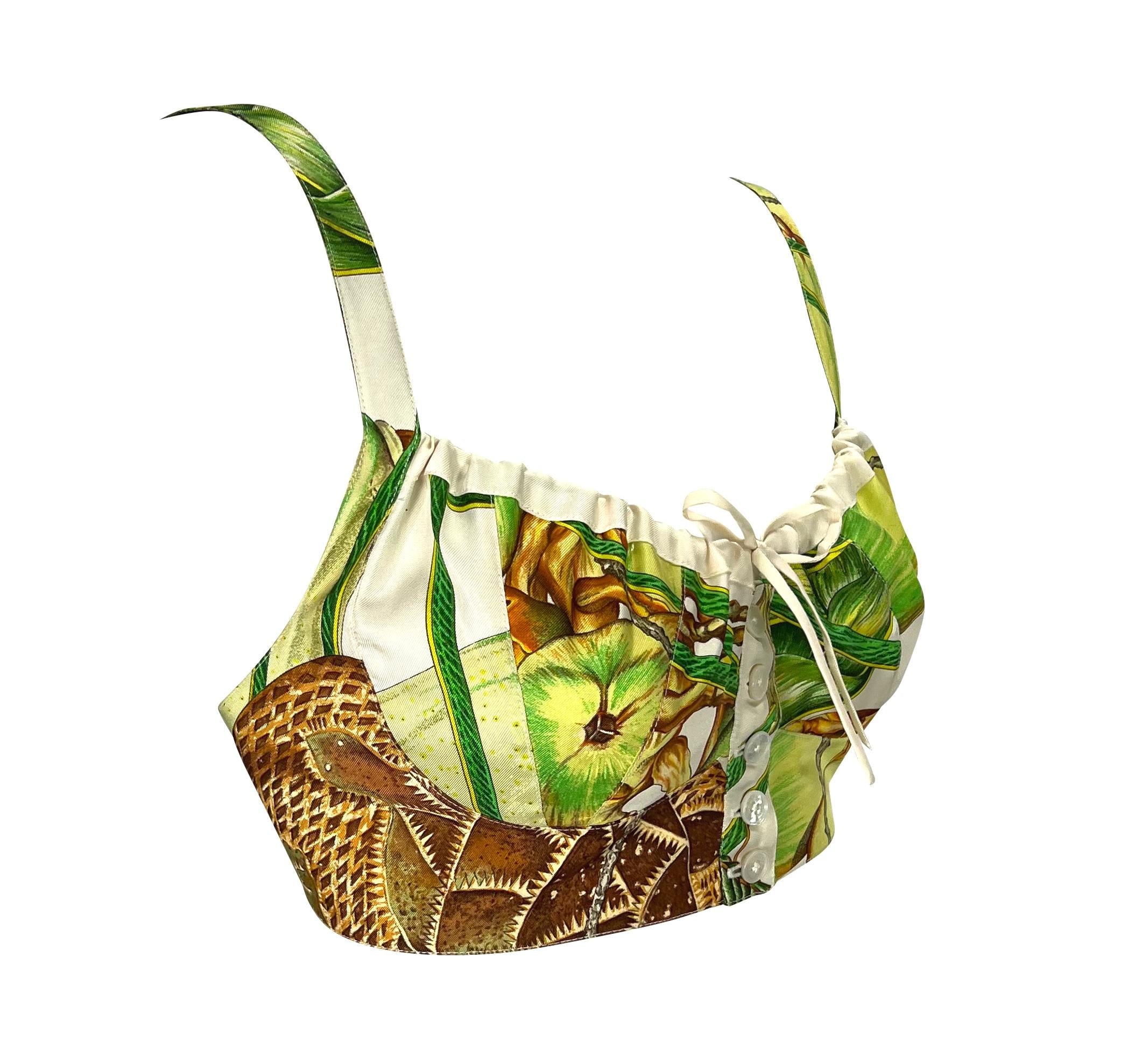 S/S 1994 Hermès Runway Jardin Créole Print White Green Silk Bralette Crop Top