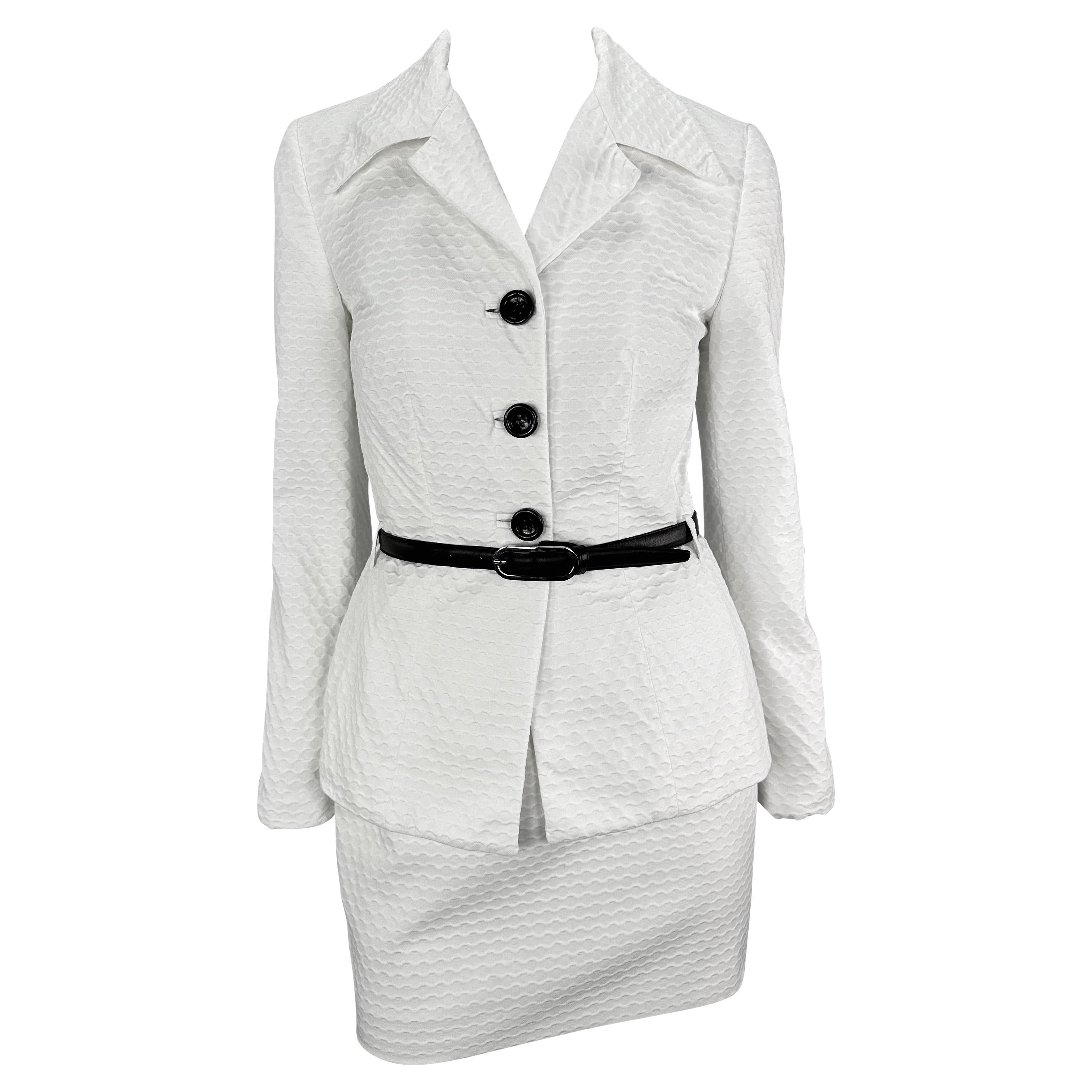 S/S 1995 Dolce & Gabbana Belted White Waffle Knit Mini Skirt Suit