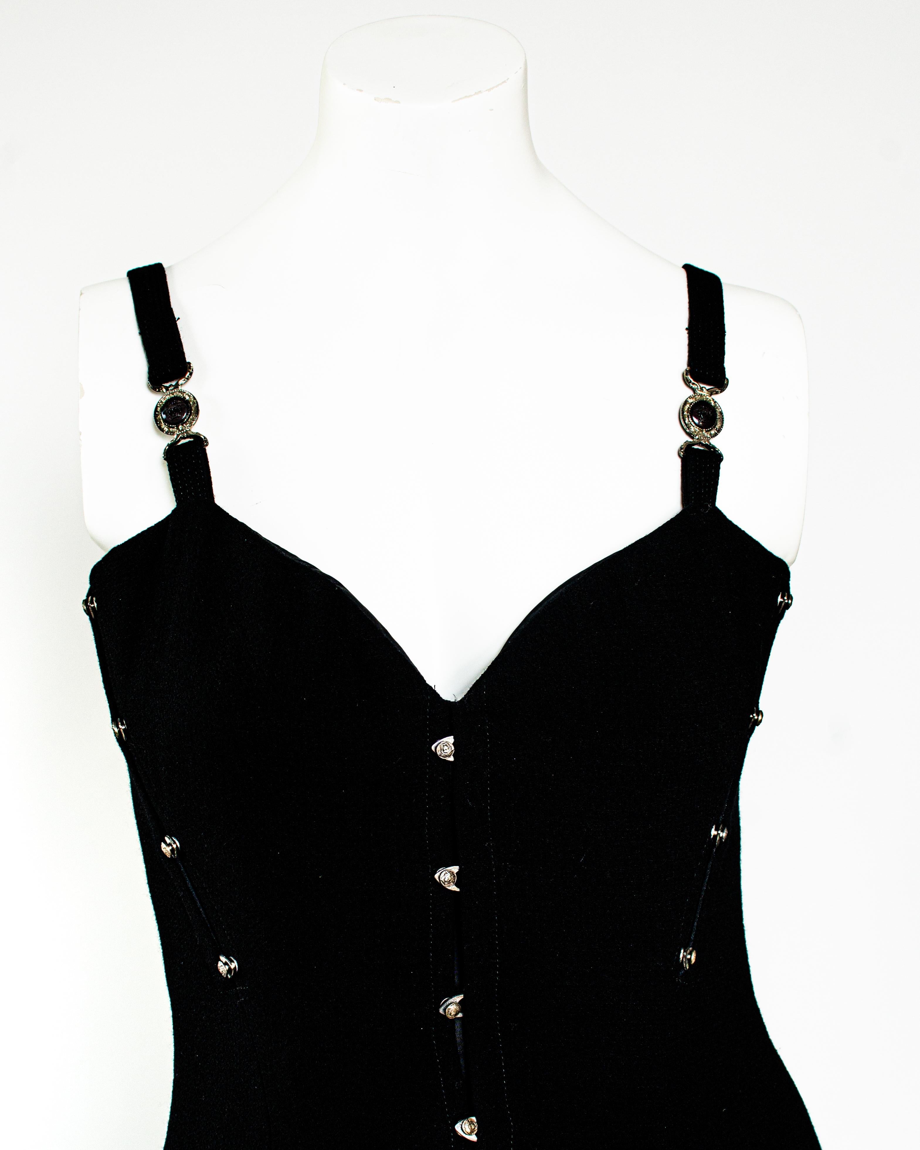 S/S 1995 Gianni Versace Couture Bustier Medusa Corset Boned Flare Black Dress