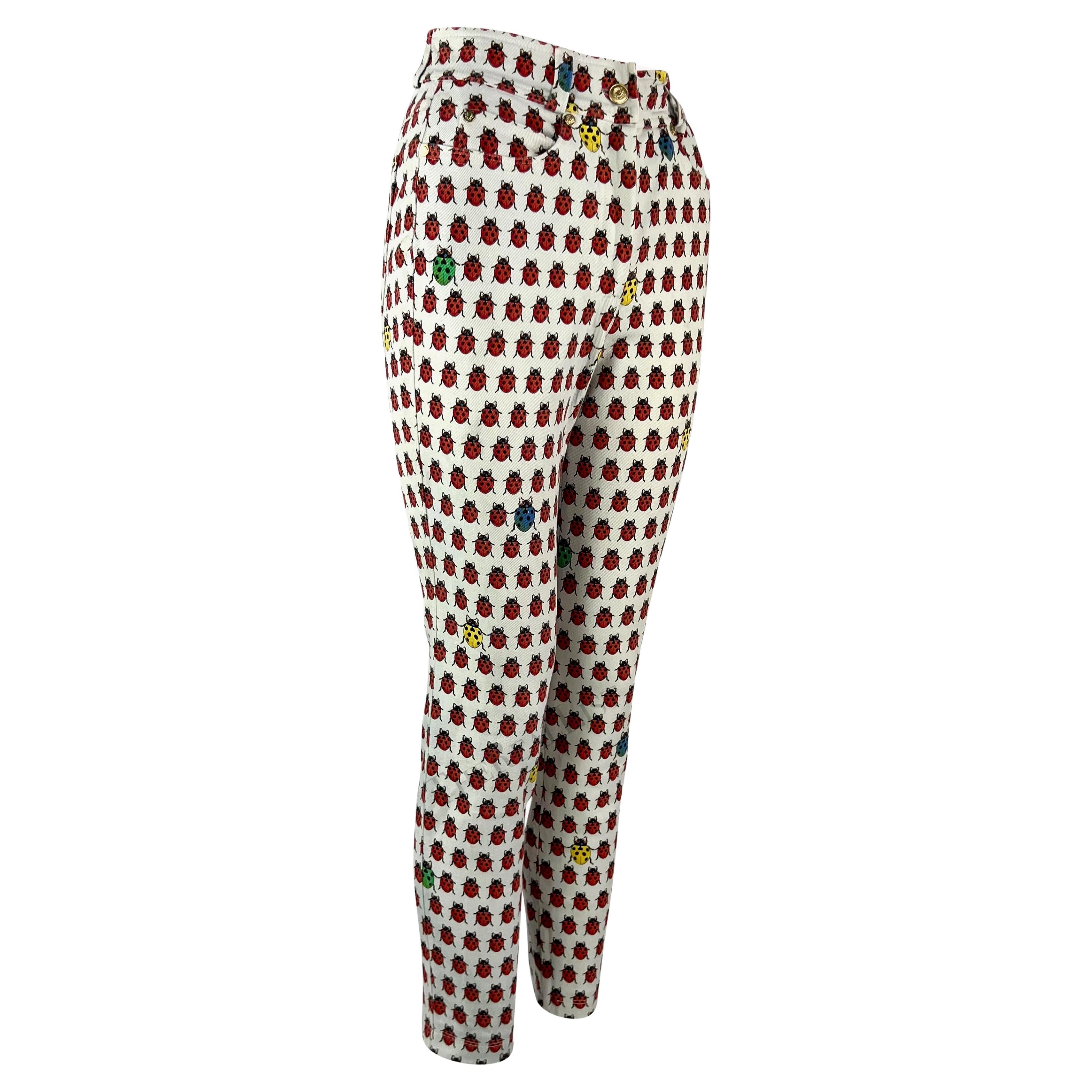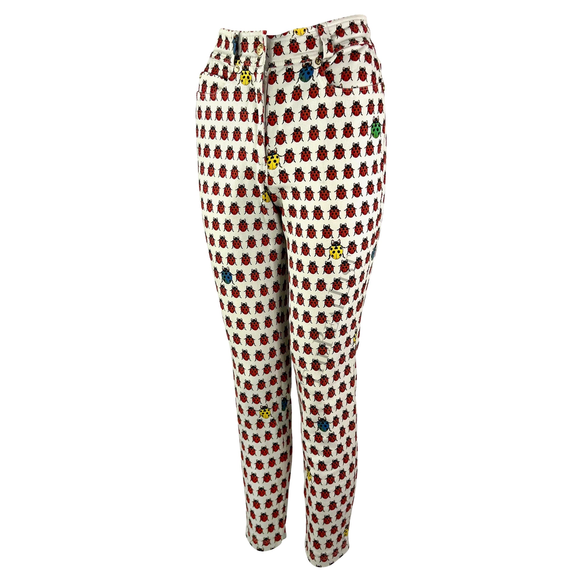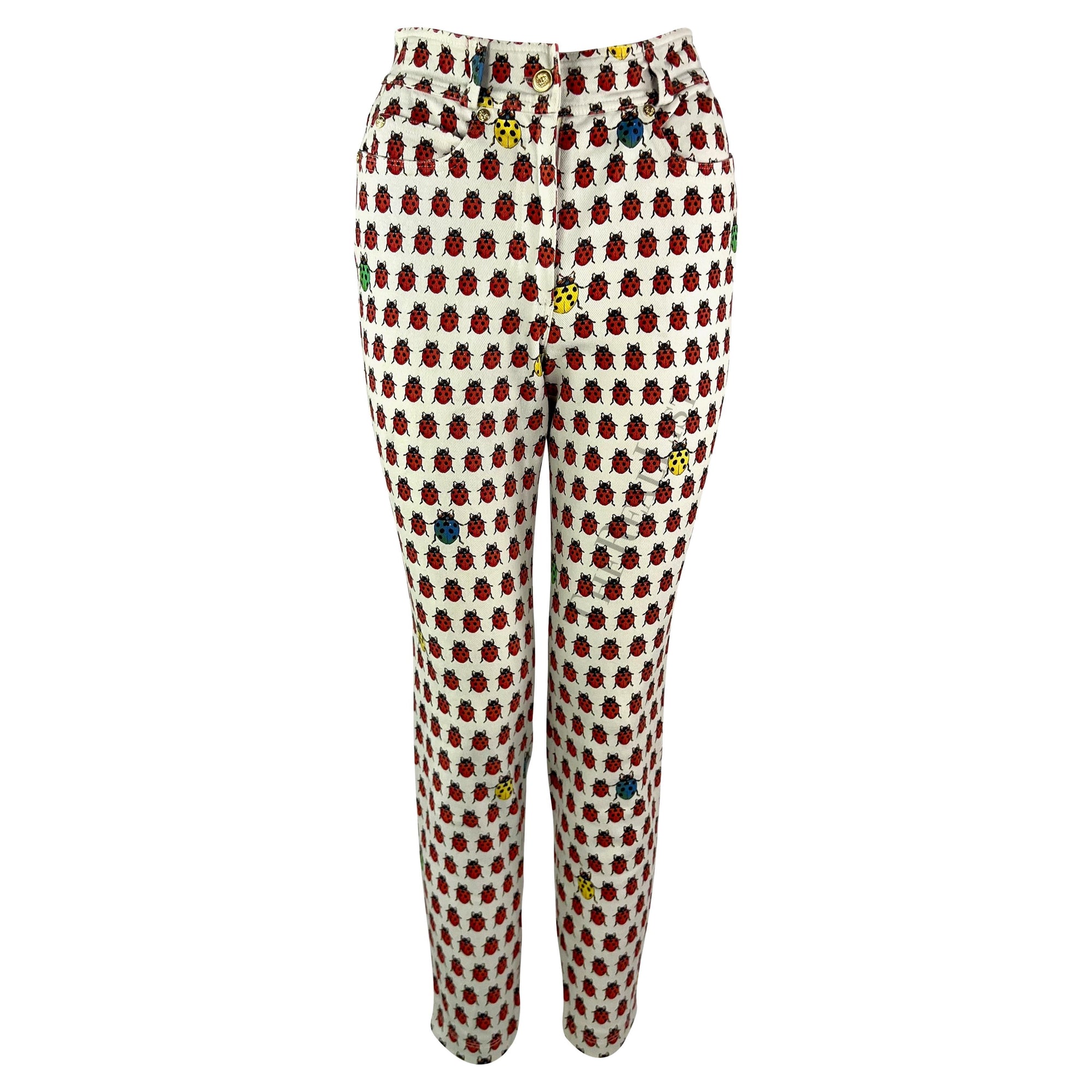 S/S 1995 Gianni Versace White Lady Bug Print Denim Jean Pants