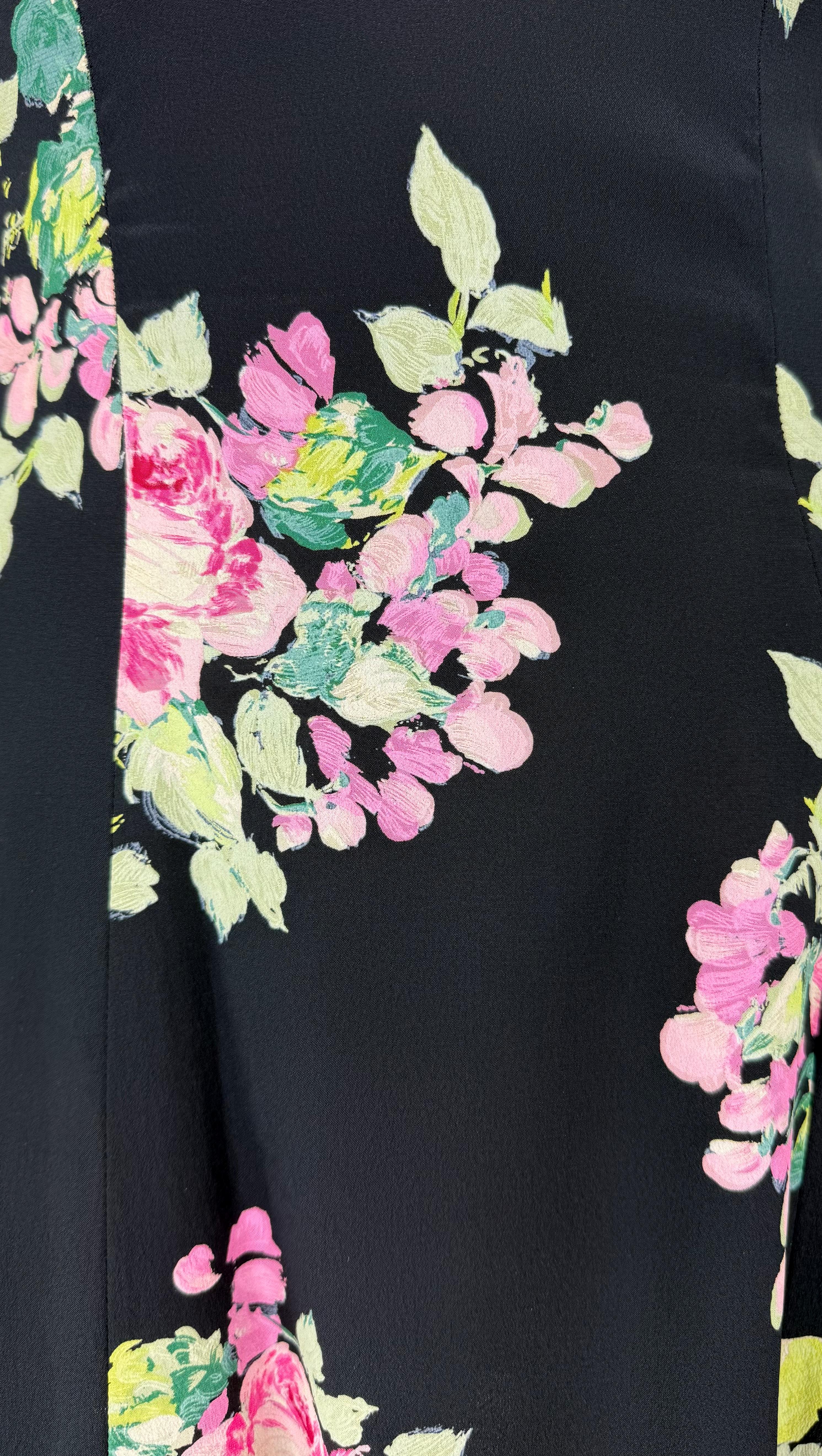 S/S 1995 Ralph Lauren Kate Moss Runway Black Silk Pink Floral Flared Dress