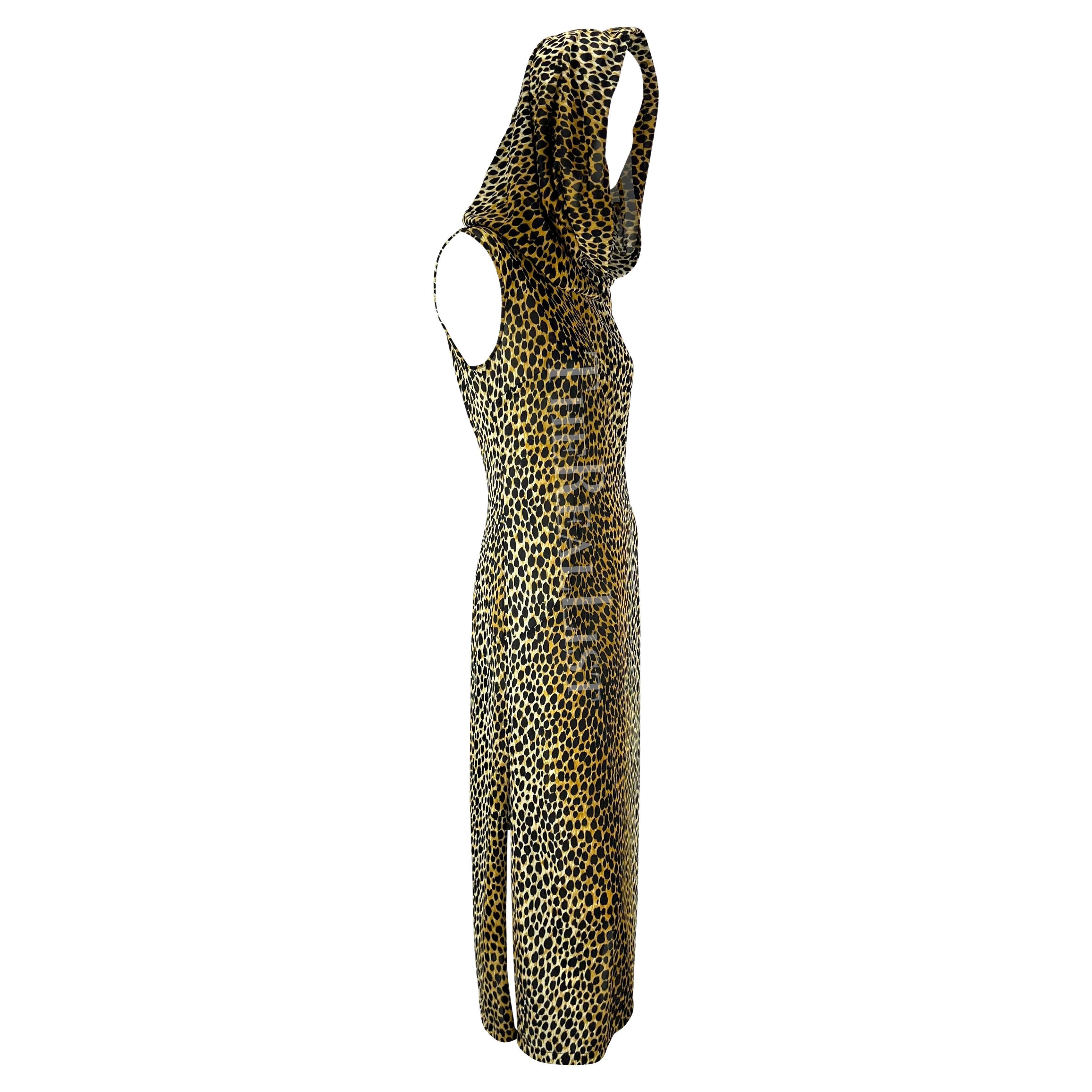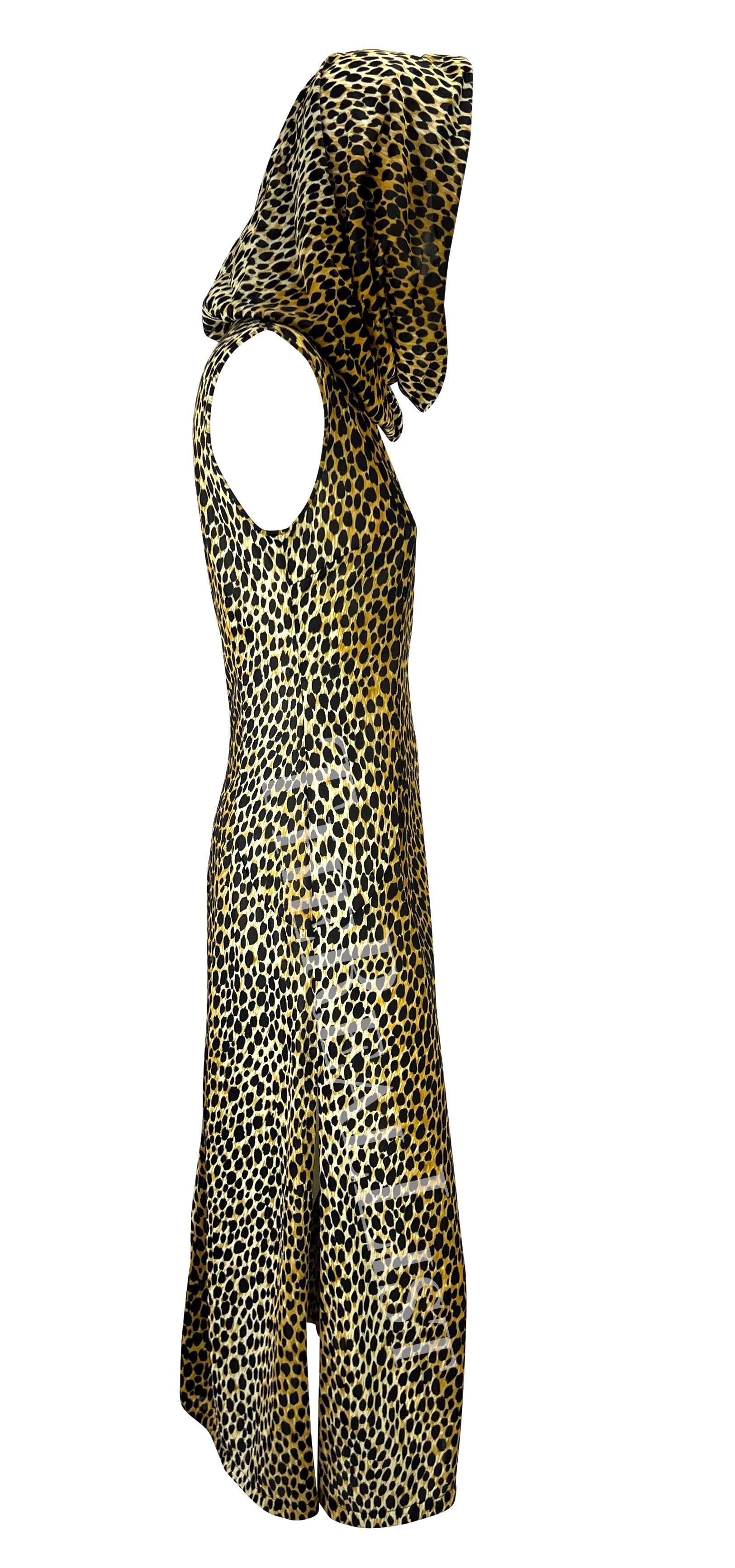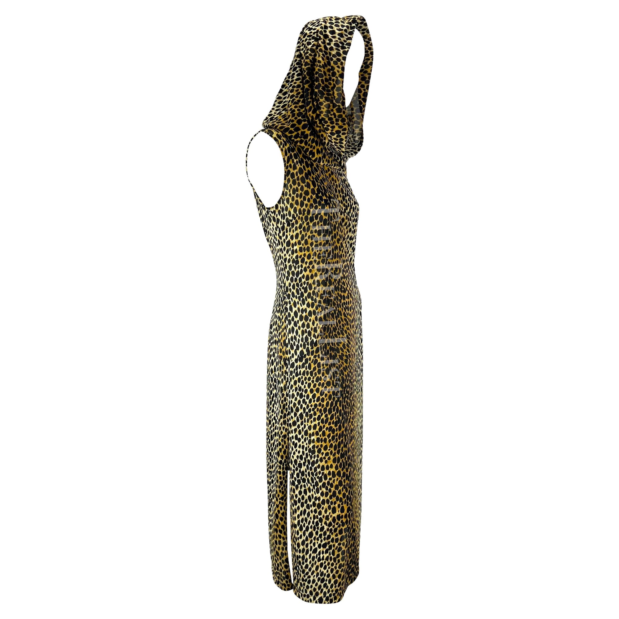S/S 1996 Dolce & Gabbana Hooded Stretch Cheetah Print High Slit Dress