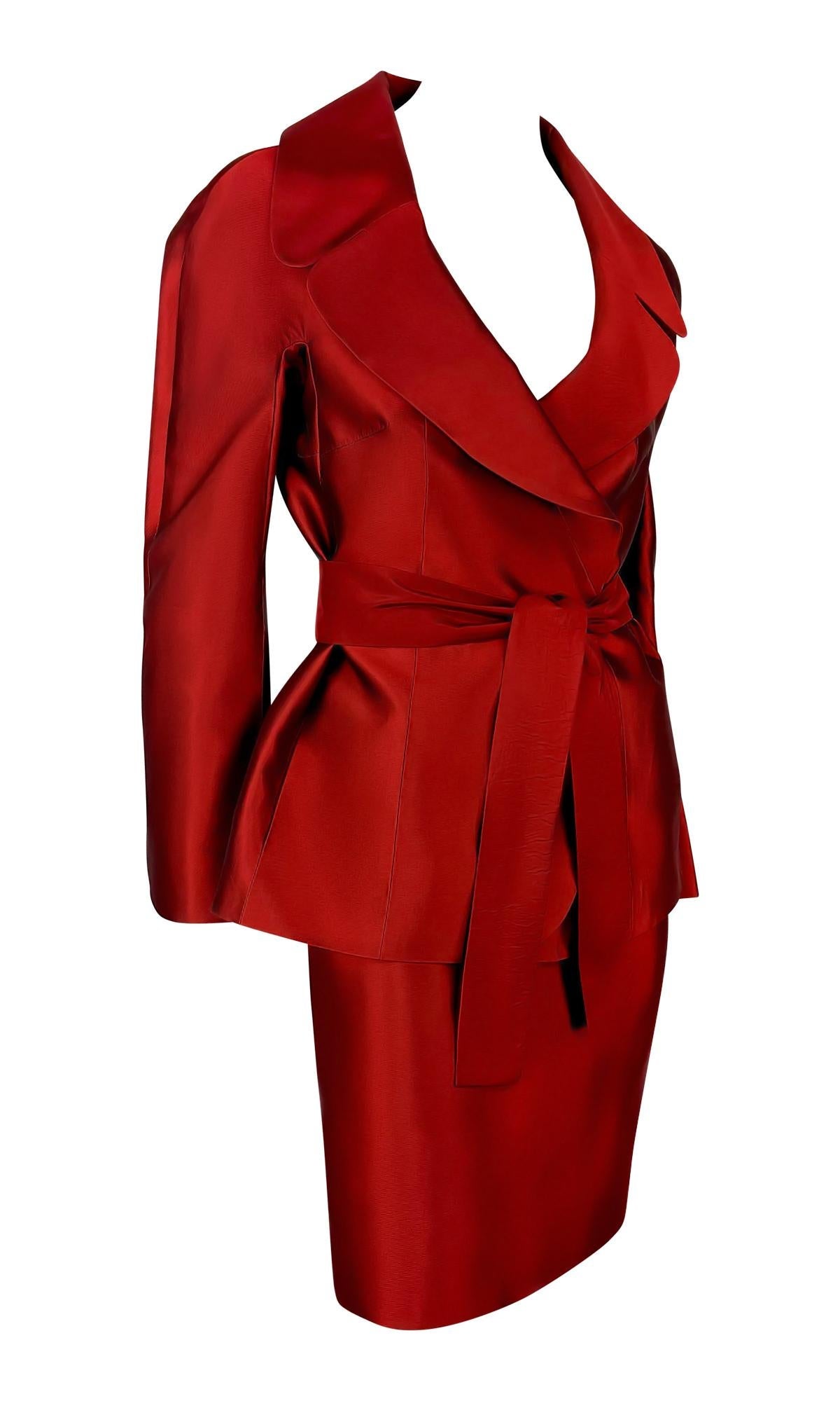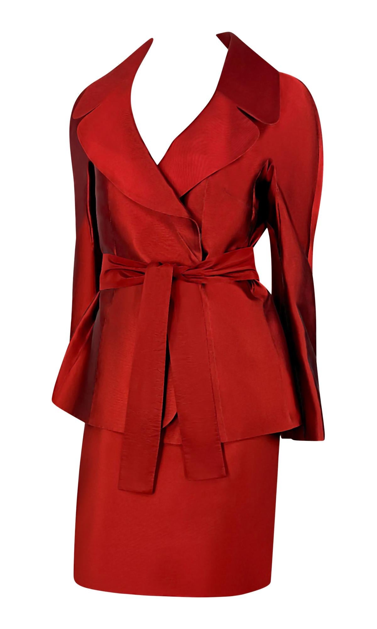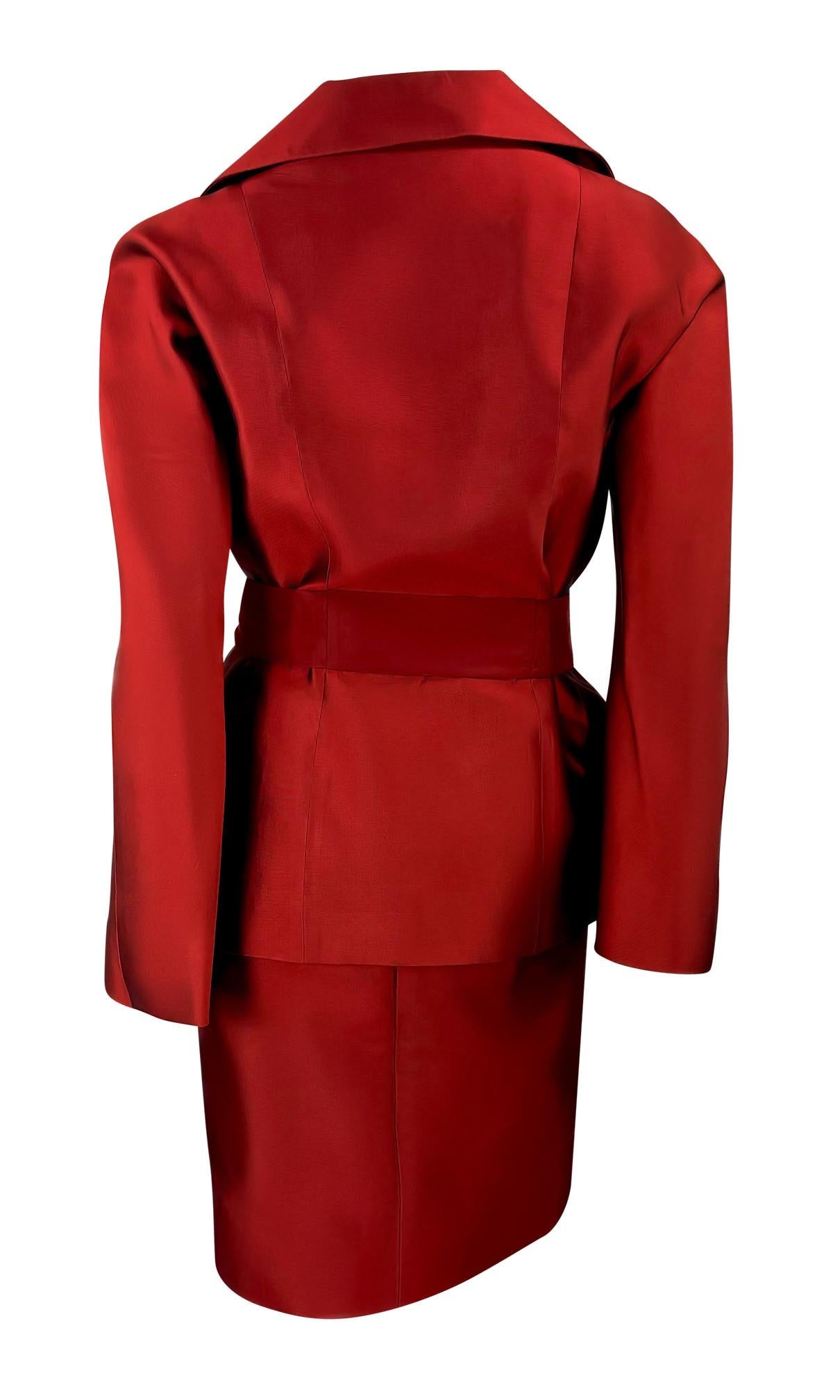 S/S 1996 Dolce & Gabbana Runway Deep Red Silk Satin Taffeta Belted Skirt Suit