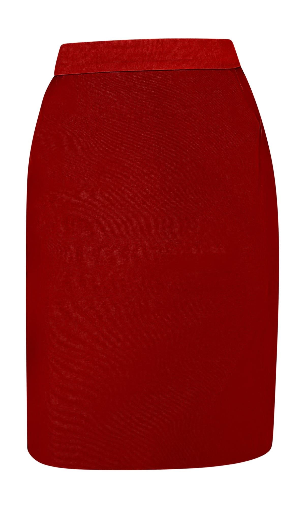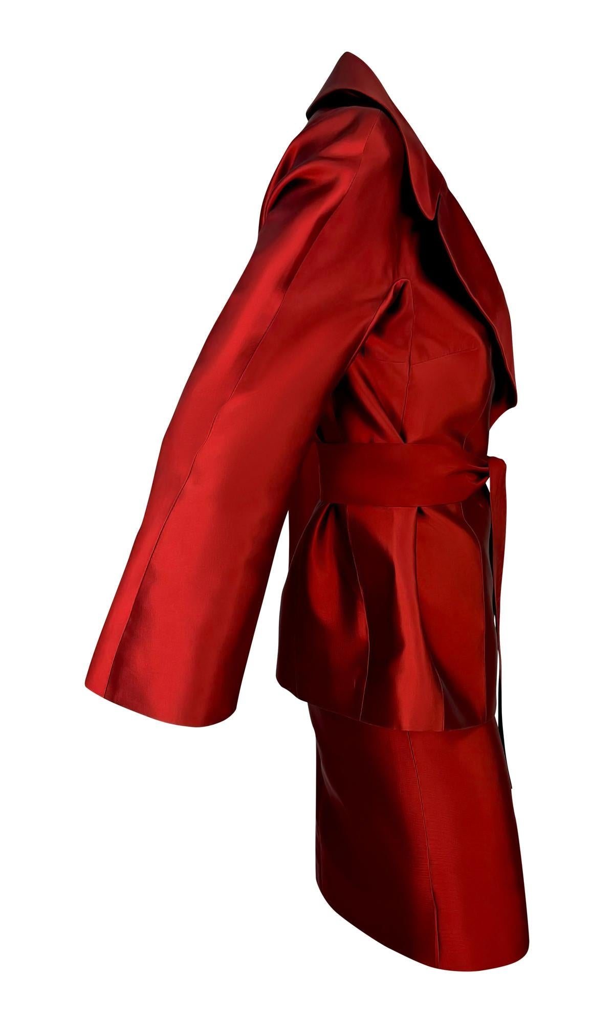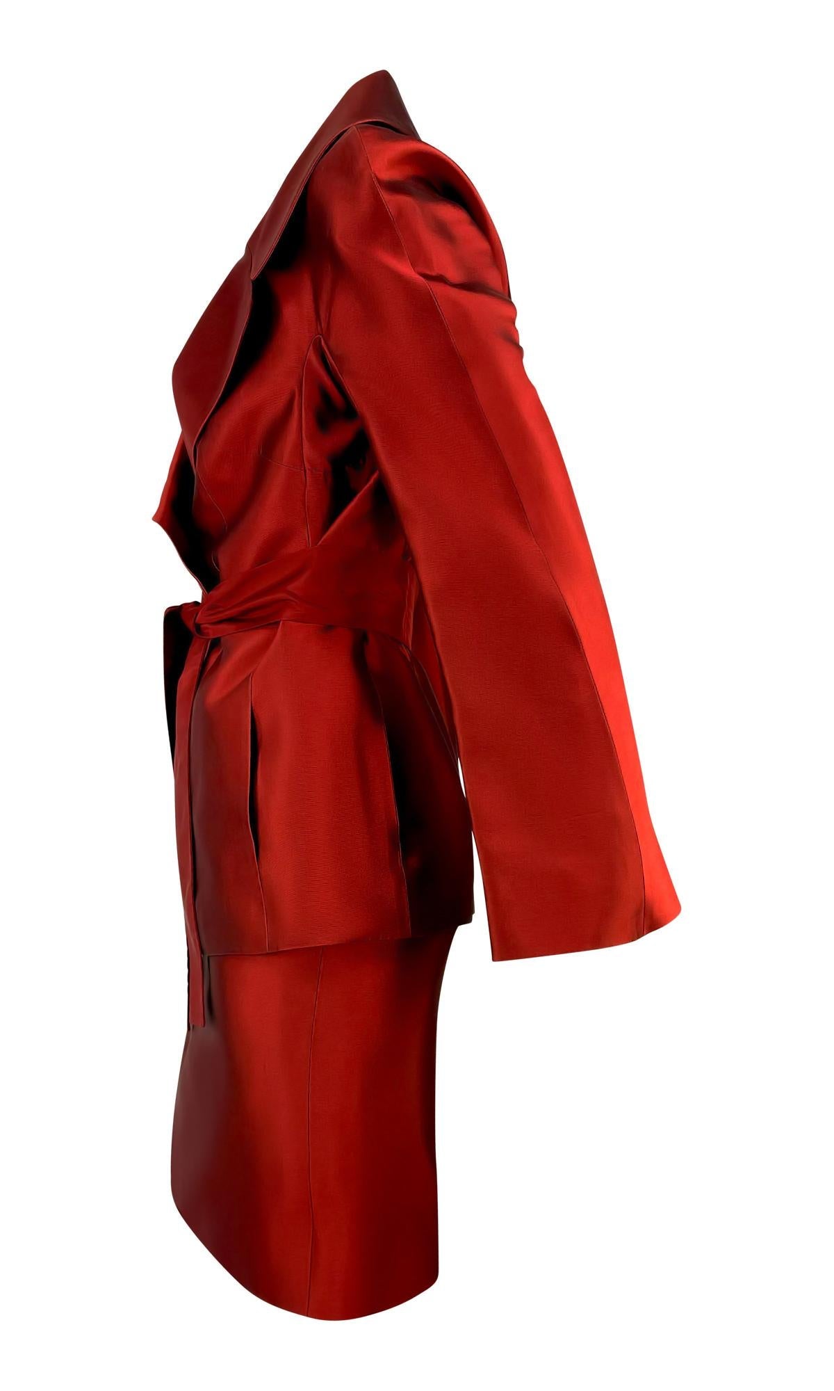 S/S 1996 Dolce & Gabbana Runway Deep Red Silk Satin Taffeta Belted Skirt Suit