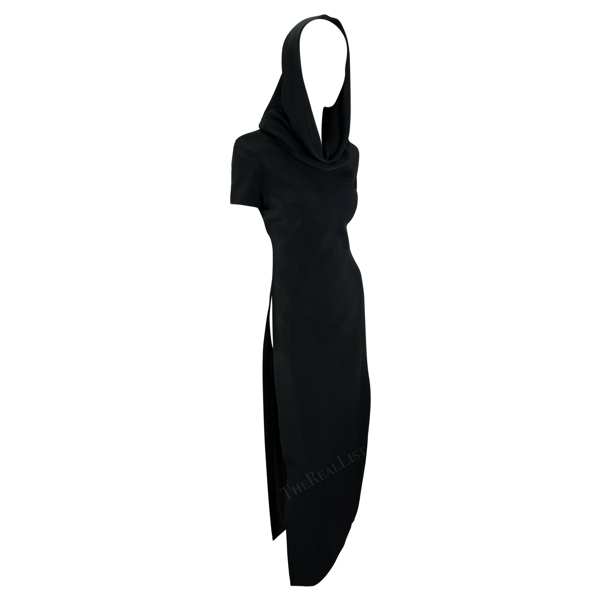 S/S 1996 Dolce & Gabbana Runway High Slit Black Hooded Tunic Gown