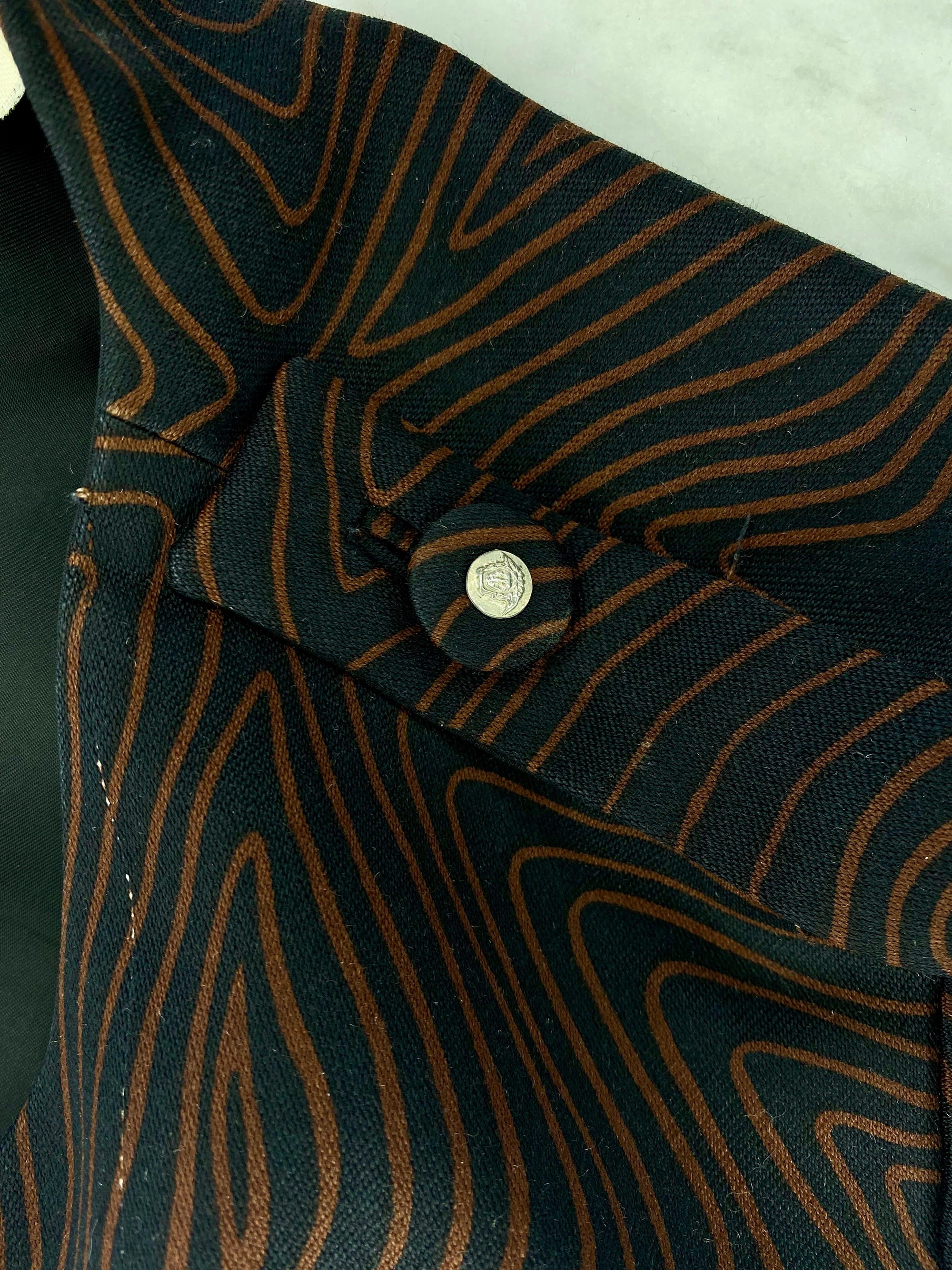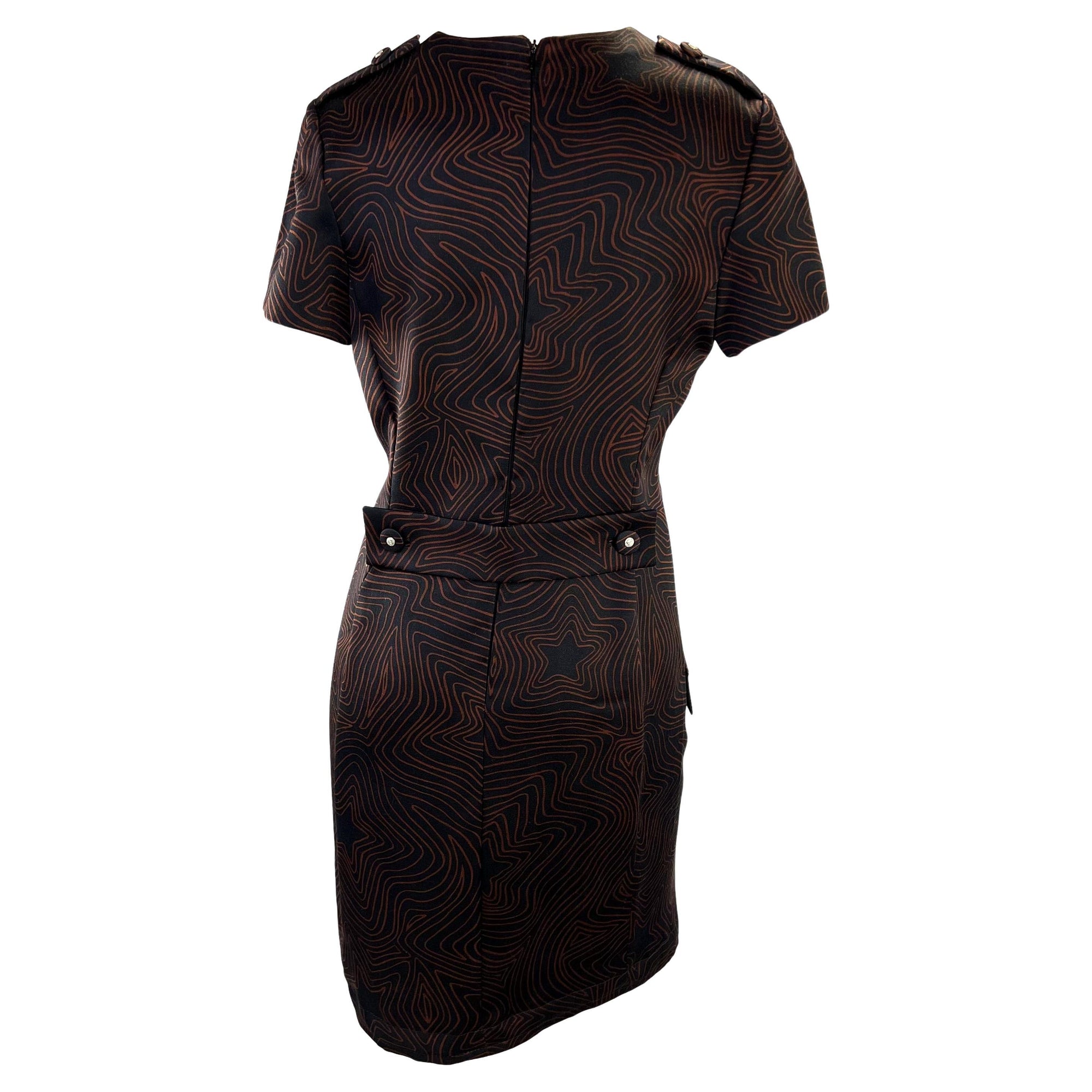 S/S 1996 Gianni Versace Couture Black Brown Star Print Medusa Wool Dress