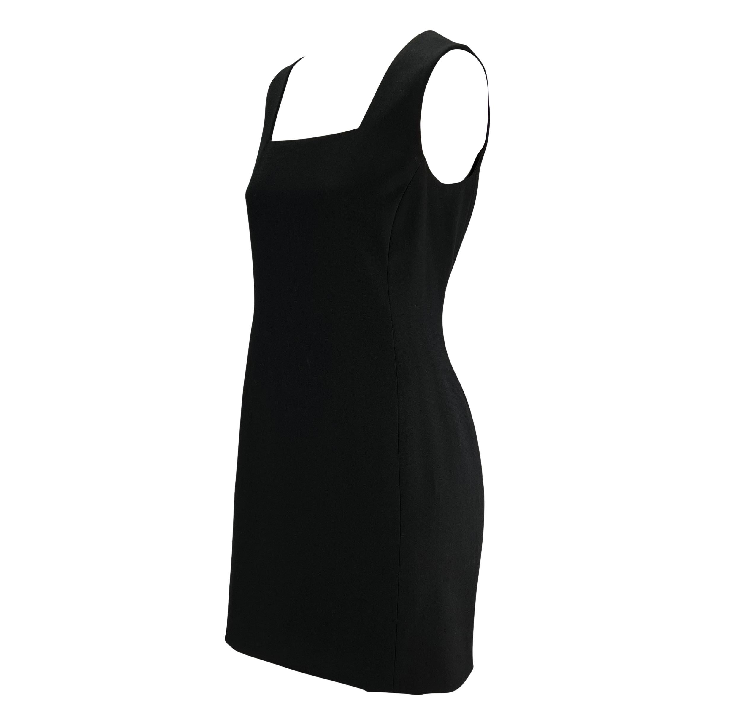 Presenting a black Medusa button dress and jacket set designed by Gianni Versace for his Spring/Summer 1996 collection. The jacket debuted in look number 3 on Kate Moss. From one of Gianni's most minimal collections, the lack of embellishment allows the focus to be on the set's expert cut and tailoring.