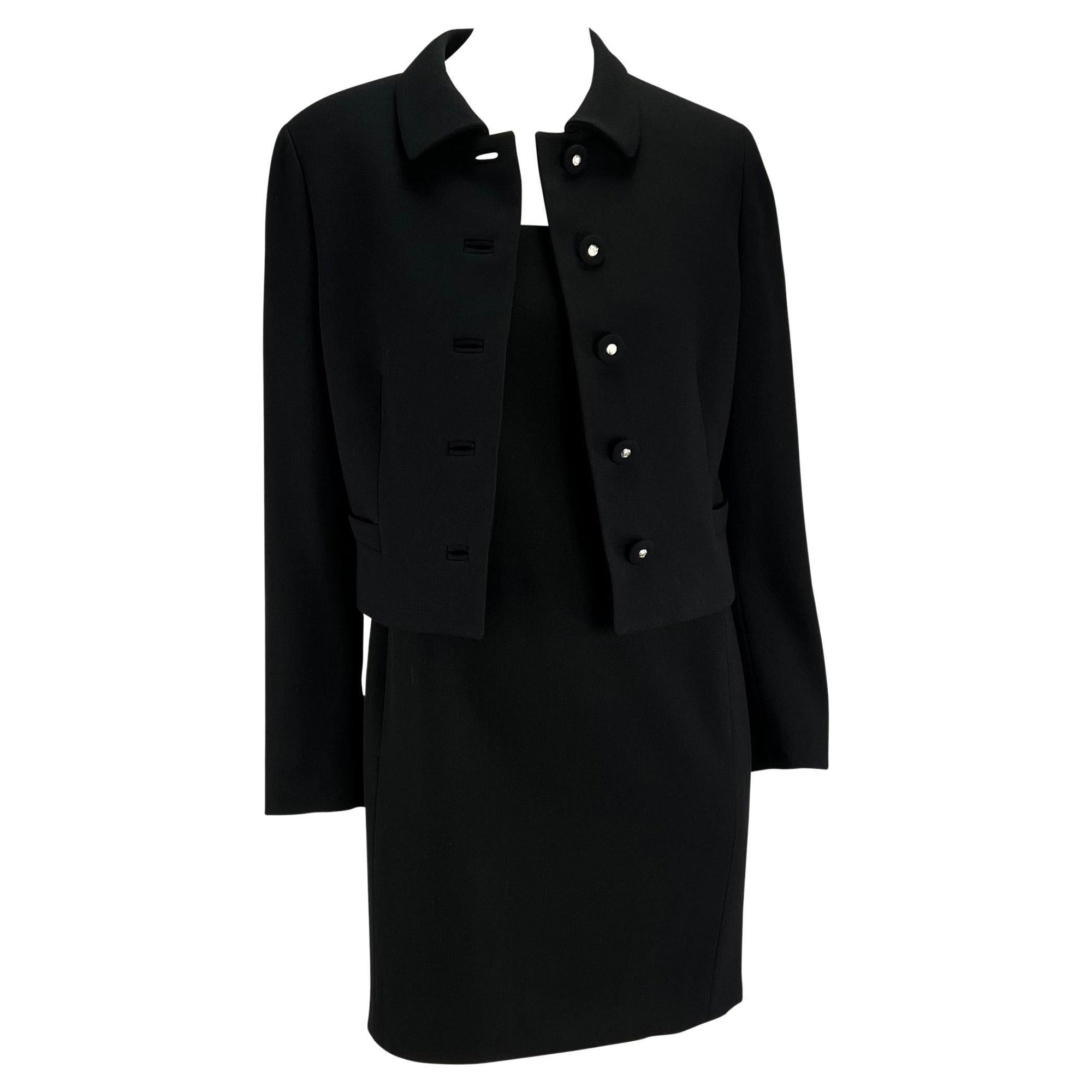 S/S 1996 Gianni Versace Couture Black Wool Medusa Button Dress Jacket Set