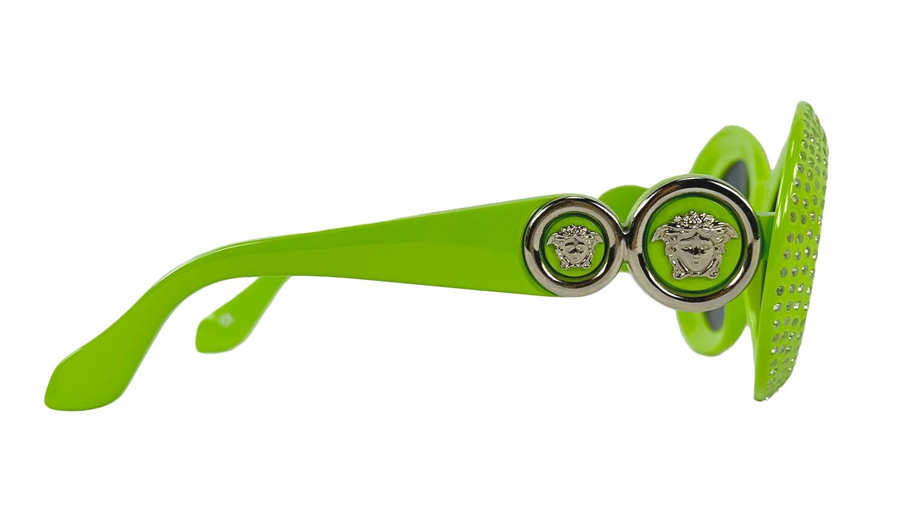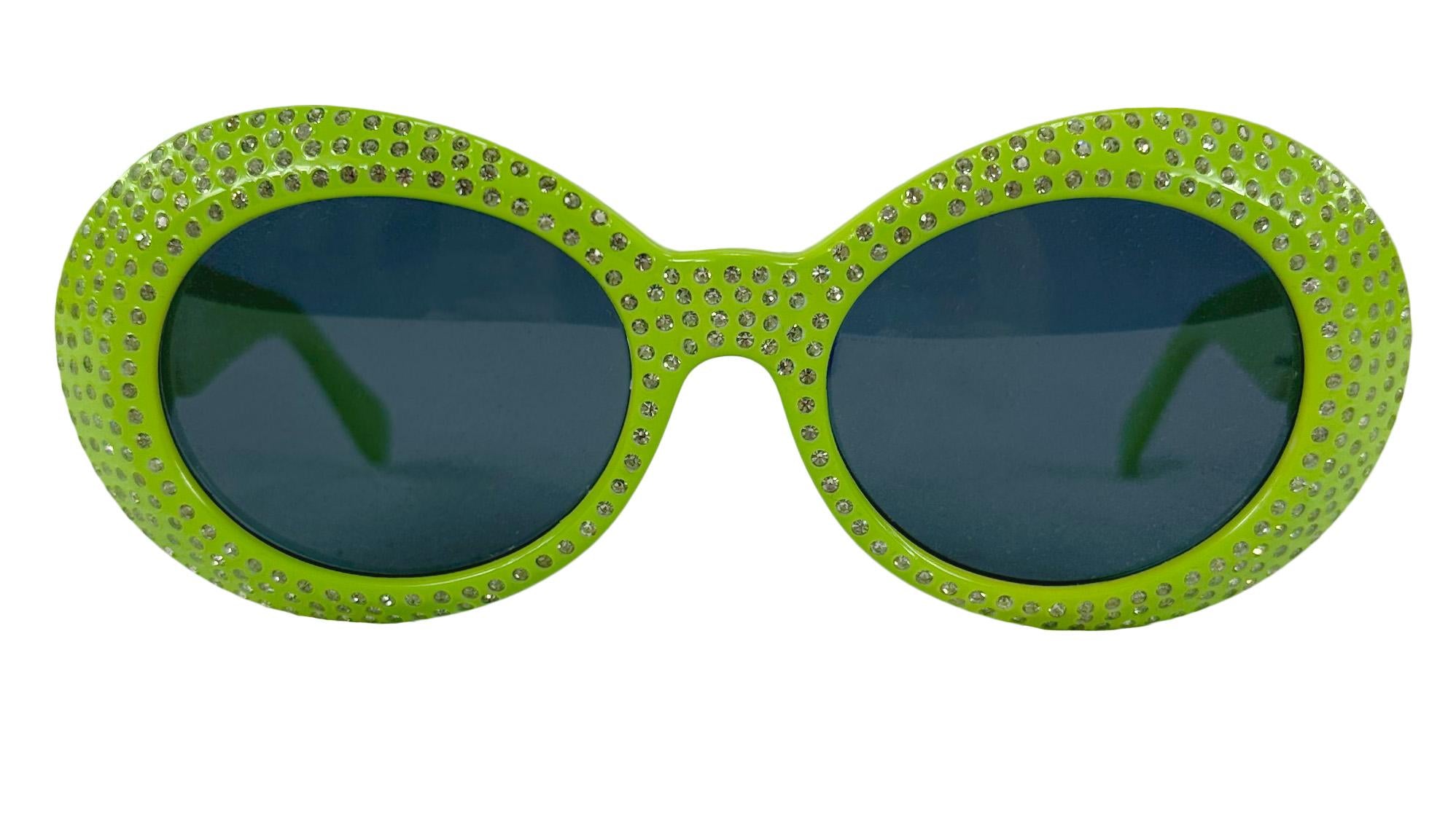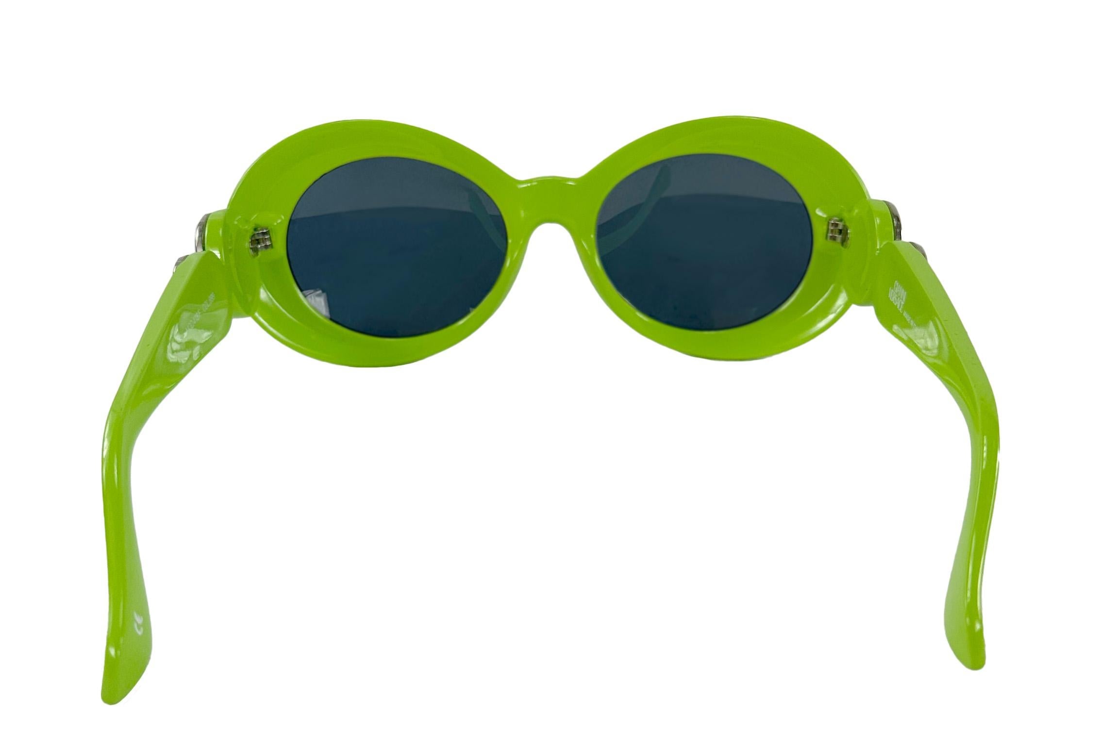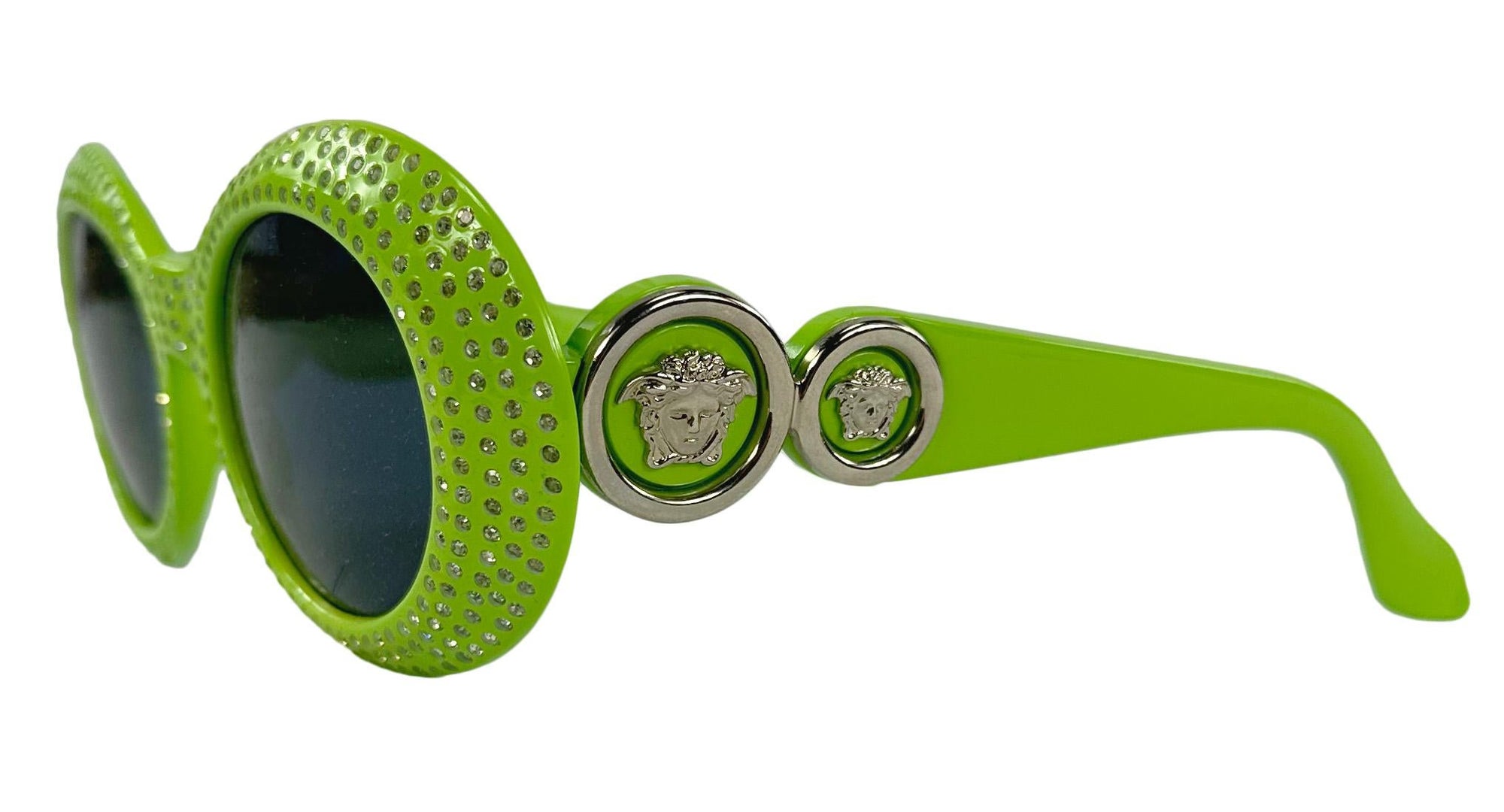S/S 1996 Gianni Versace Lime Green Rhinestone Round Double Medusa Sunglasses