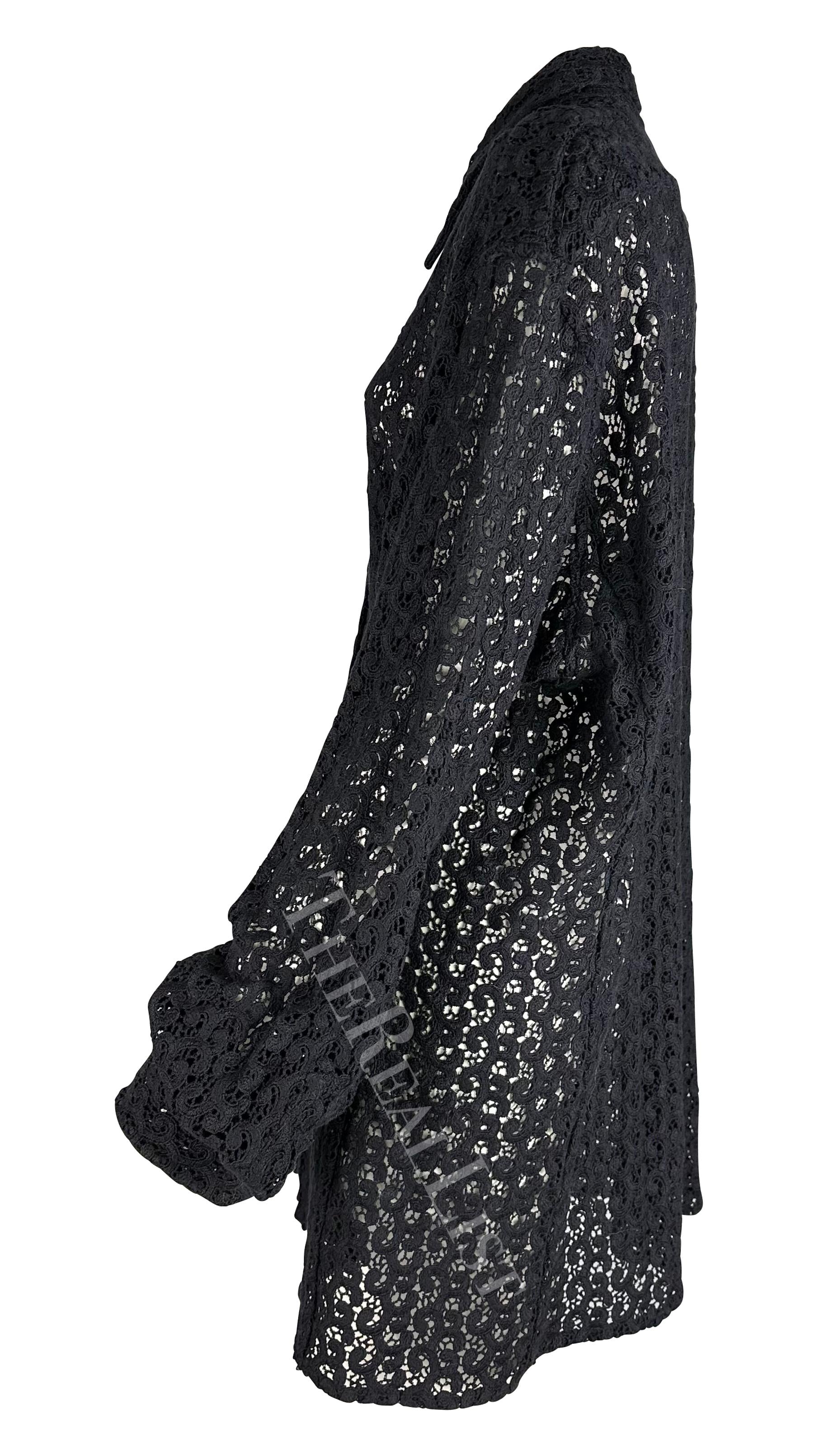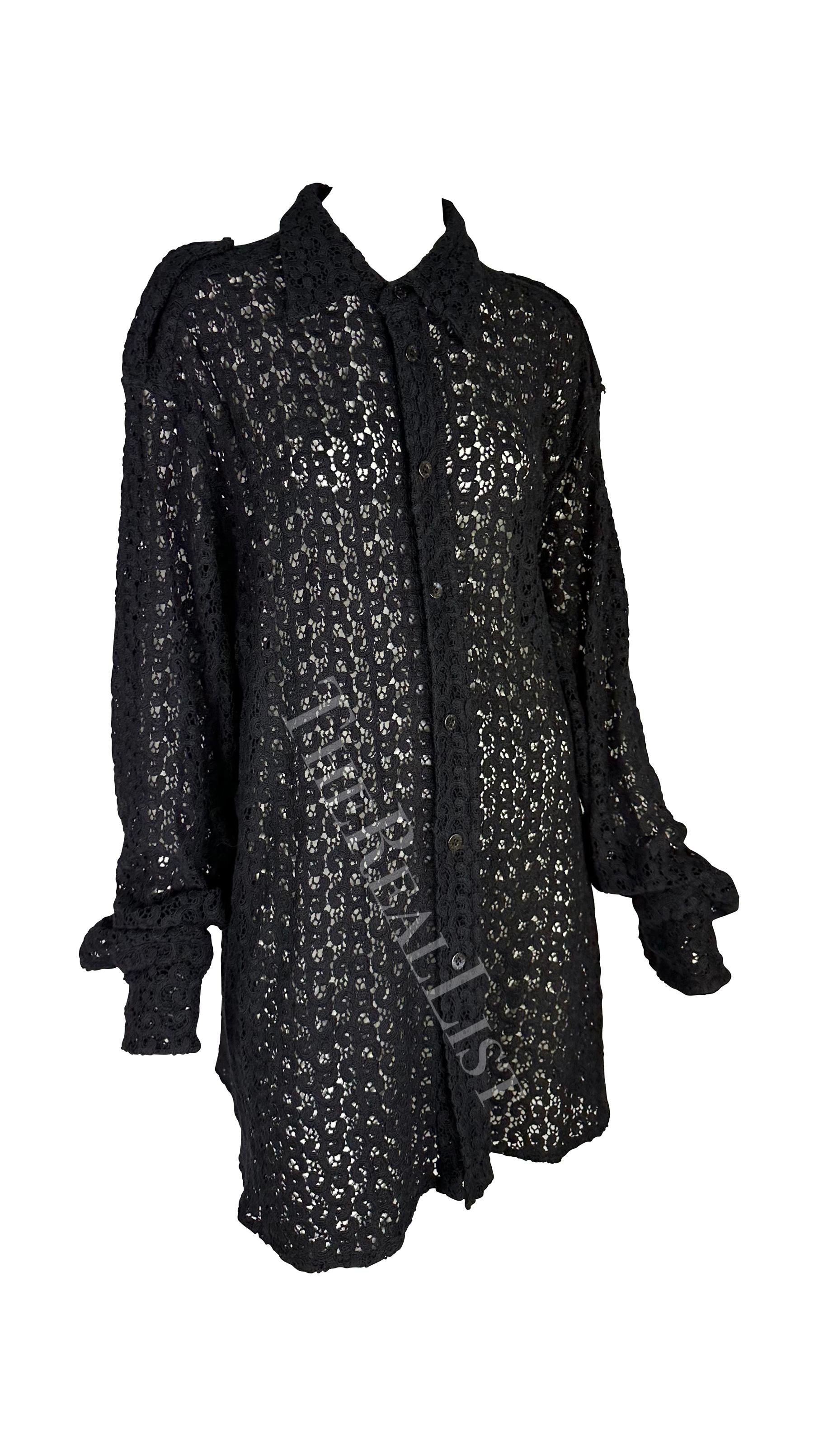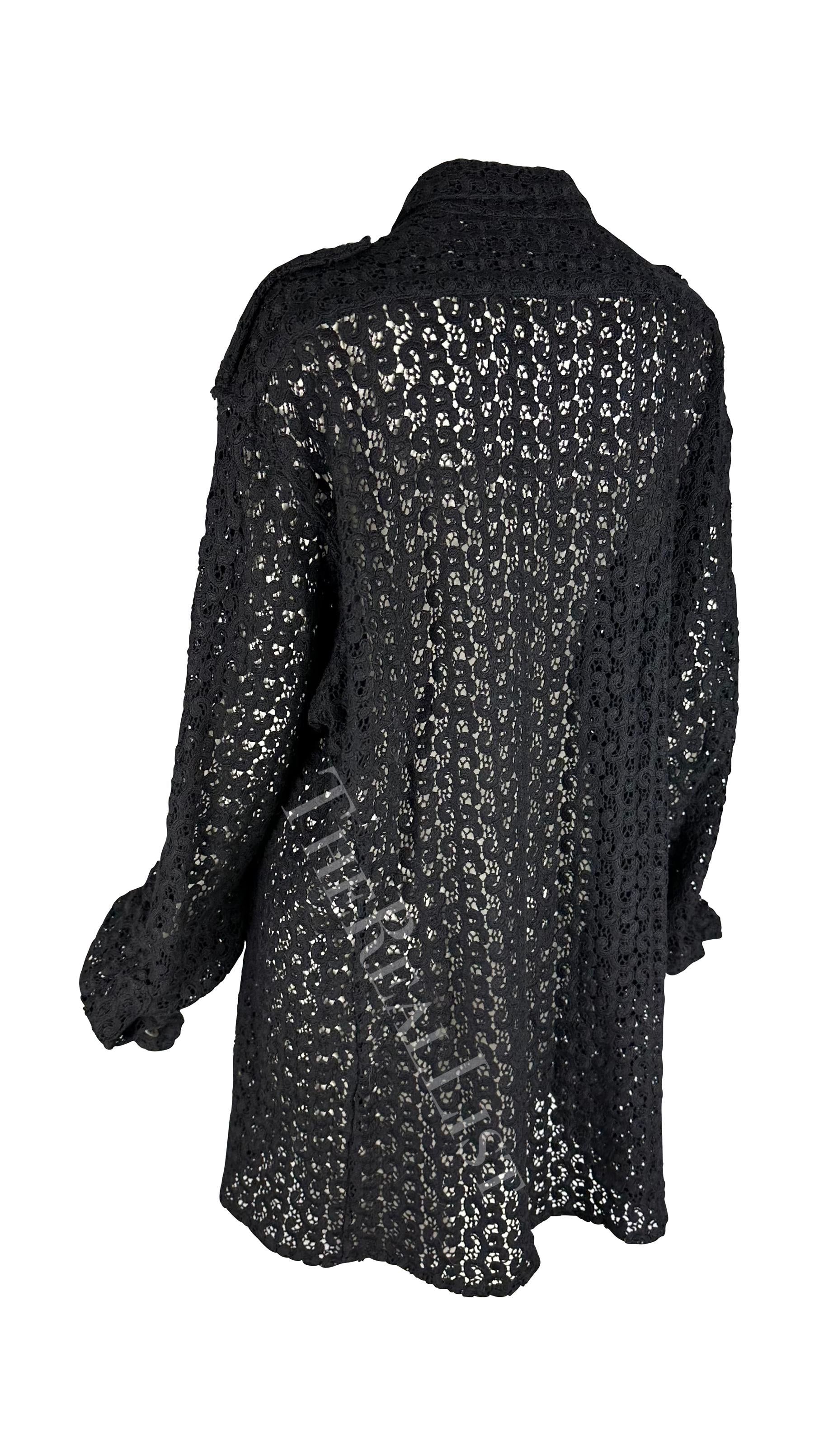 S/S 1996 Gucci by Tom Ford Men's Black Crochet Lace Oversized Sheer Shirt