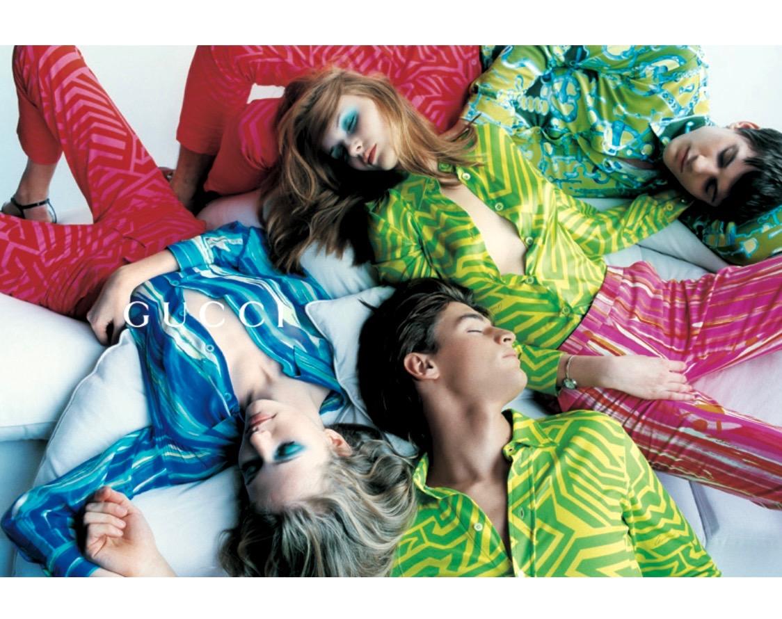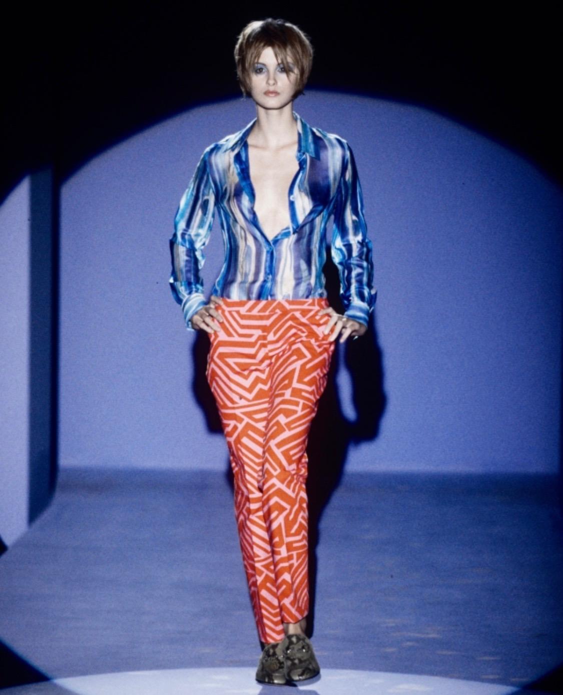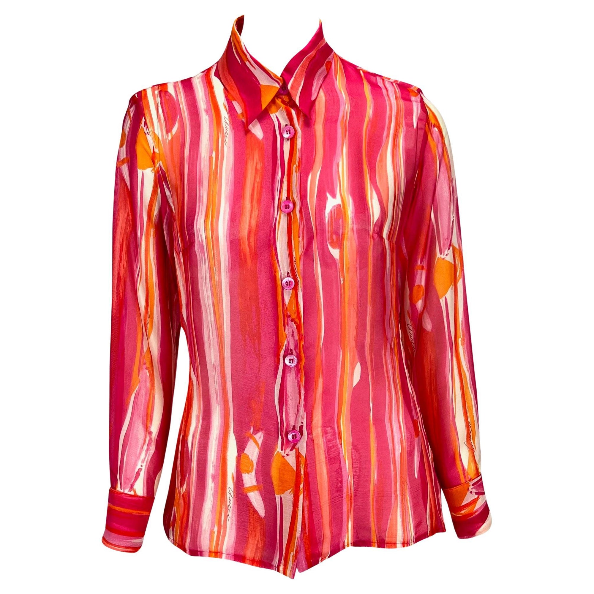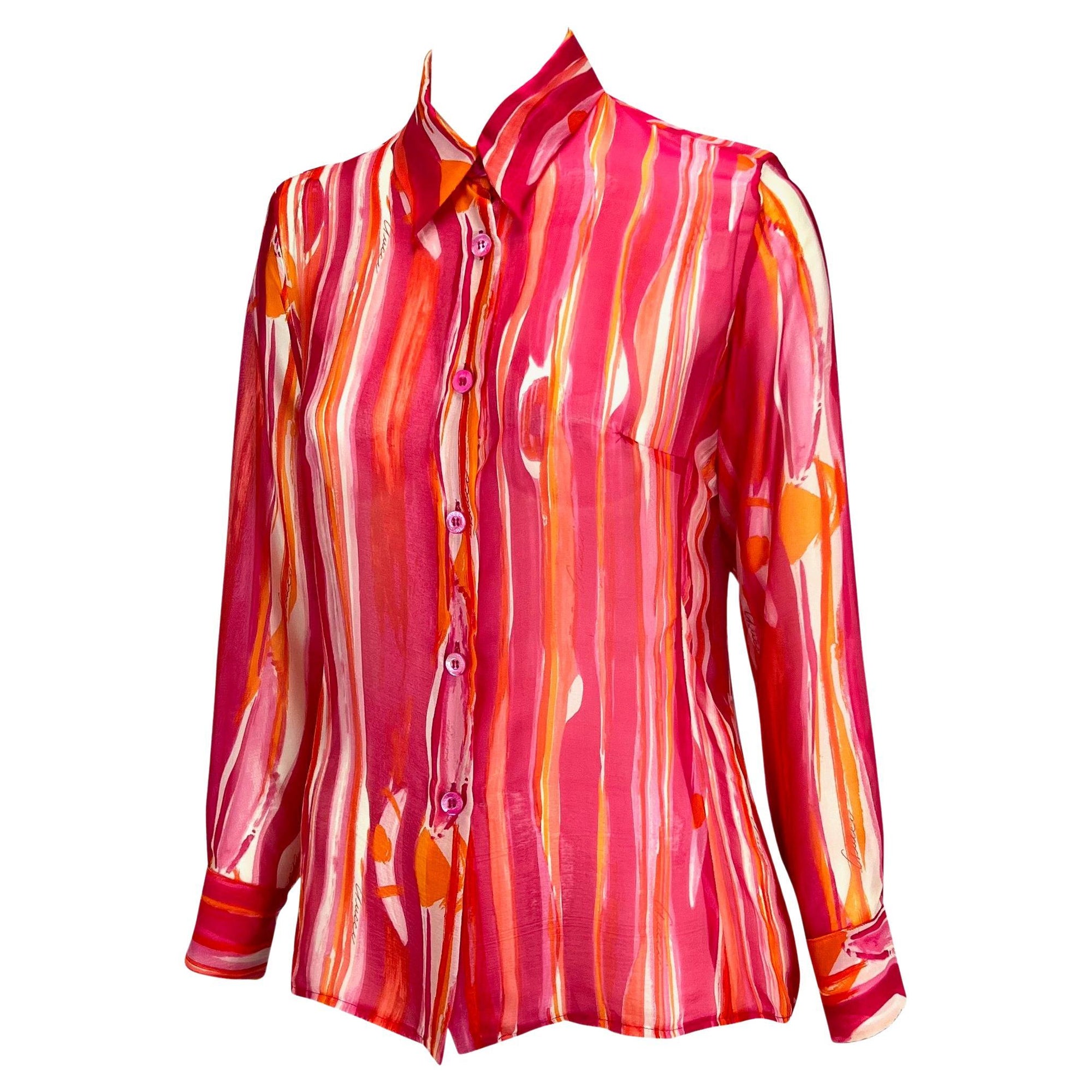 S/S 1996 Gucci by Tom Ford Pink Orange Sheer Abstract Watercolor Button Up Top
