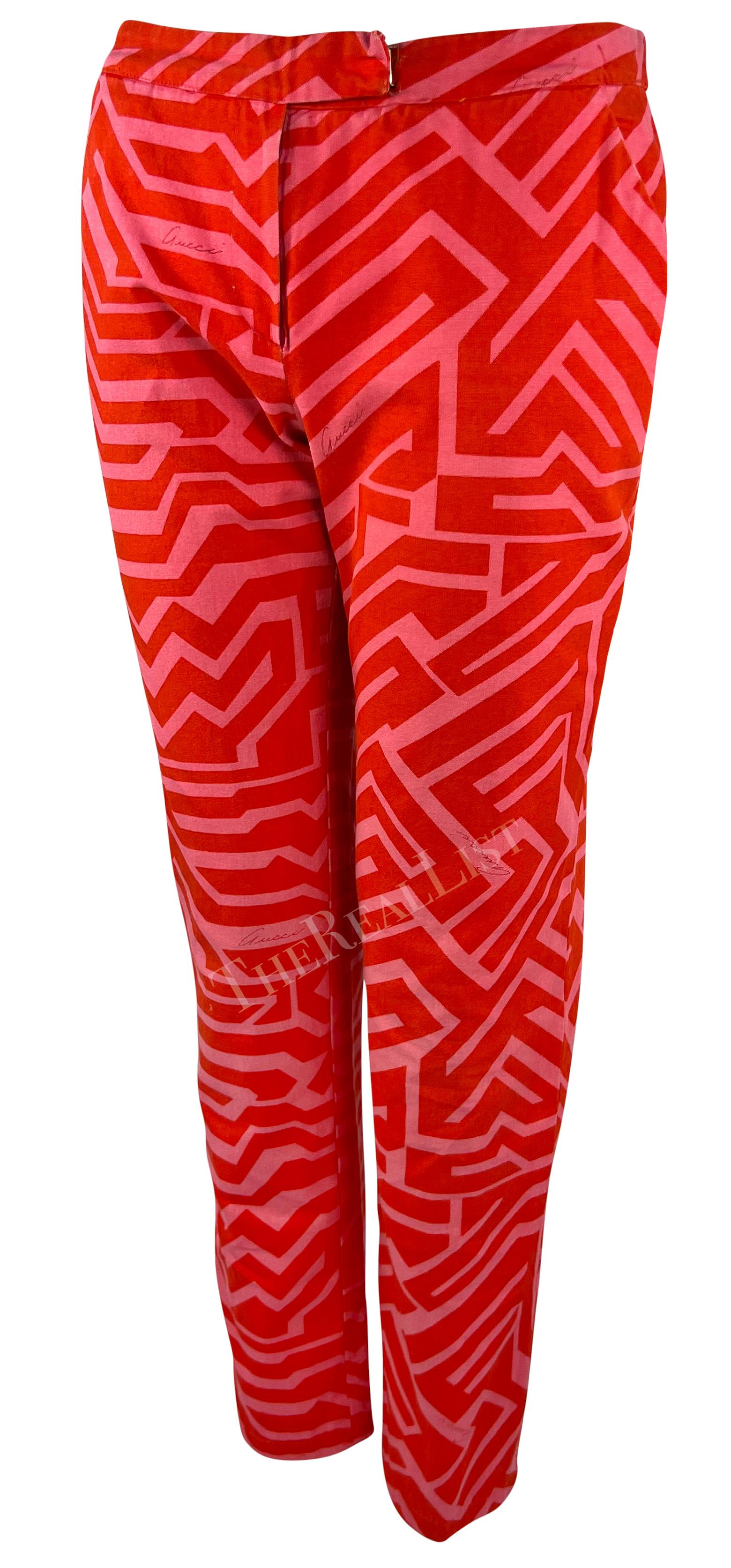 S/S 1996 Gucci by Tom Ford Pink Red Geometric Logo Print Cotton Pants