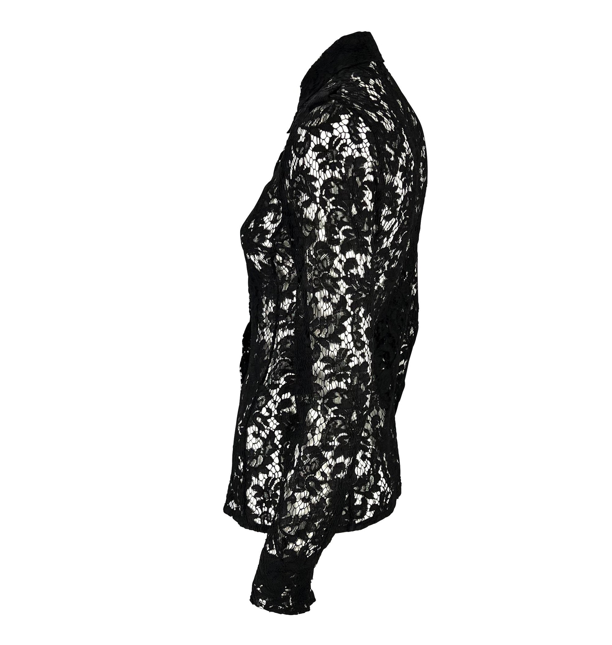 S/S 1996 Gucci by Tom Ford Runway Sheer Black Lace Button Up Top