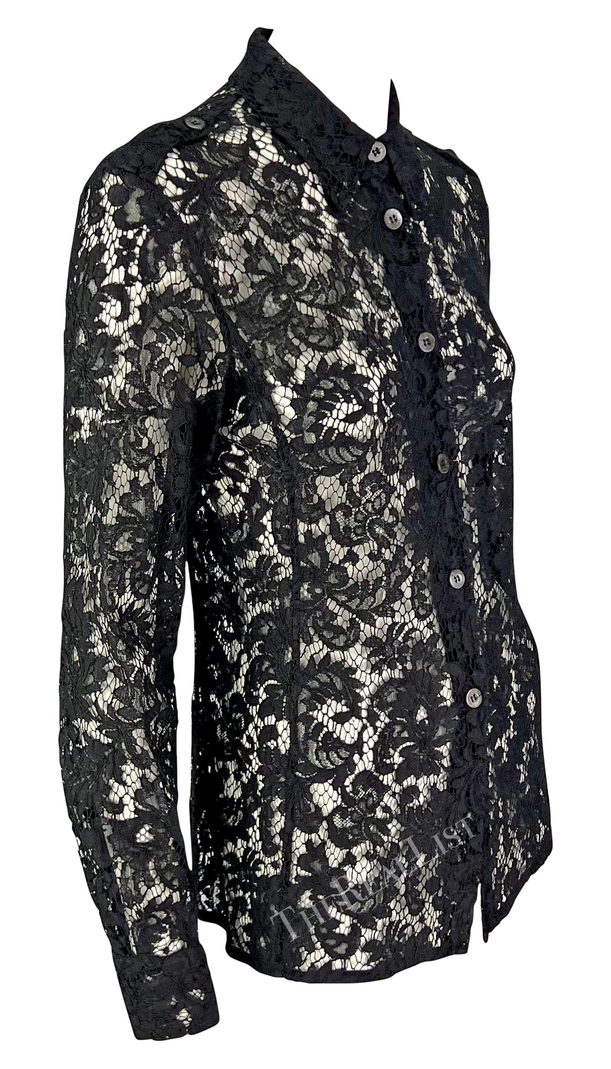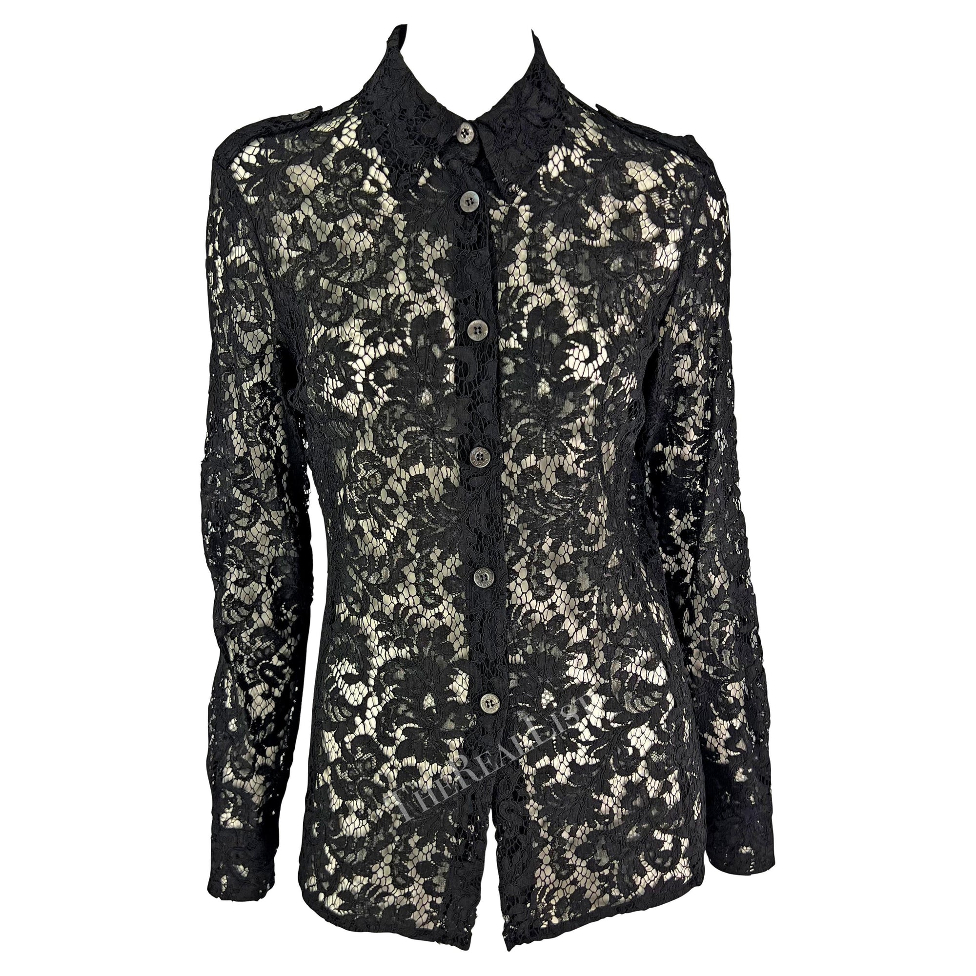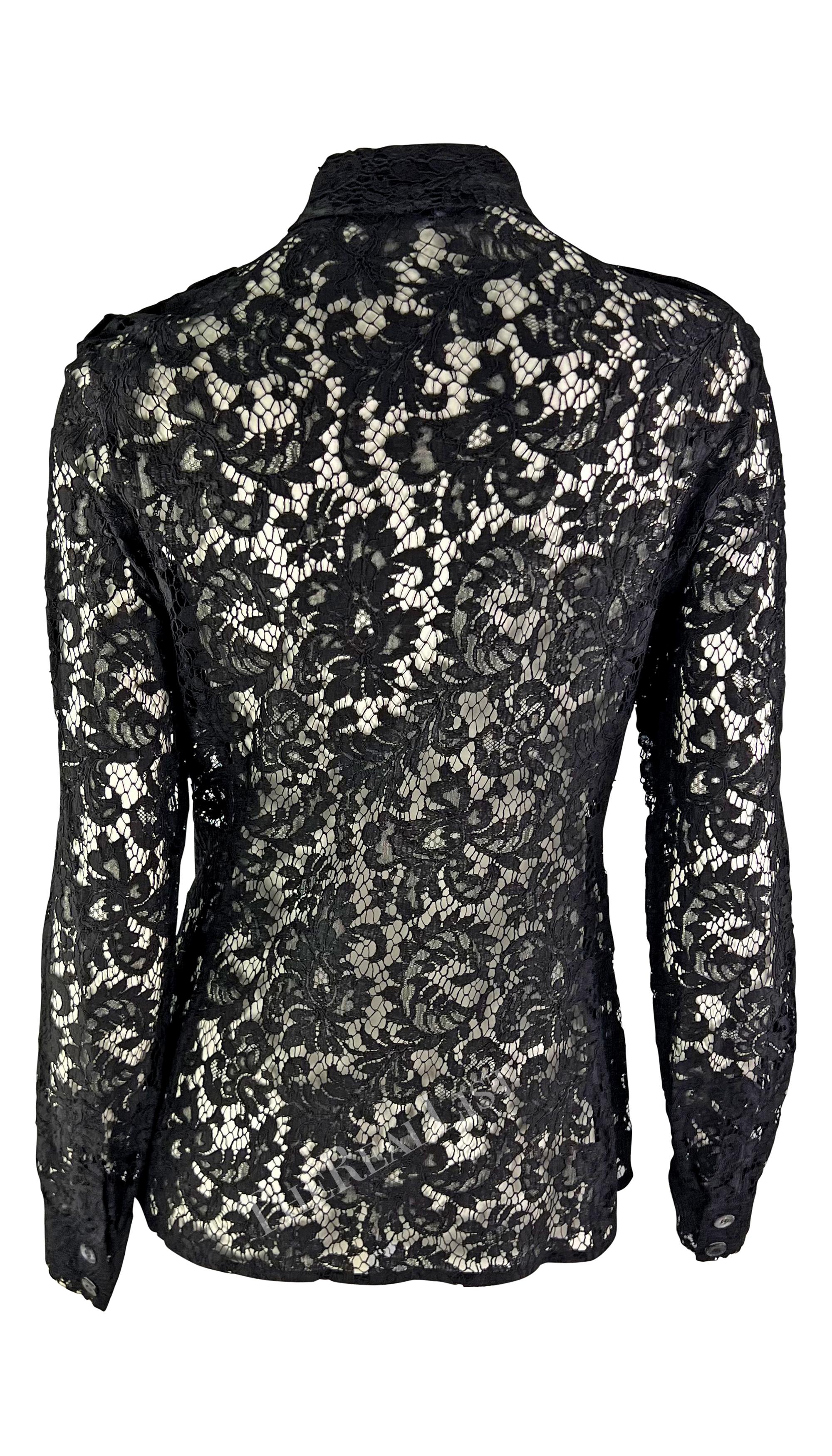S/S 1996 Gucci by Tom Ford Sheer Black Lace Button Up Shirt