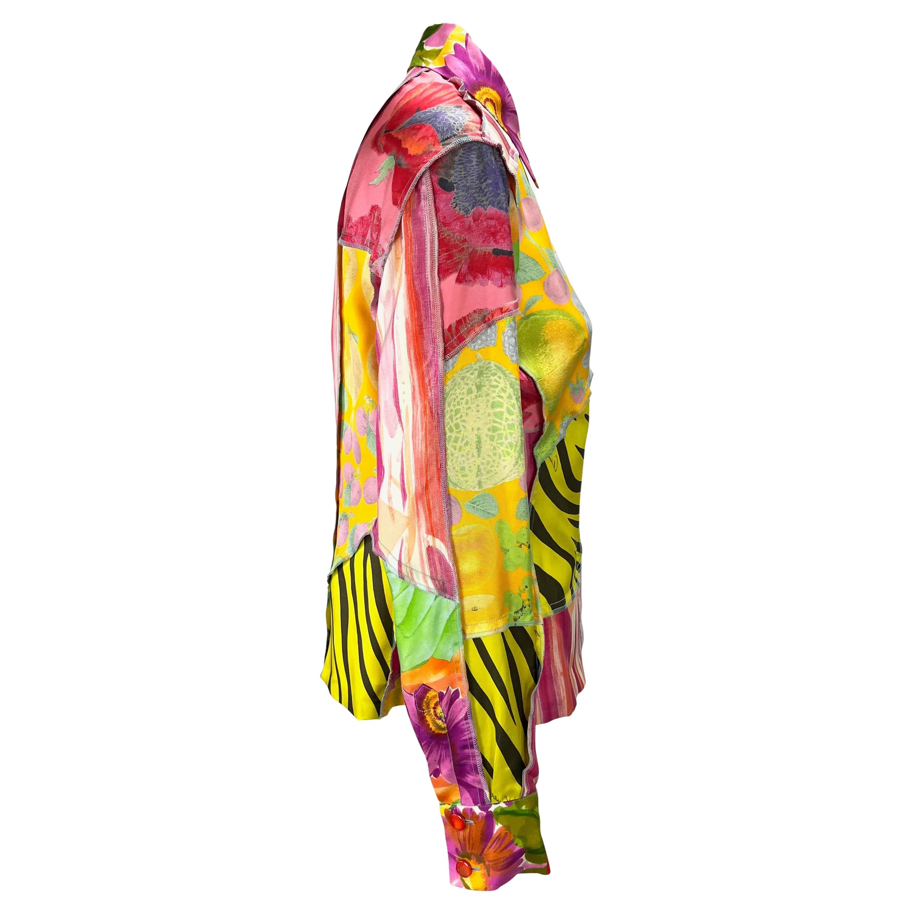 S/S 1996 Gucci by Tom Ford Silk Patchwork Inside Out Print Button Up Blouse