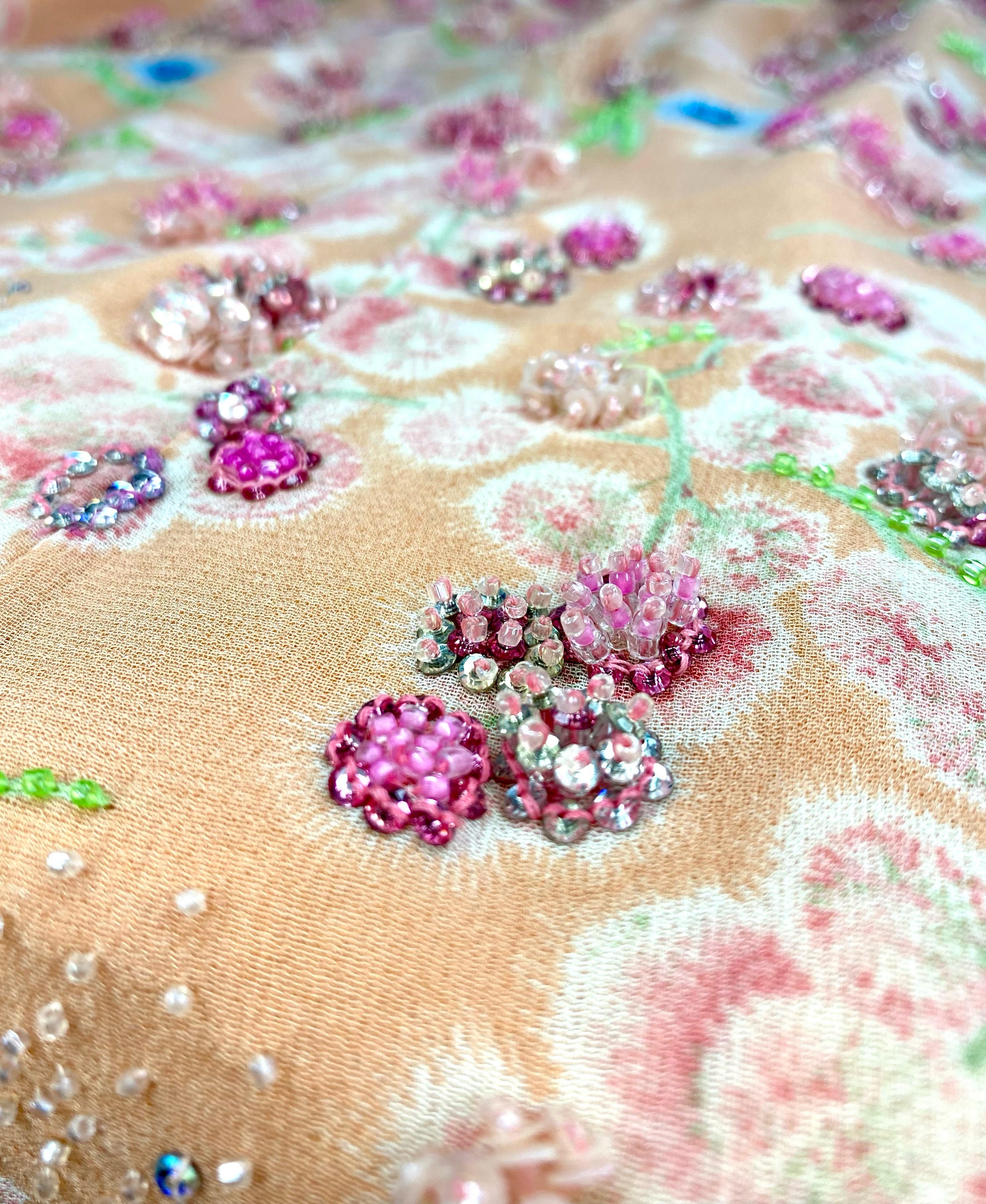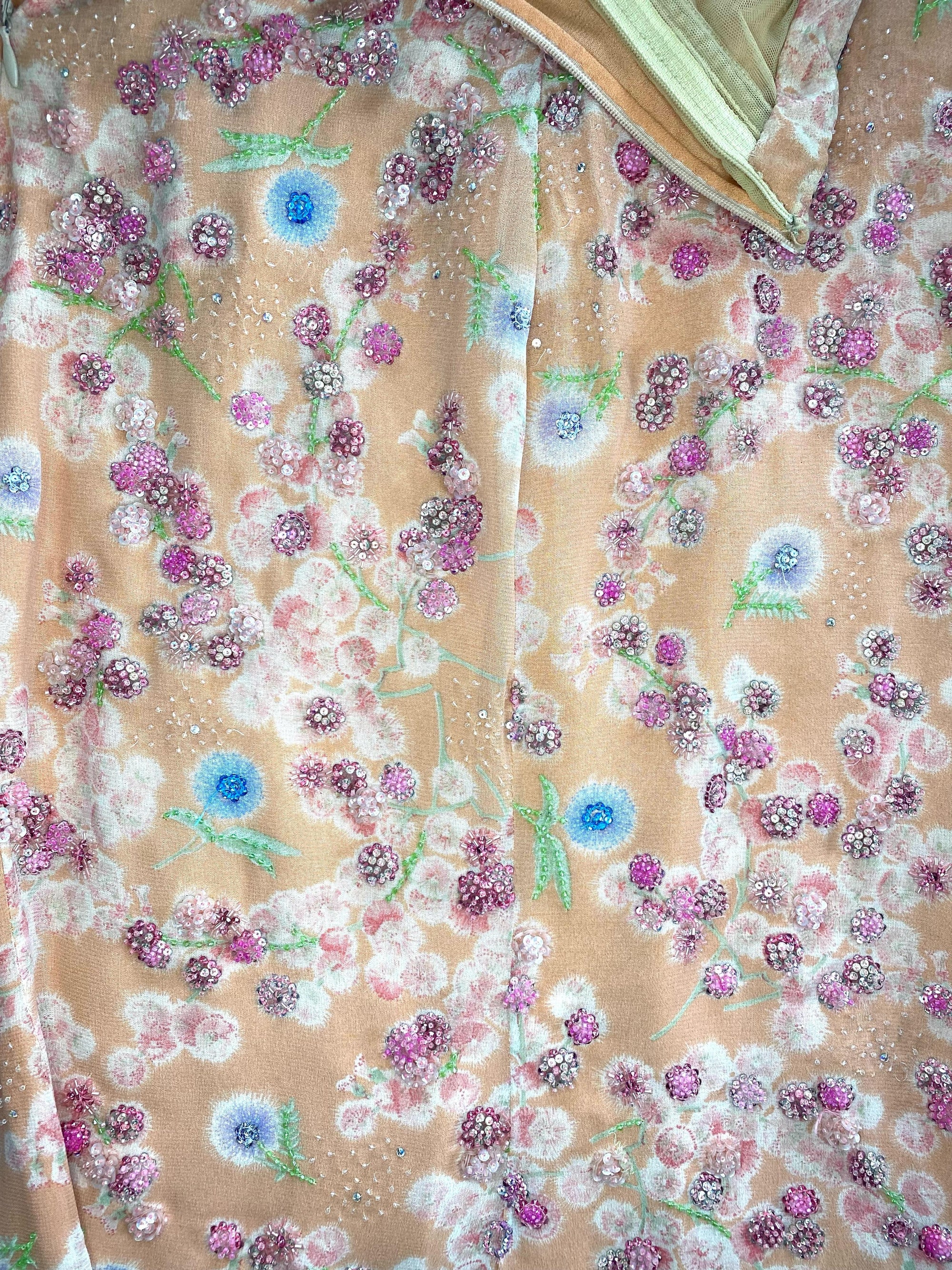 S/S 1997 Atelier Versace by Gianni Beaded Floral Dress Corset Removable Strap