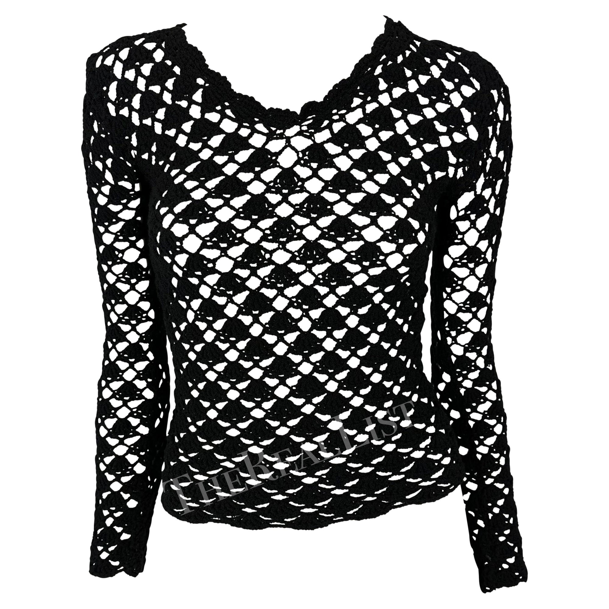 S/S 1997 Dolce & Gabbana Black Crochet Sheer Sweater Top
