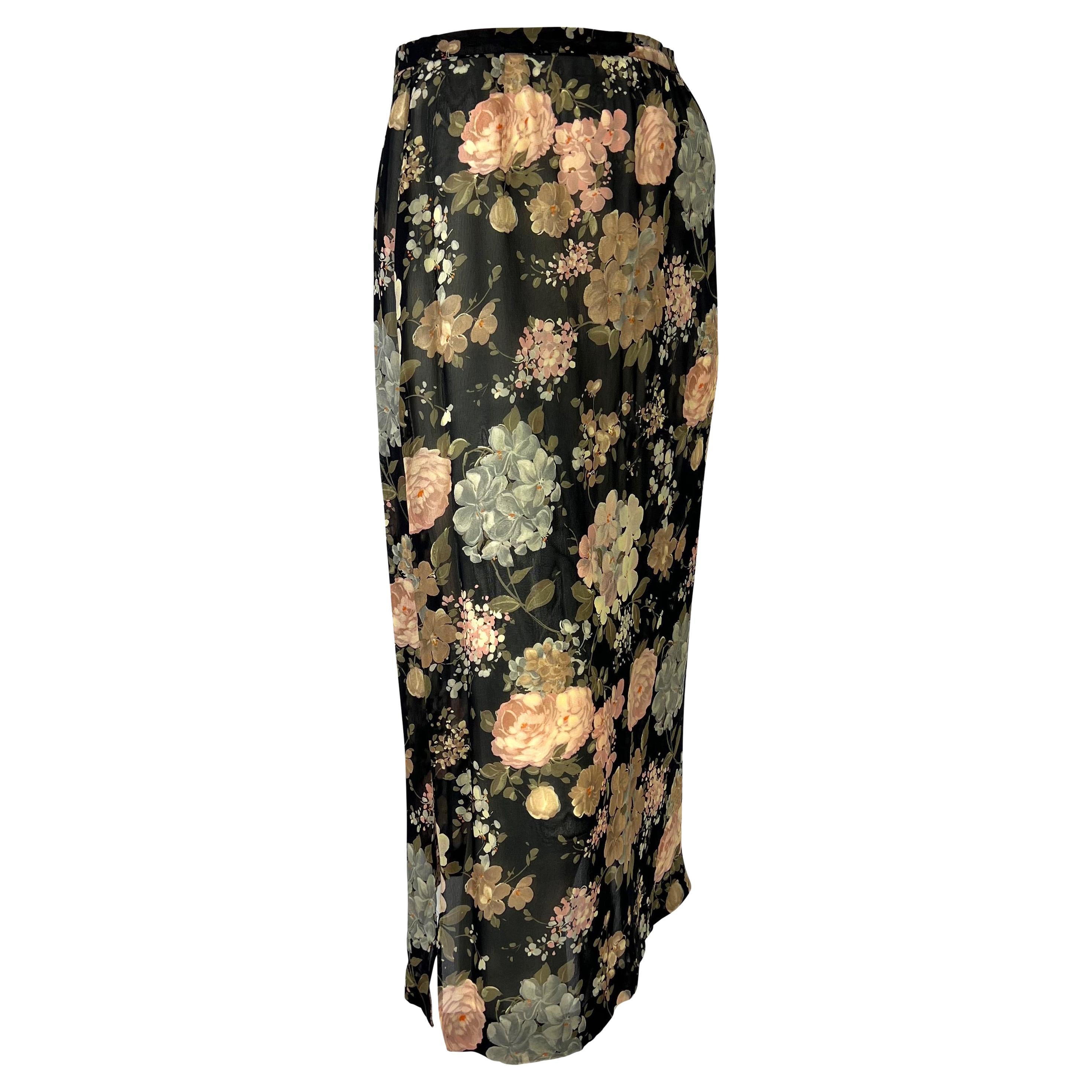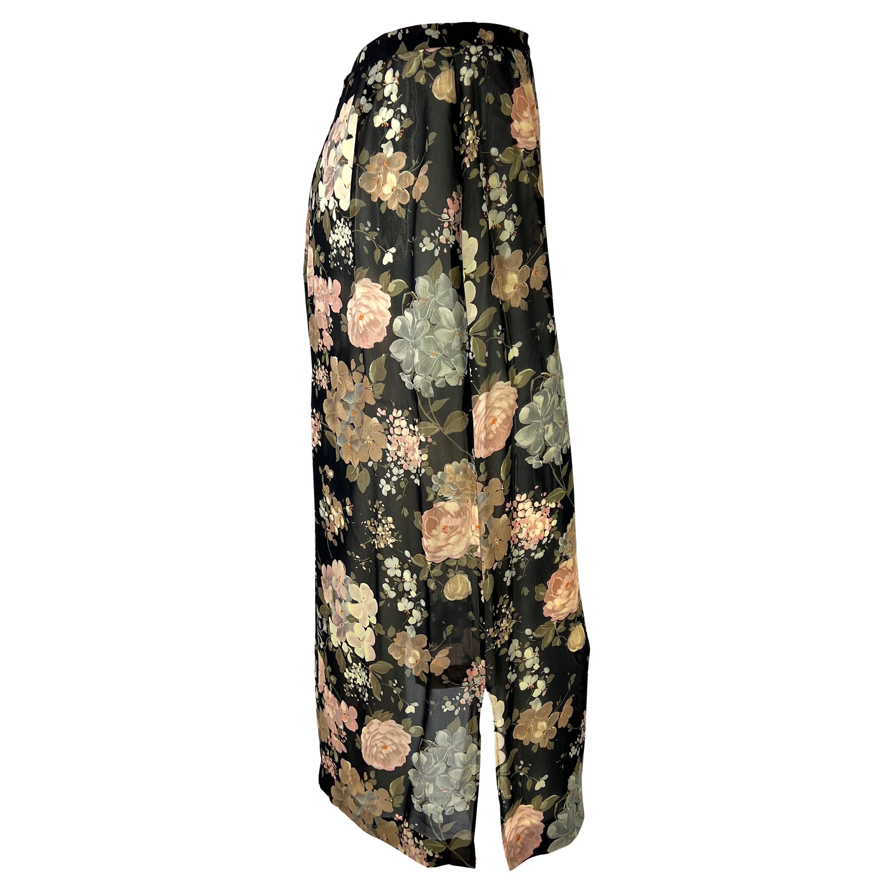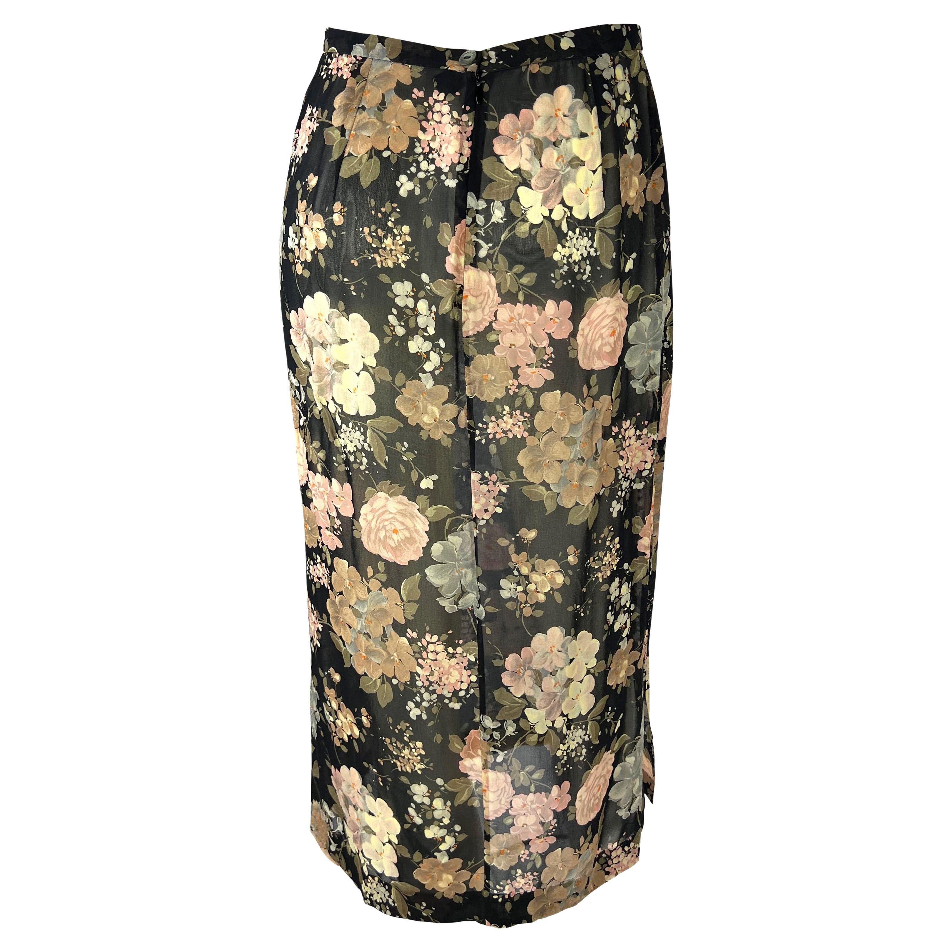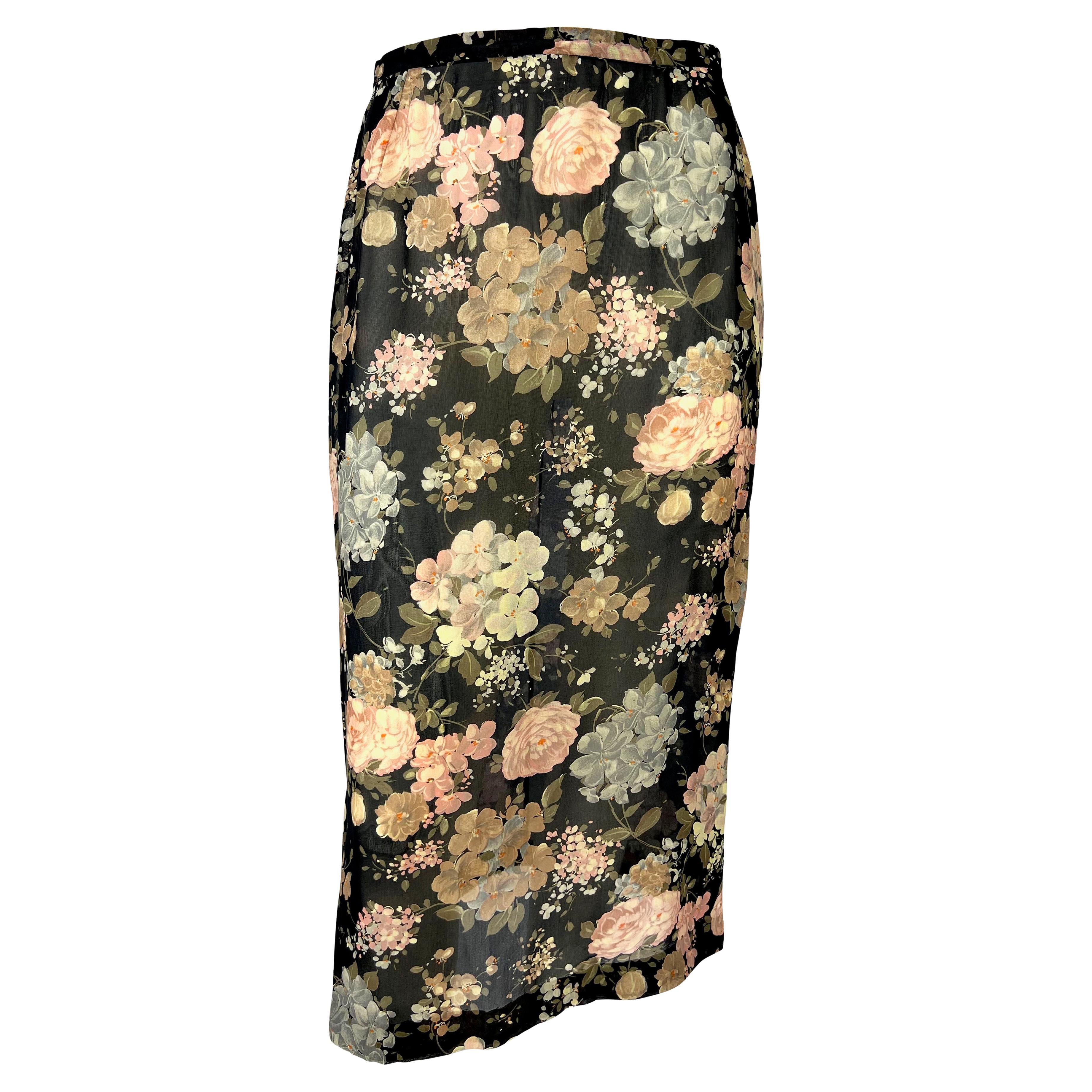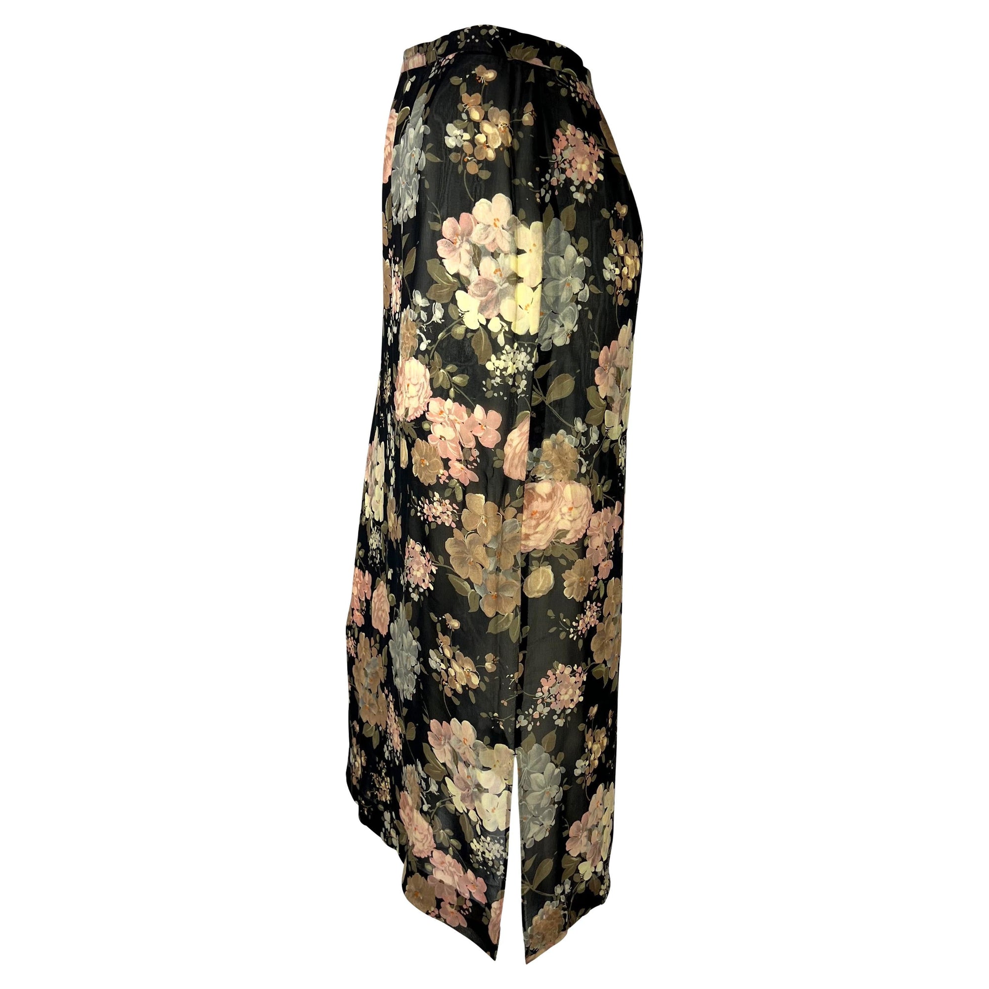 Presenting a sheer floral pencil skirt designed by Dolce & Gabbana for their Spring/Summer 1997 collection. Similar sheer florals were heavily used in the season's runway presentation. With two slits at either side of the hemline, this skirt is tapered for a tailored look. Check out our storefront for more 90s Dolce & Gabbana!