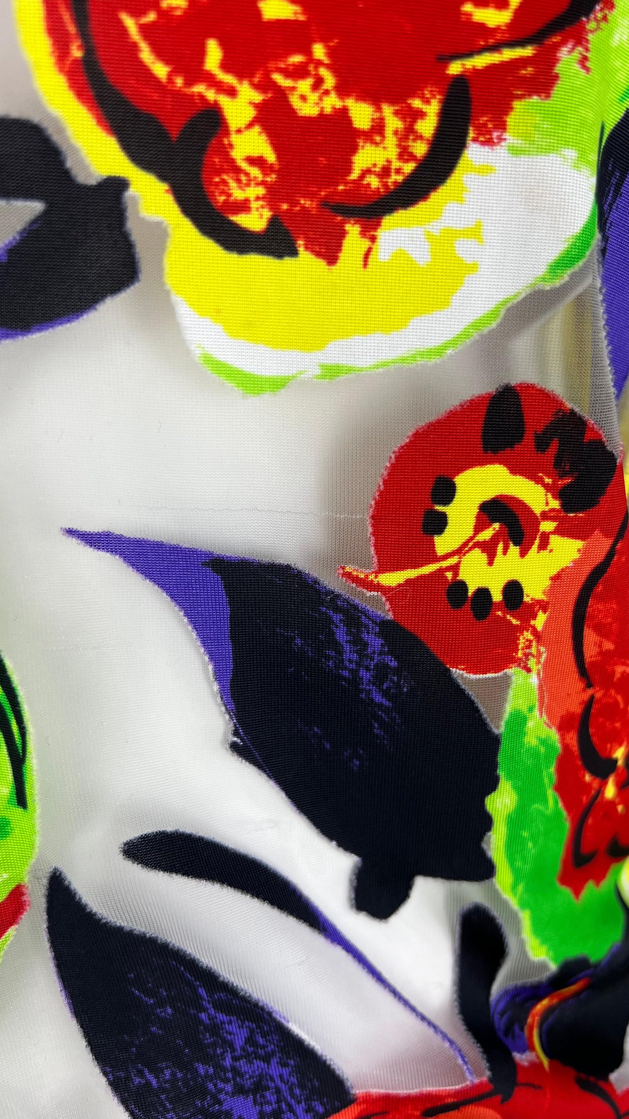 S/S 1997 Gianni Versace Runway Sheer Pop Art Floral Abstract Print Tulle Top