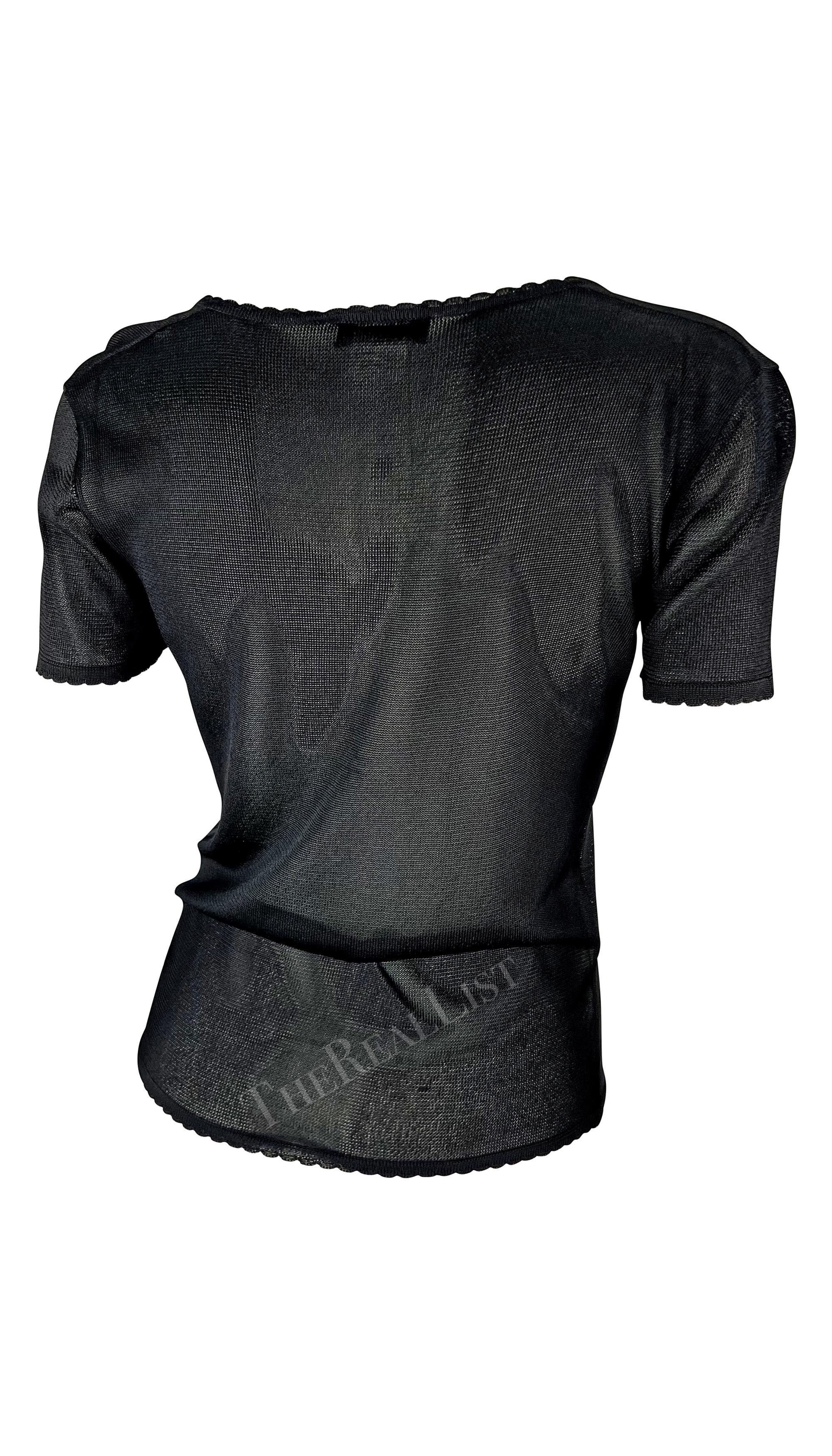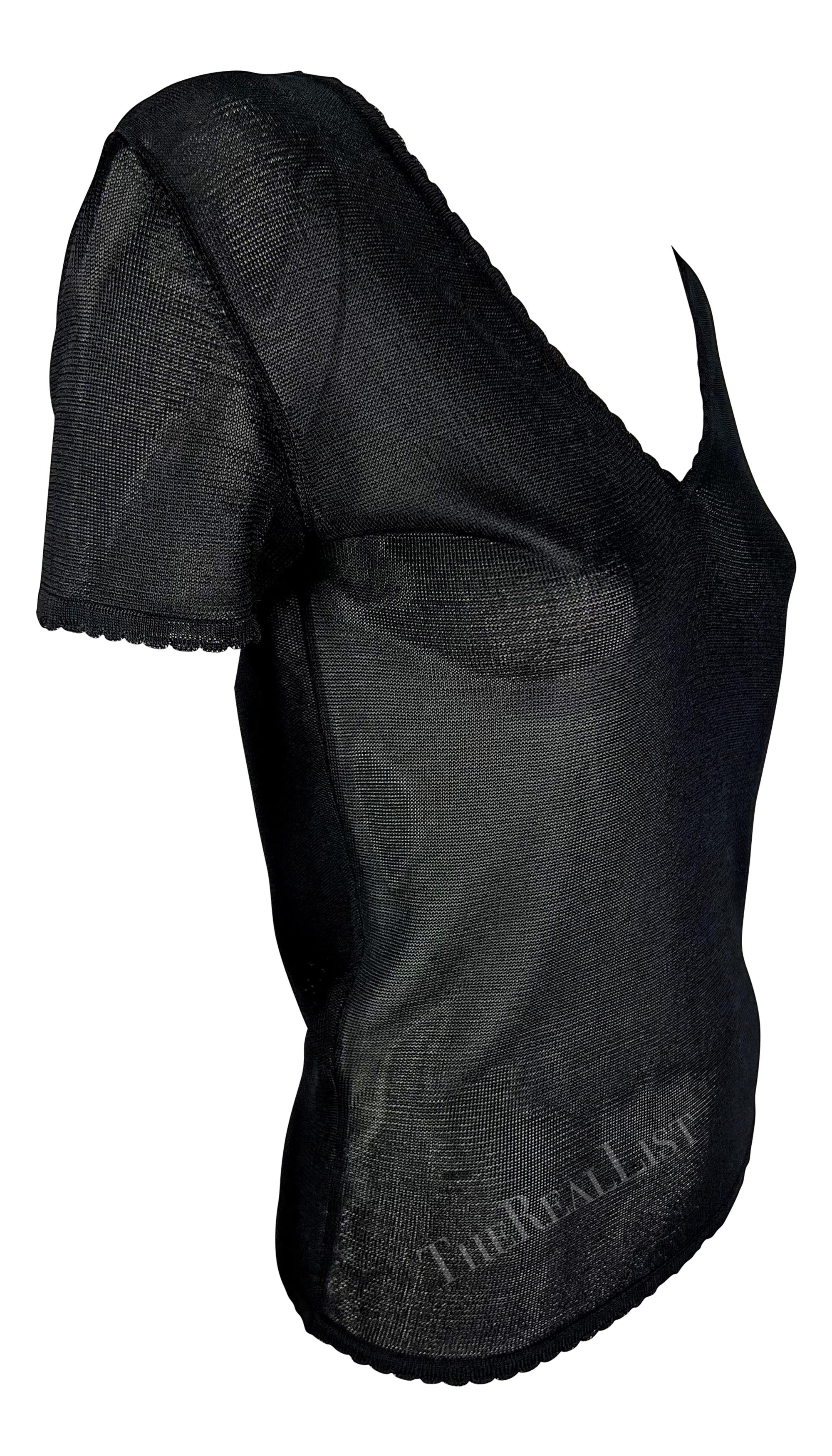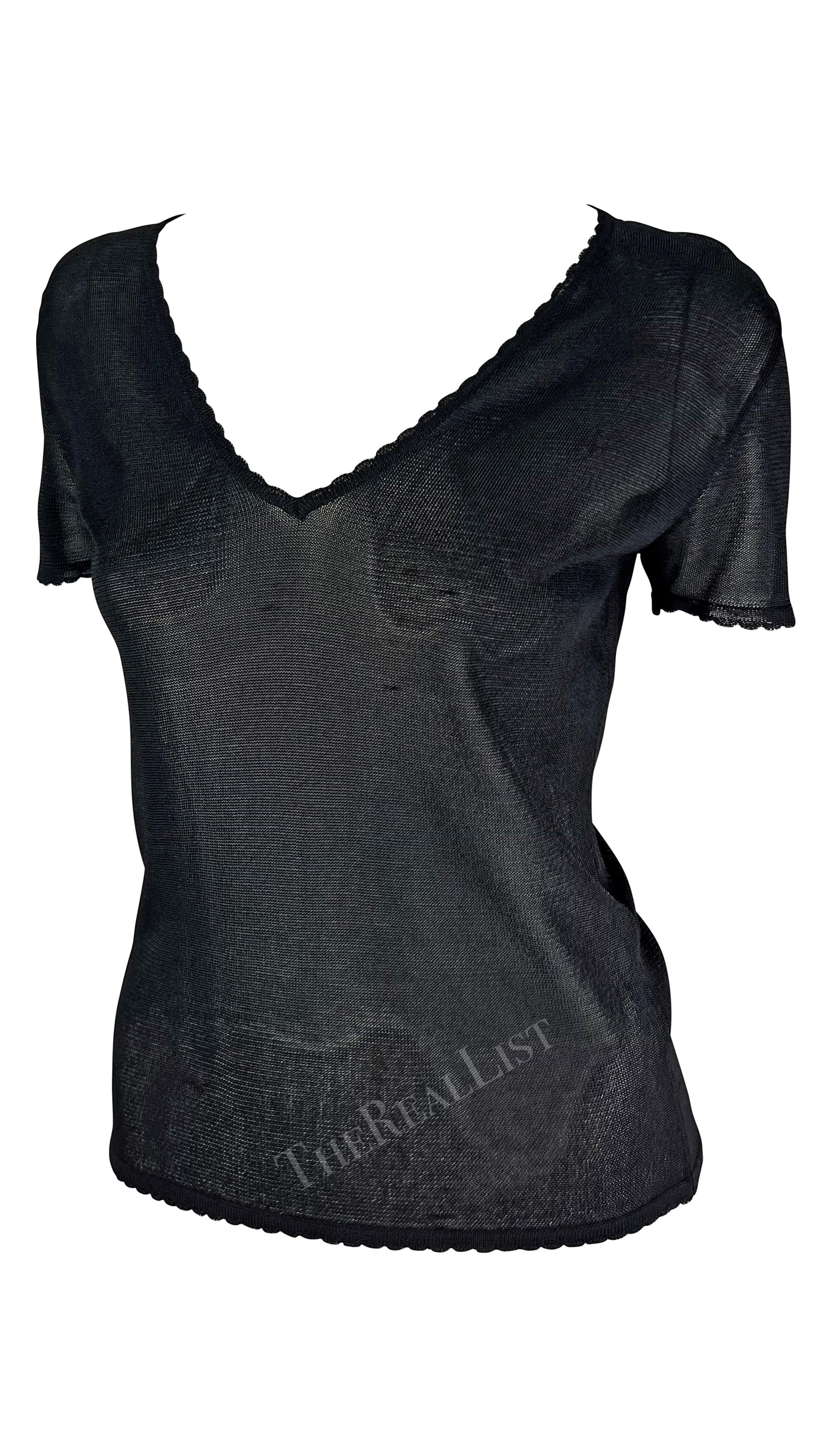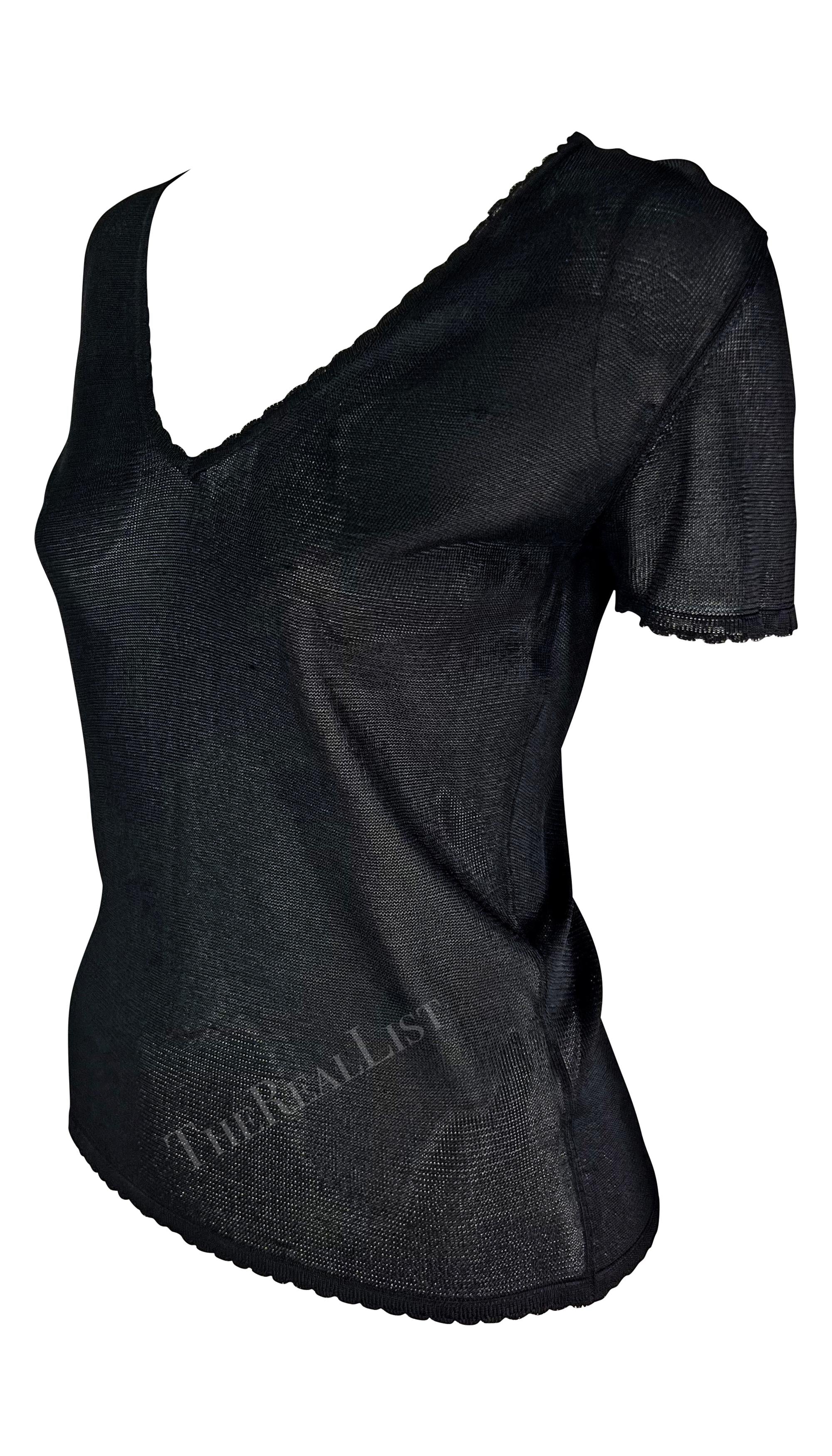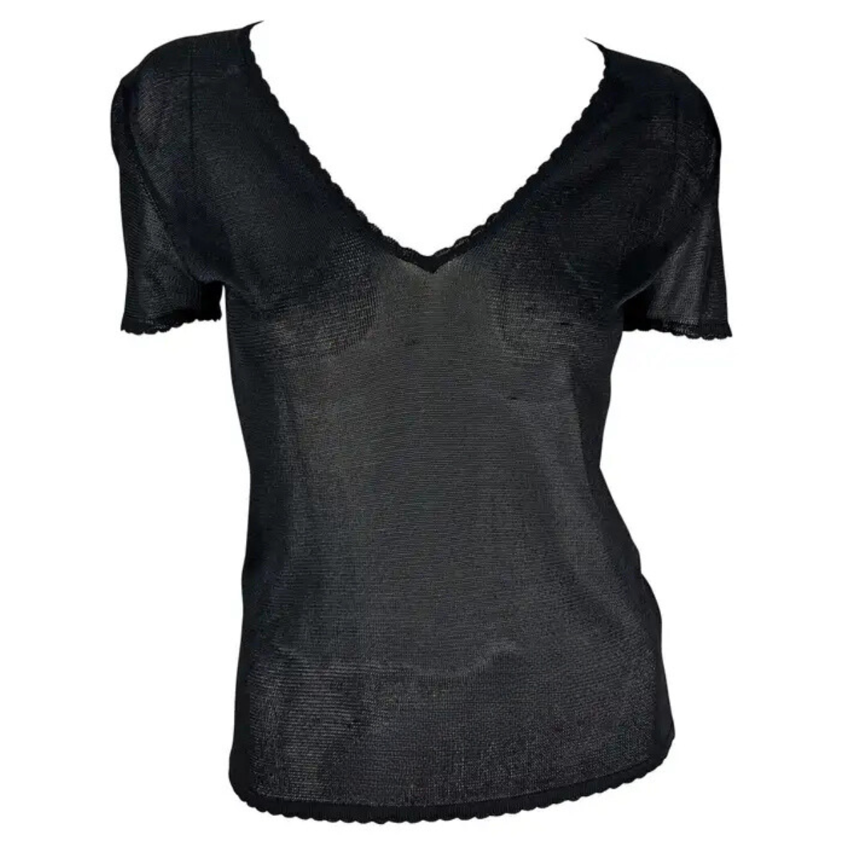 S/S 1997 Gianni Versace Scallop Knit Sheer Viscose V-Neck Black Sweater Top
