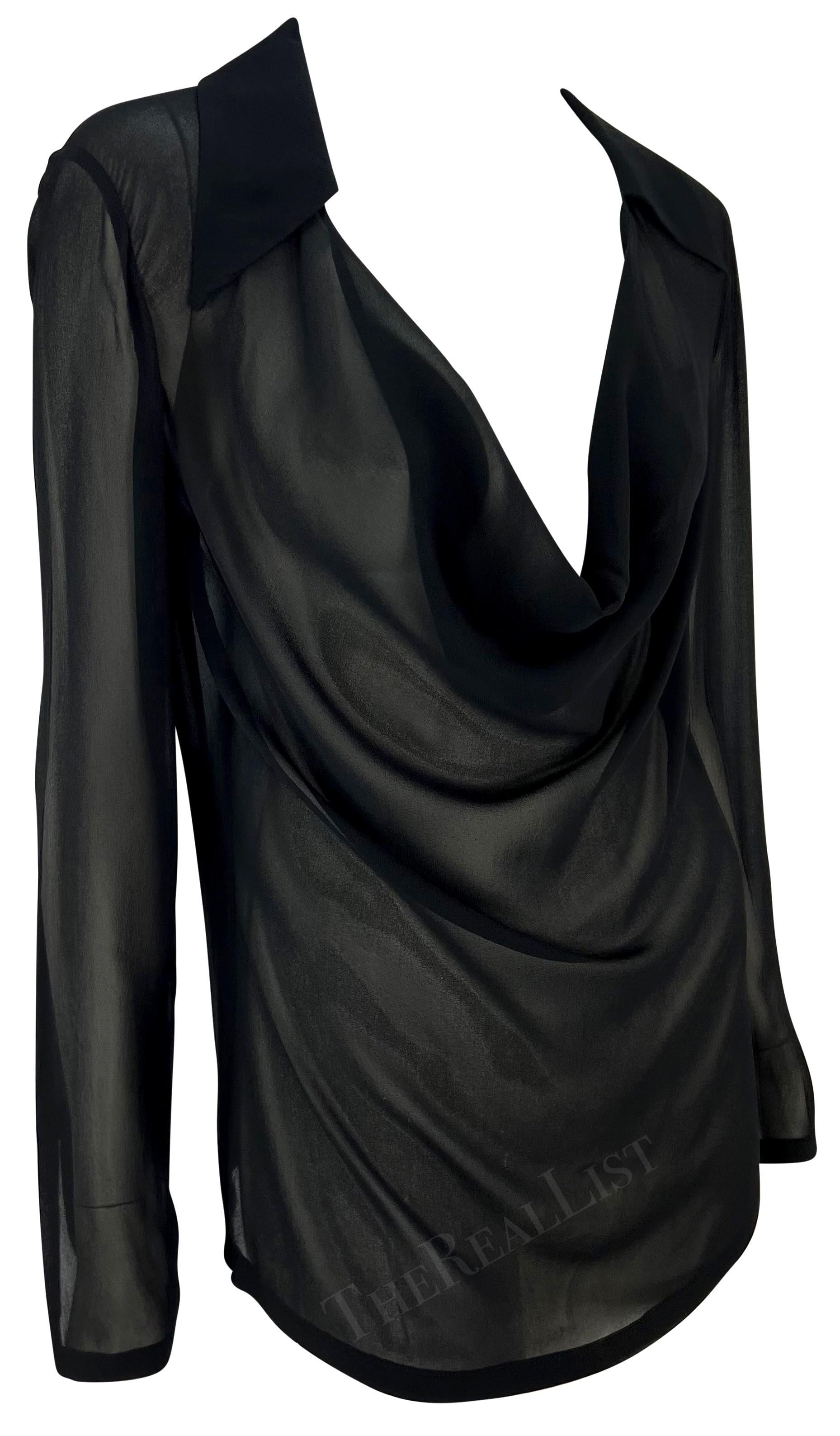 S/S 1997 Gucci by Tom Ford Black Sheer Cowl Neck Plunging Collar Blouse