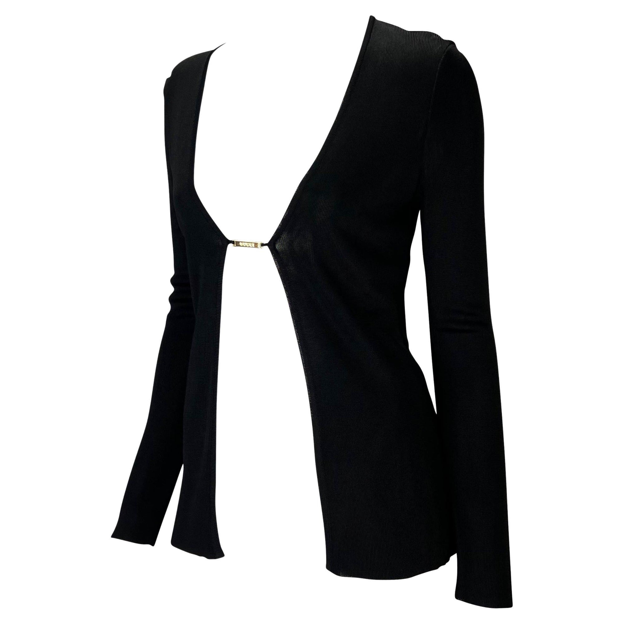 S/S 1997 Gucci by Tom Ford Black Stretch Viscose Gold Logo Cardigan