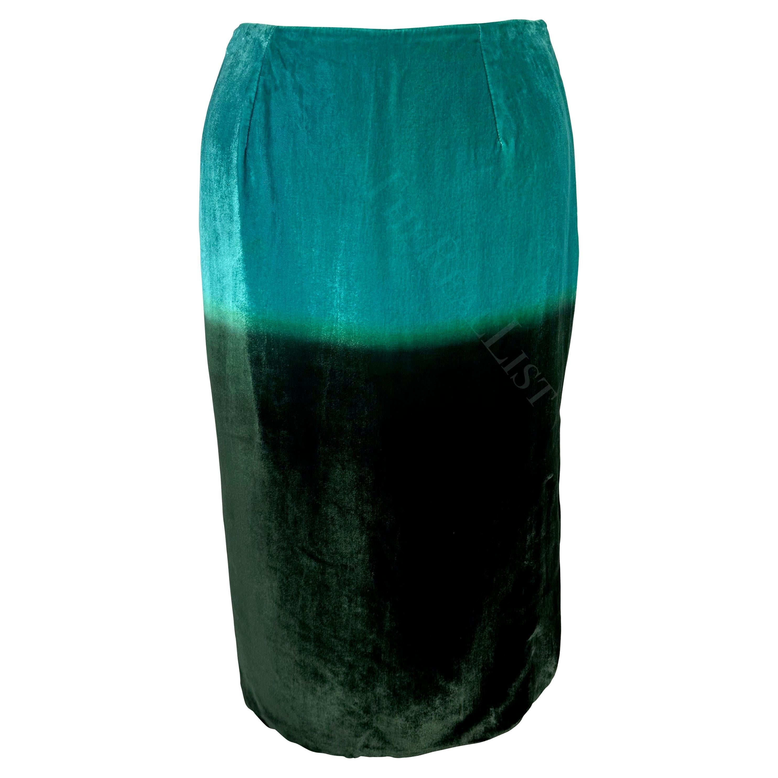 S/S 1997 Gucci by Tom Ford Blue Green Ombré Velvet Runway Skirt