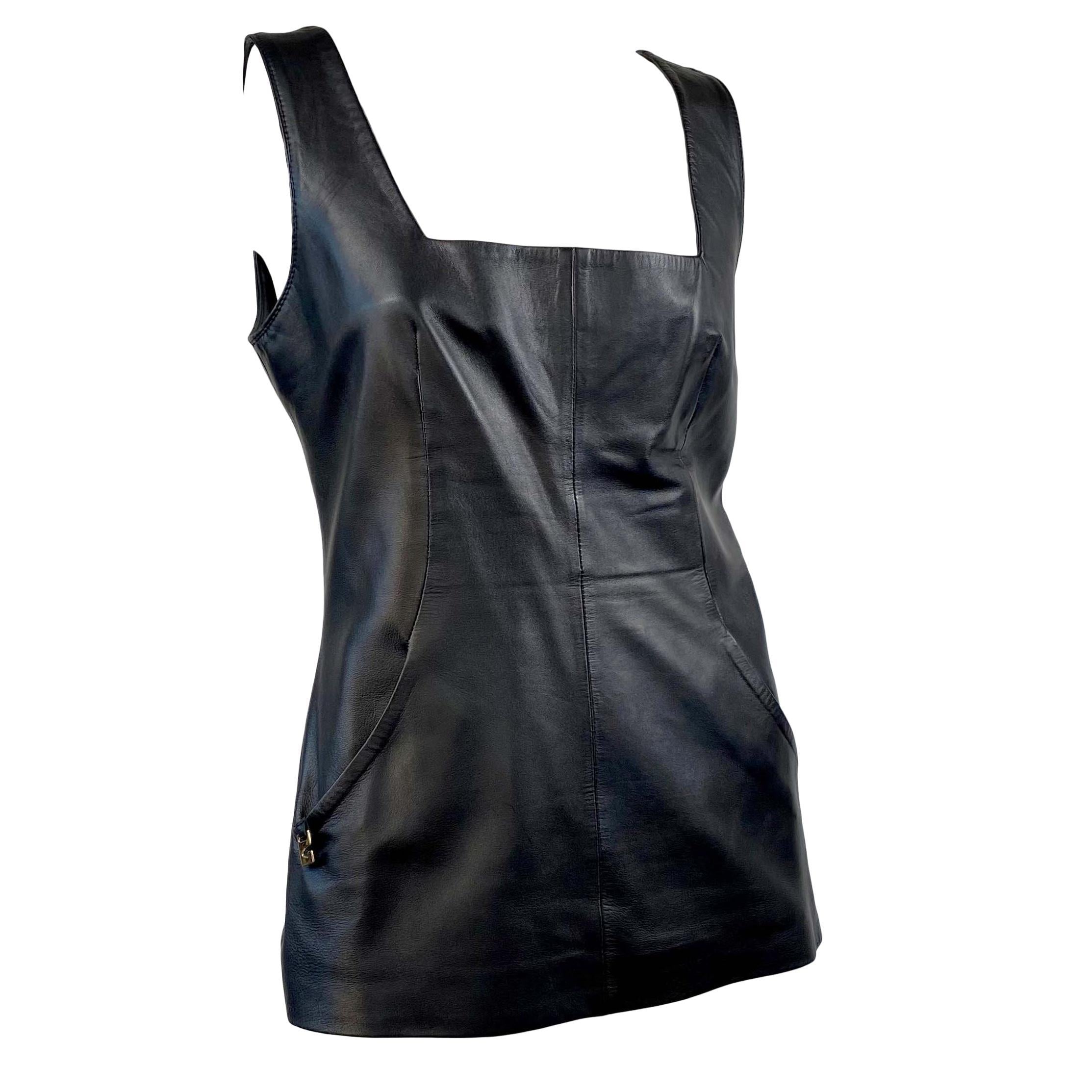 Presenting a rare leather tank top by Tom Ford for Gucci. This piece and features the classic Tom Ford 'G' medallion that was heavily featured in the S/S 1997 collection as well as two pockets at the waist. The leather was expertly cut to give a slightly tapered fit.