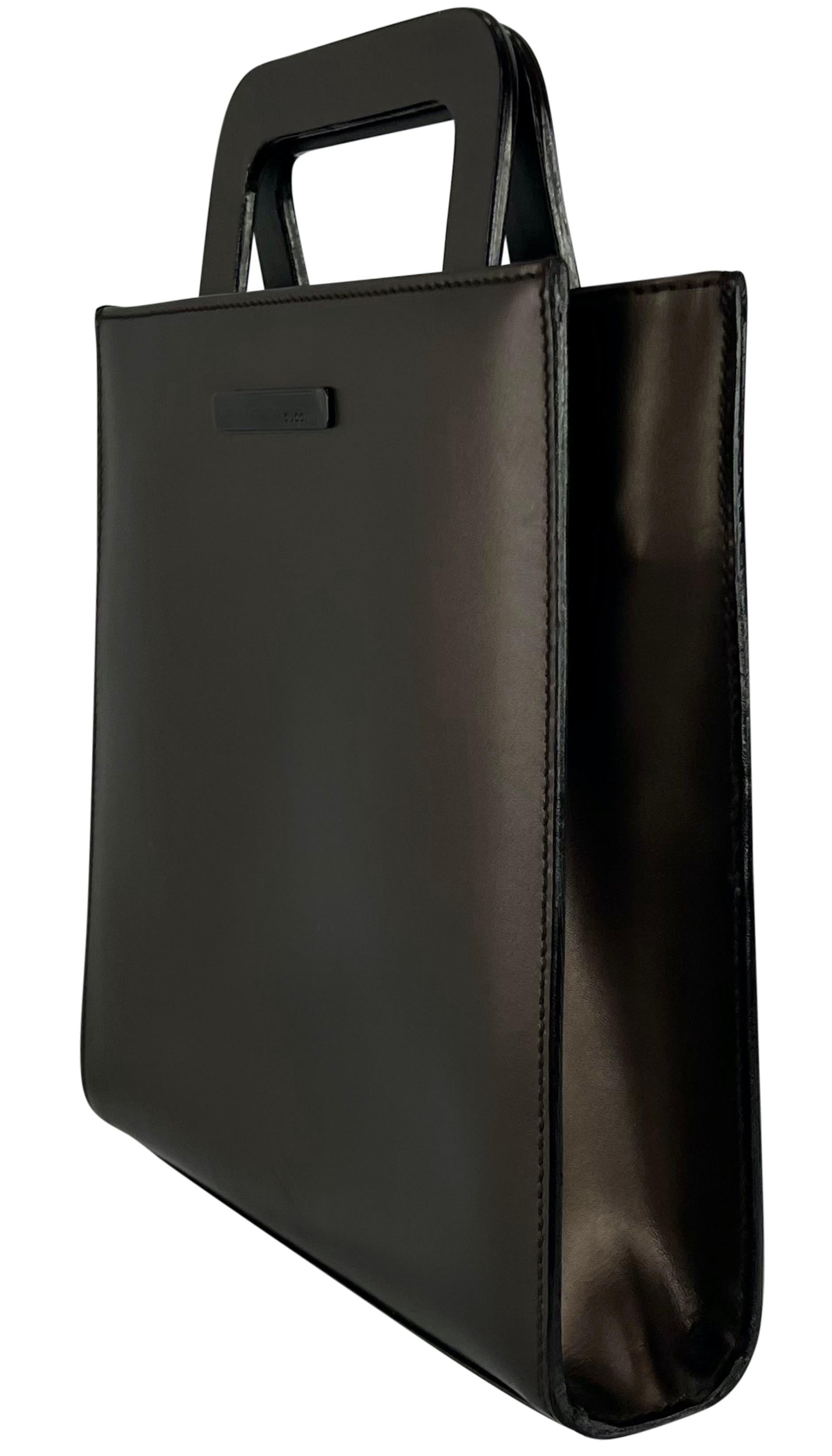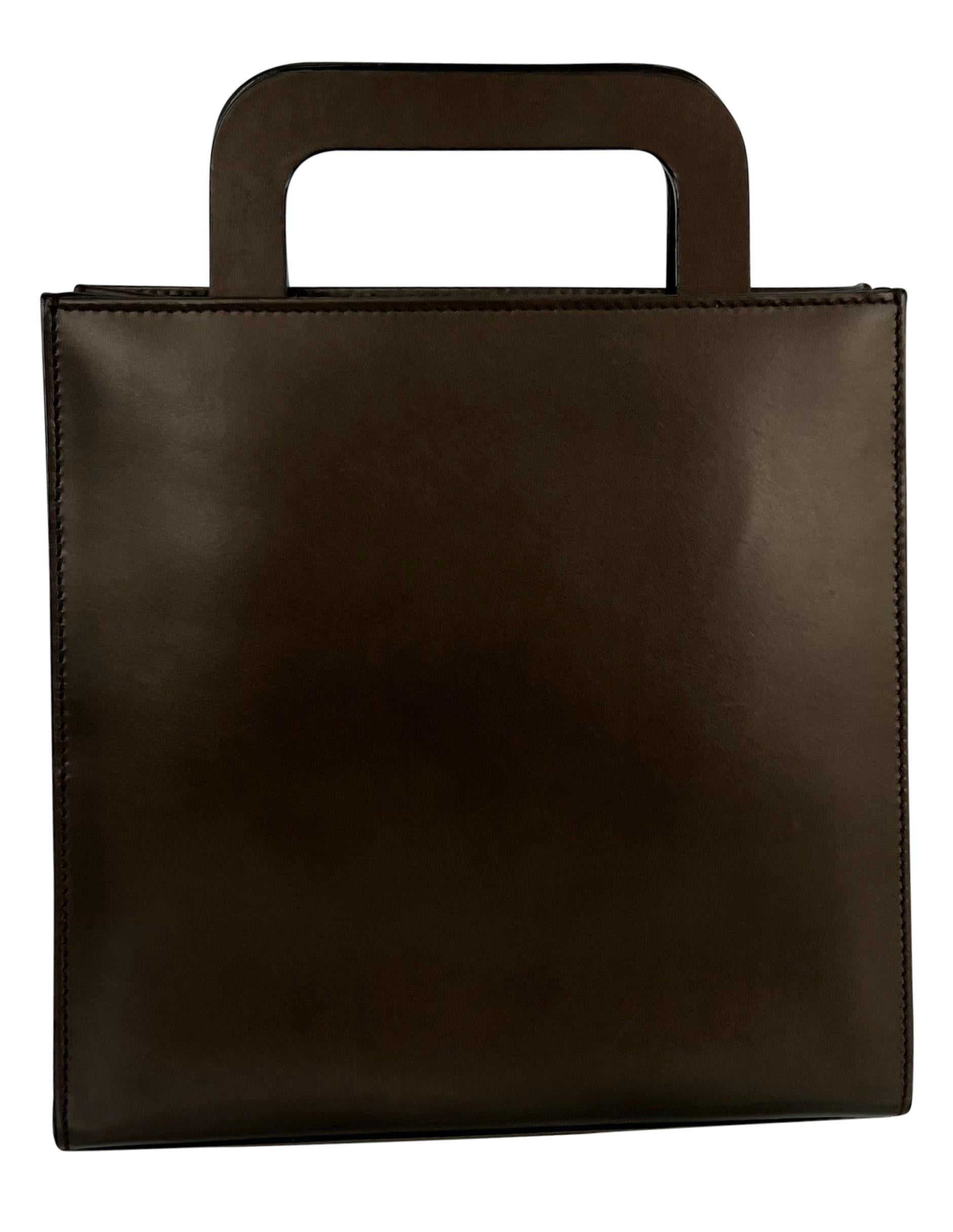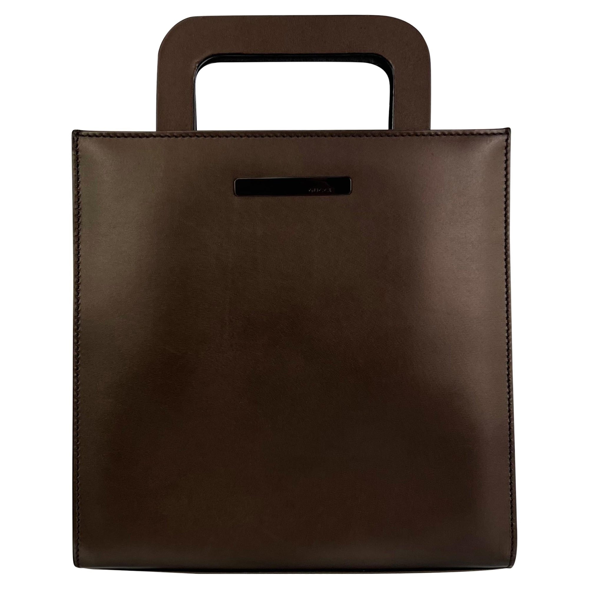 This metallic leather crossbody clutch from Gucci by Tom Ford's Spring/Summer 1997 collection is a versatile piece. It features a sleek design with a convertible function-use it with the structured top handle or as a crossbody using the detachable strap. The handle can also be tucked in for a more streamlined look.