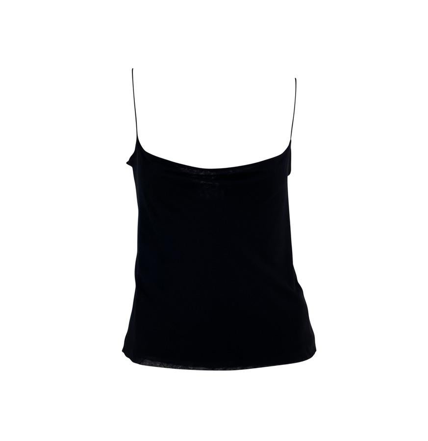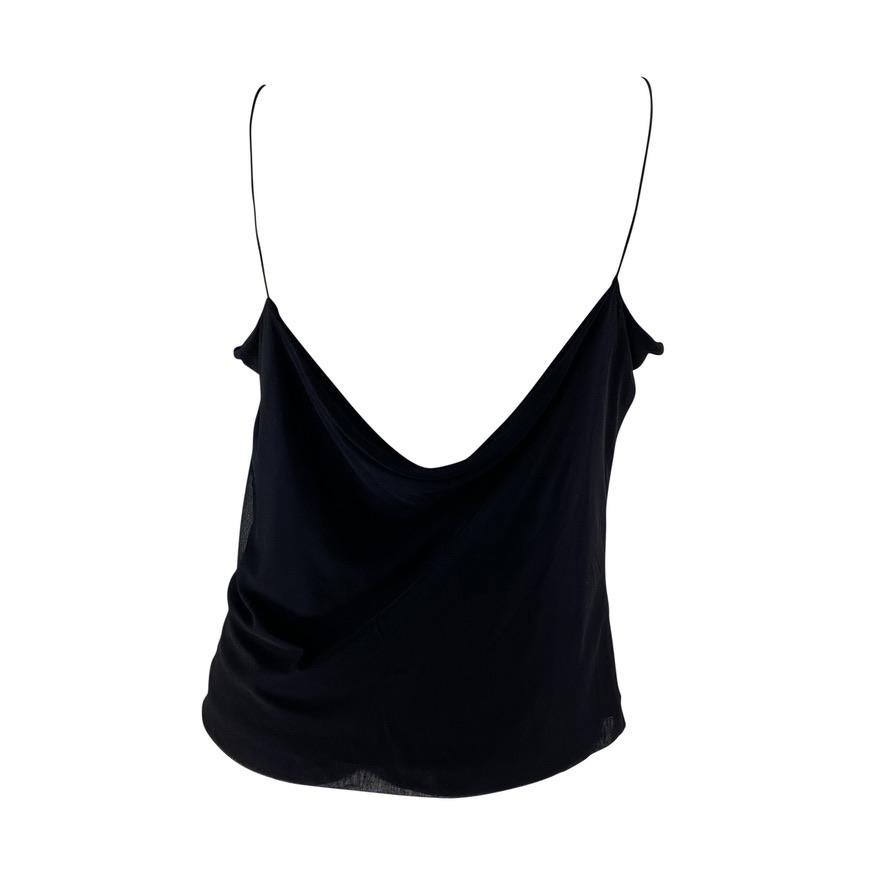 Presenting a sensual Gucci tank top designed by Tom Ford. This uniquely shaped tank top features a cowl neck and spaghetti straps with a similar cowl draping to expose the back. This shirt is not your average tank top; it was designed for the Spring/Summer 1997 collection and is the perfect chic elevation for the standard tank.