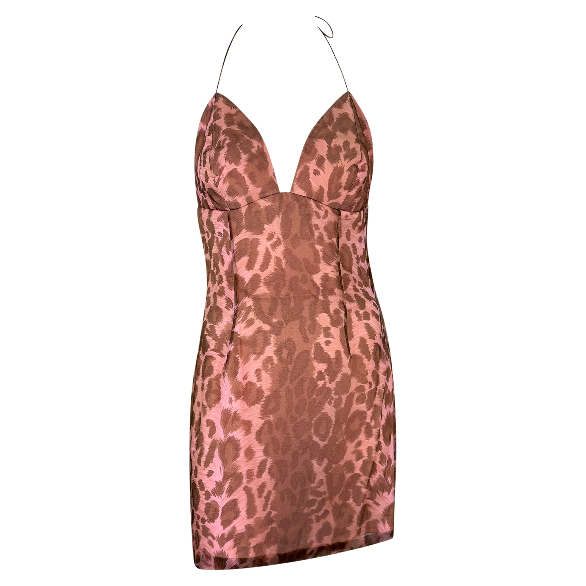 S/S 1997 Jacques Fath Runway Pink Leopard Print Halter Mini Dress