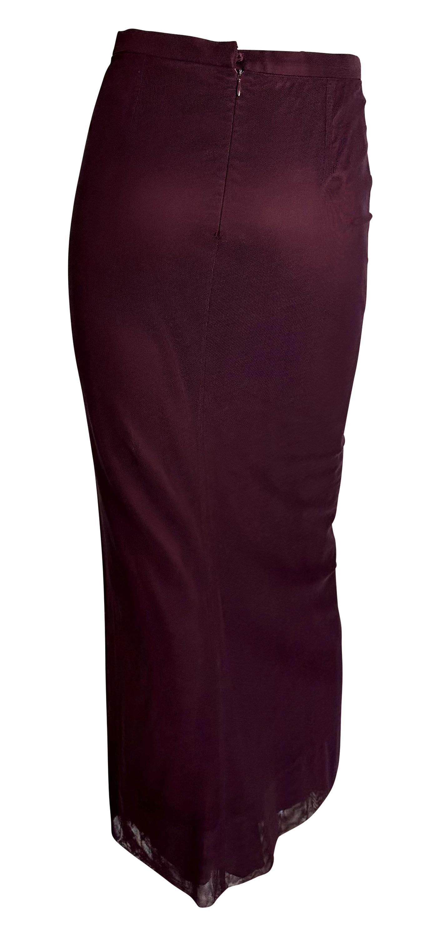S/S 1998 Dolce & Gabbana Burgundy Bodycon Sheer Mesh Overlay Maxi Skirt