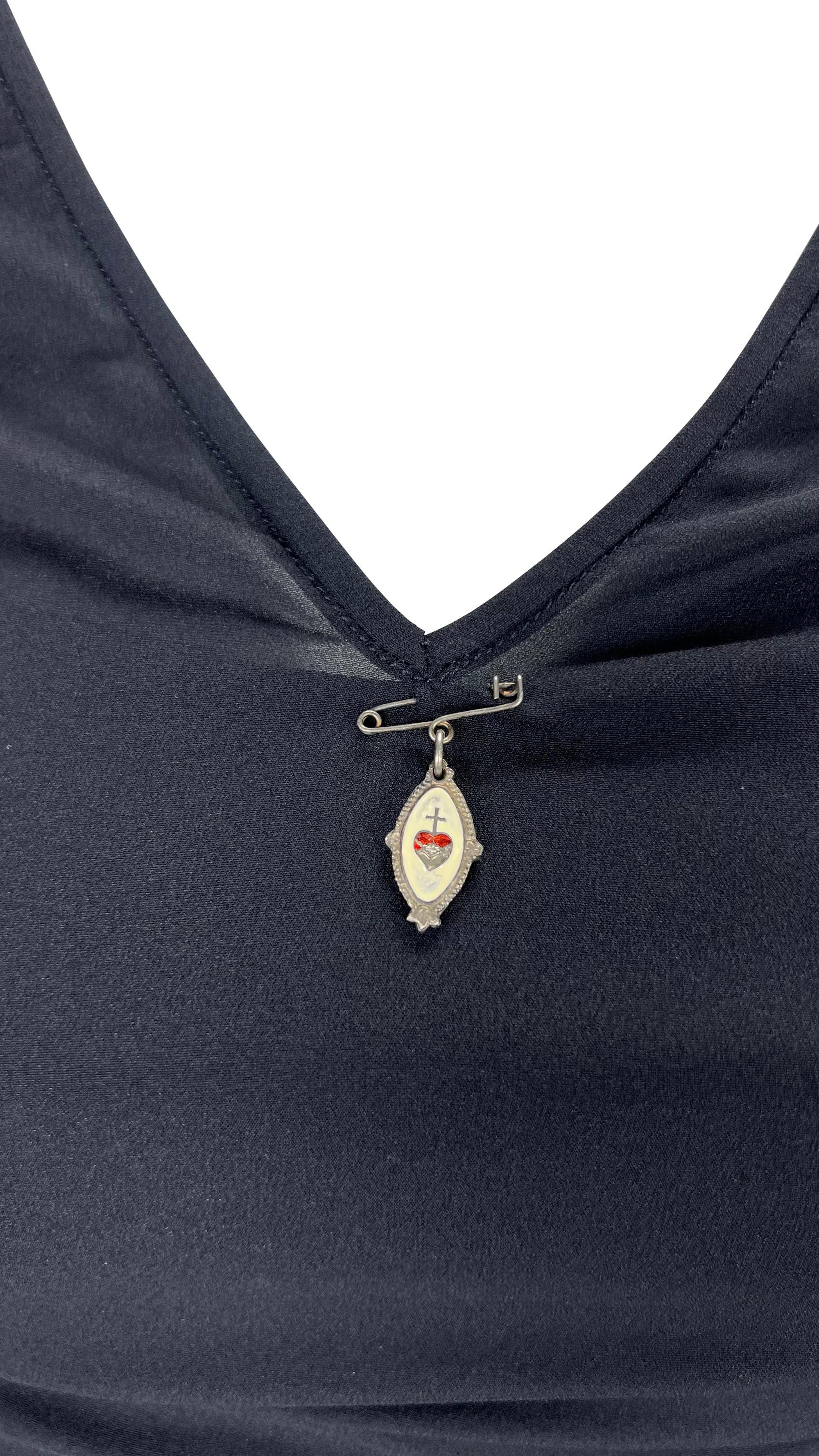 S/S 1998 Dolce & Gabbana Sheer Black Enamel Heart Safety-Pin Cami-Overlay Blouse