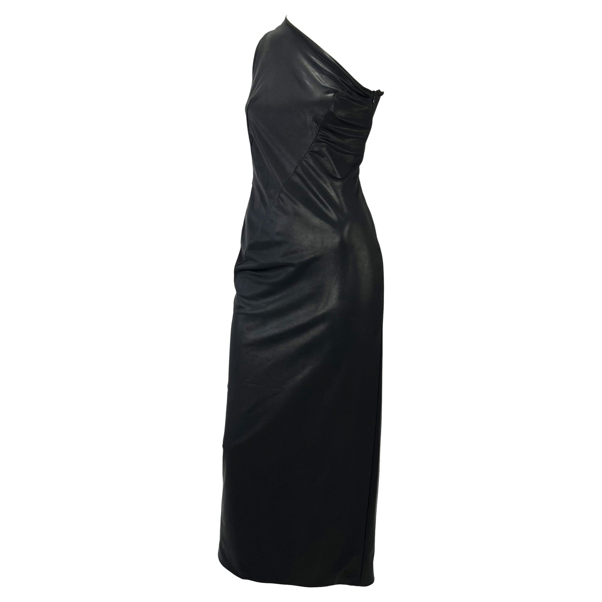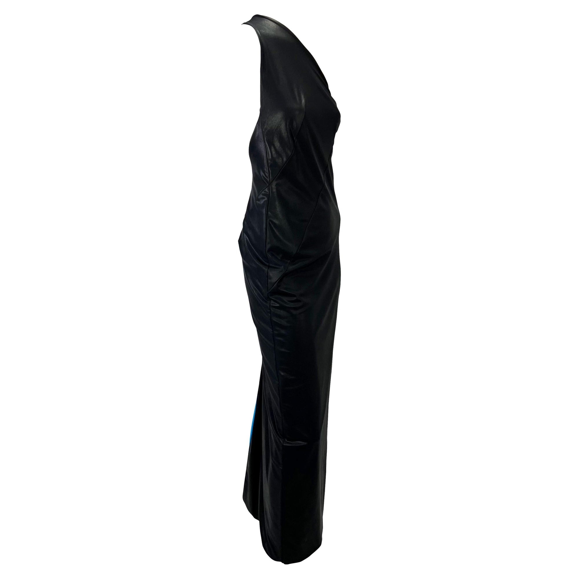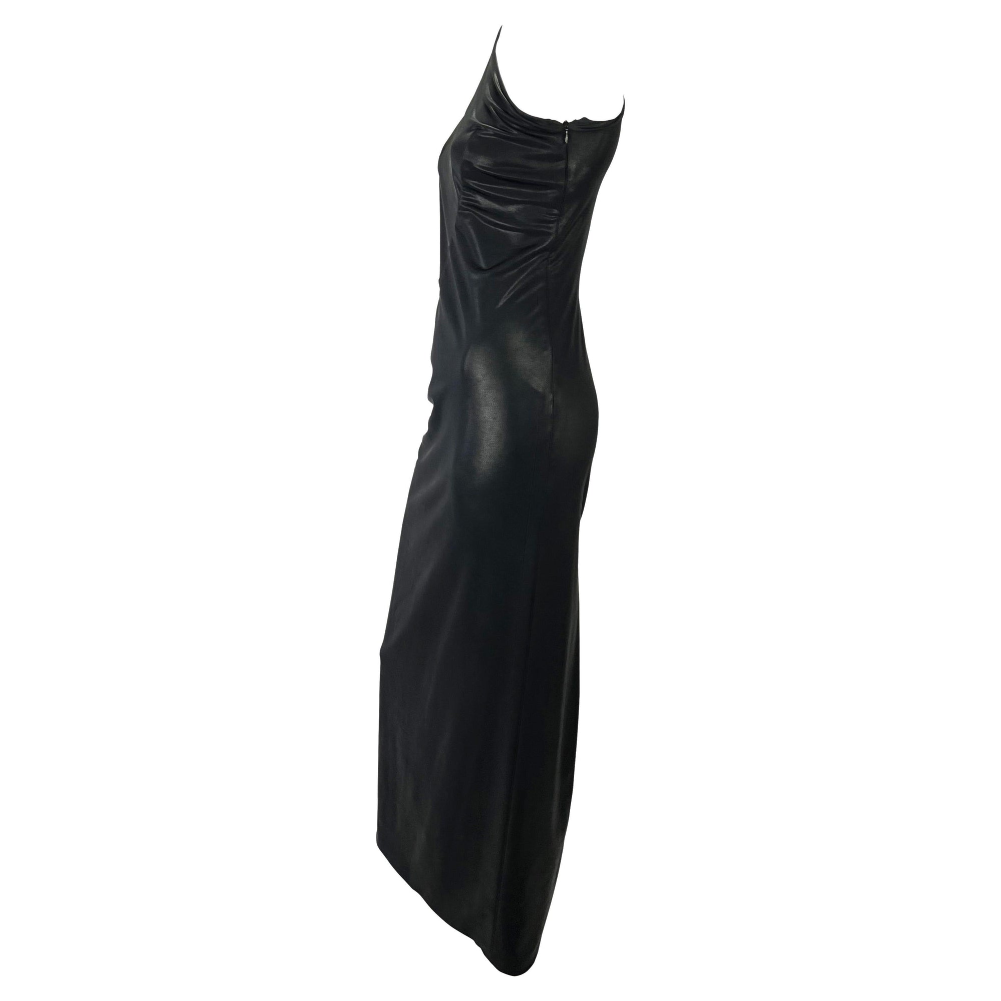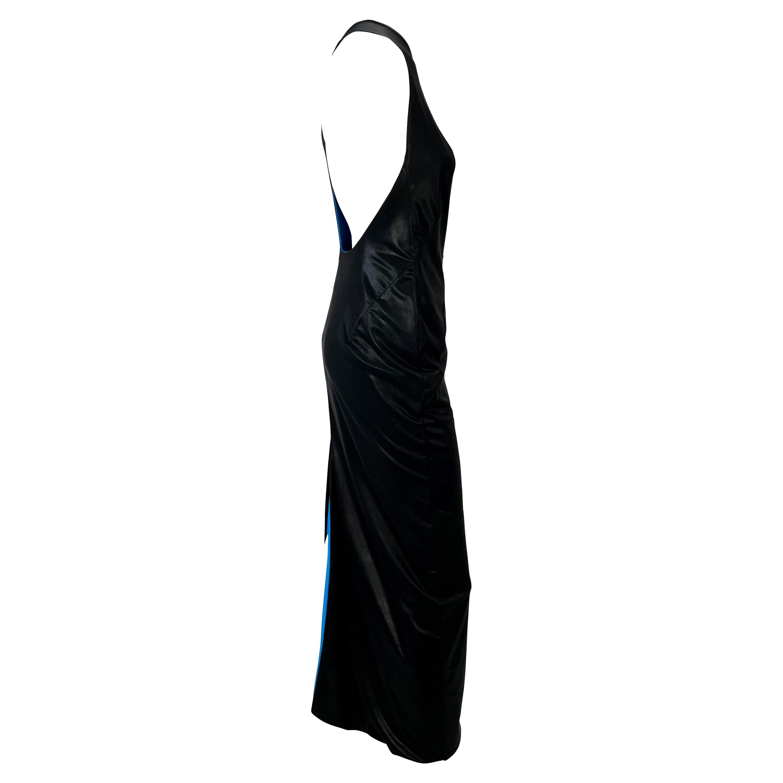 S/S 1998 Gianni Versace by Donatella Wet Look Black Electric Blue Stretch Gown