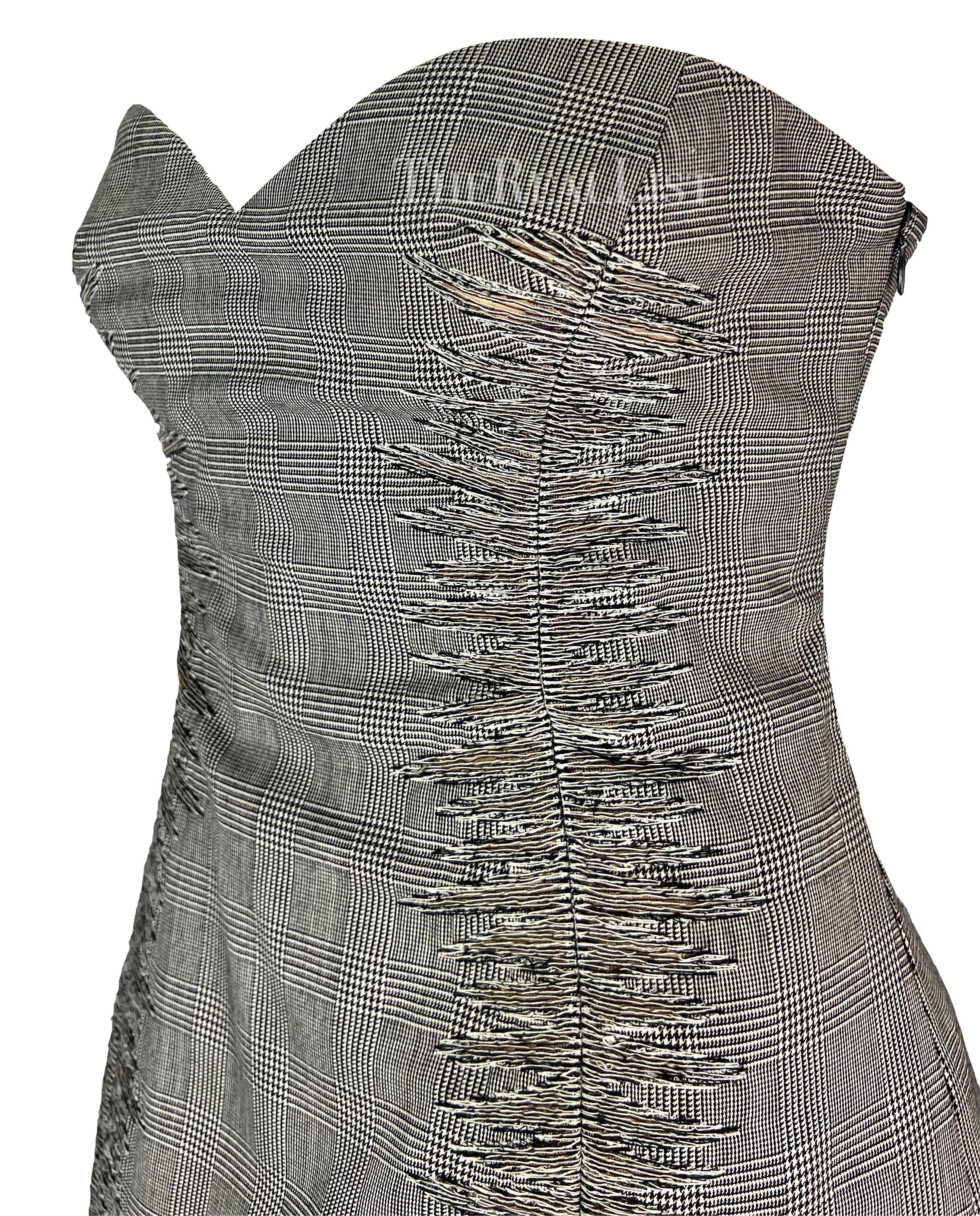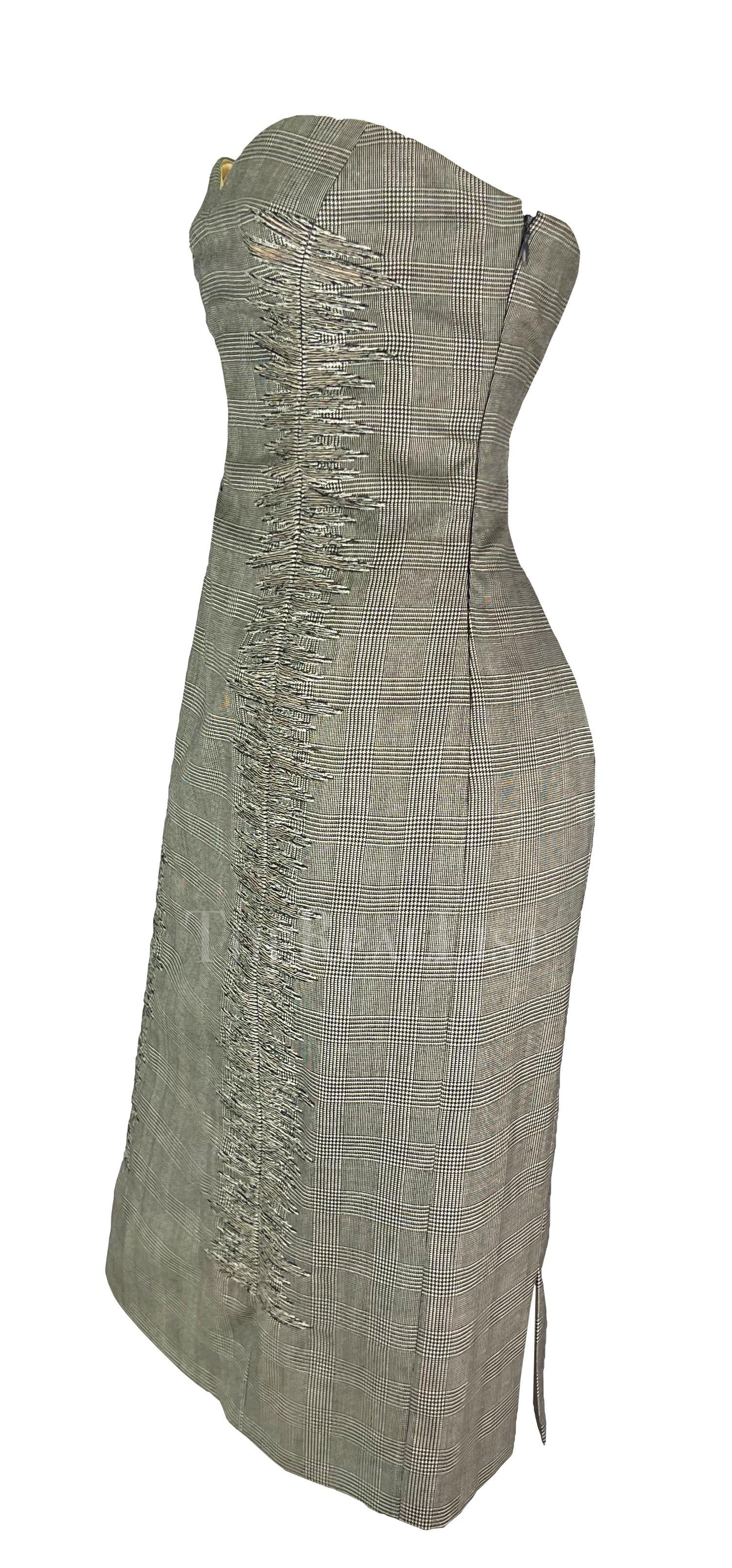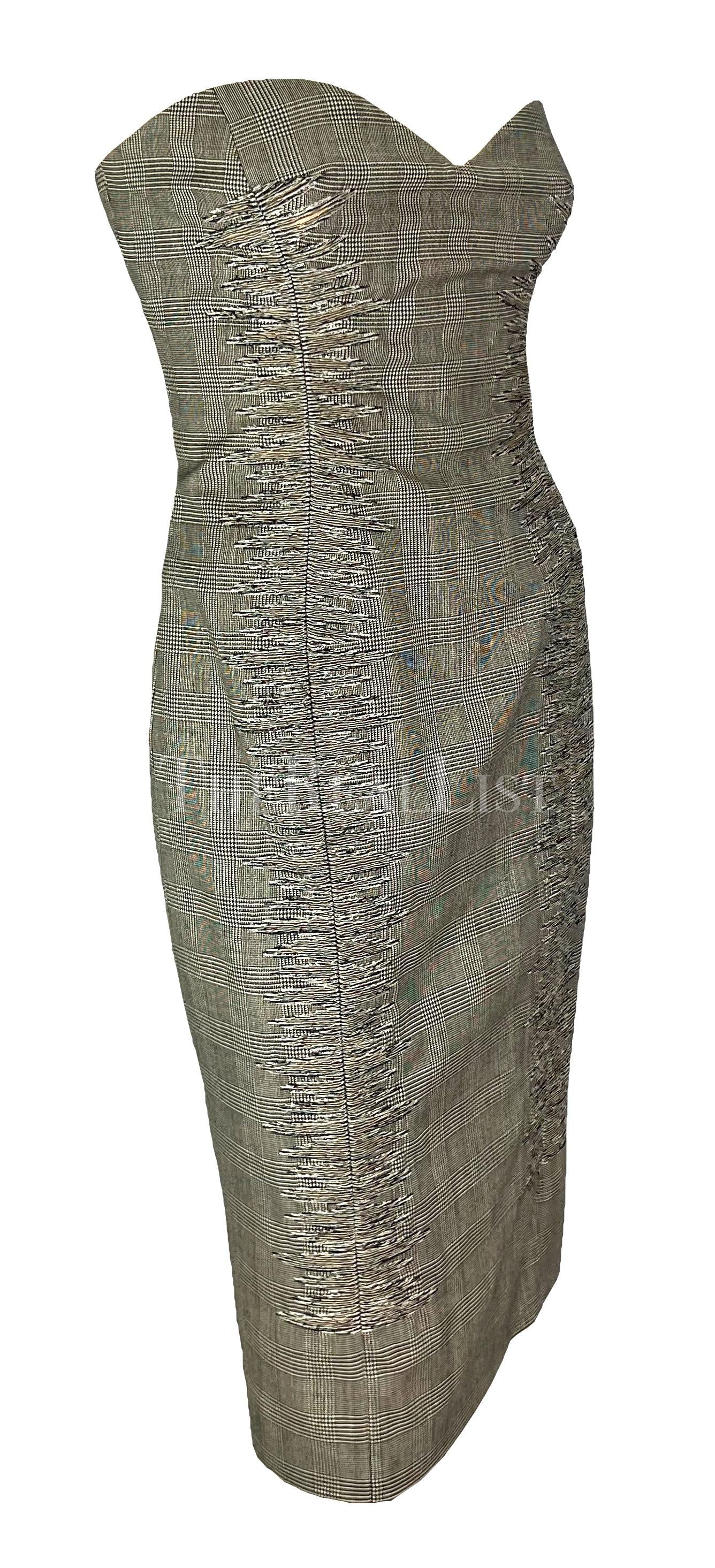 S/S 1998 Gianni Versace Runway Ad Grey Houndstooth Strapless Corset Mini Dress