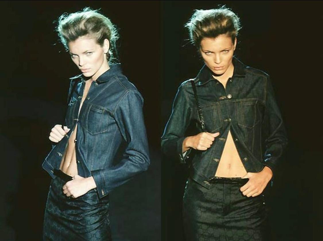 S/S 1998 Gucci by Tom Ford GG Monogram Black Cotton Silk Shoulder Pad Button Up Shirt